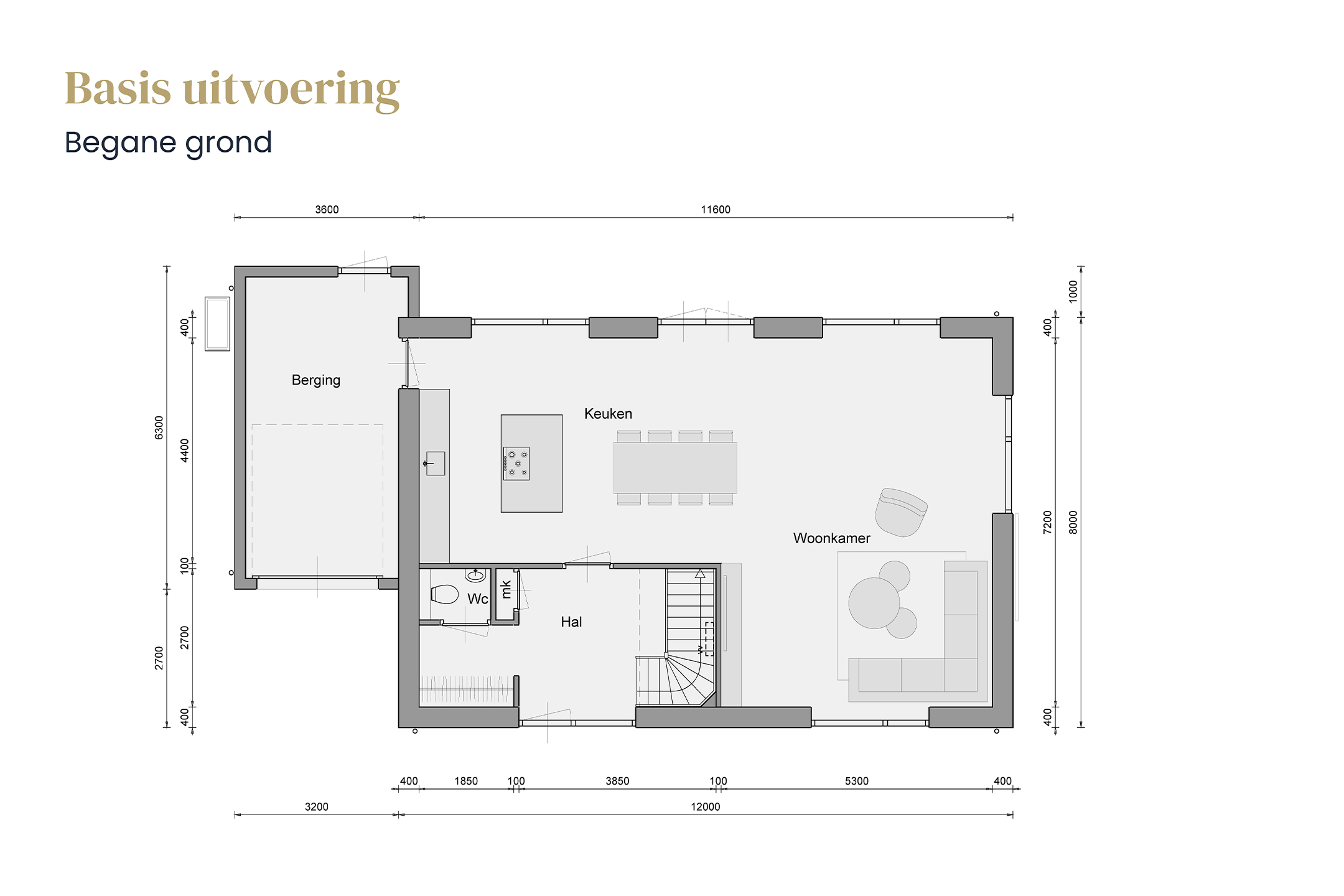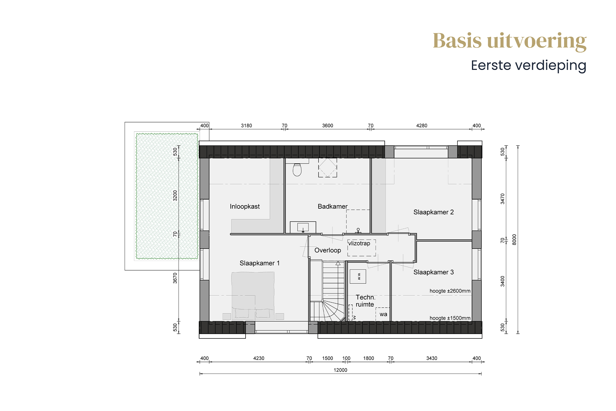 Voor wie op de begane grond wil slapen, er is de mogelijkheid om de begane grond uit te breiden met een slaap- en badkamer.