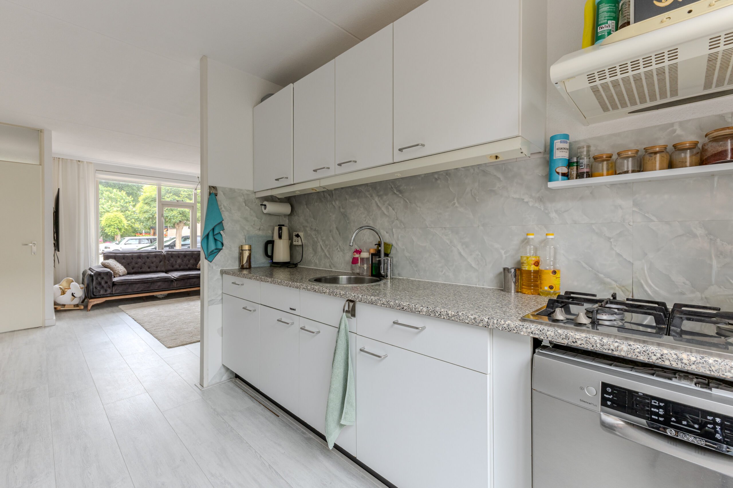 Bij binnenkomst kom je direct in de ruime woonkamer, waar je moeiteloos een grote zithoek én een eettafel kwijt kunt. Dankzij de open indeling staat de woonkamer in directe verbinding met de keuken, waardoor je altijd contact houdt met je gezin of gasten. De keuken ligt aan de achterzijde en kijkt uit op de tuin – dit zorgt niet alleen voor een rustig uitzicht, maar ook voor veel daglicht in de ruimte.