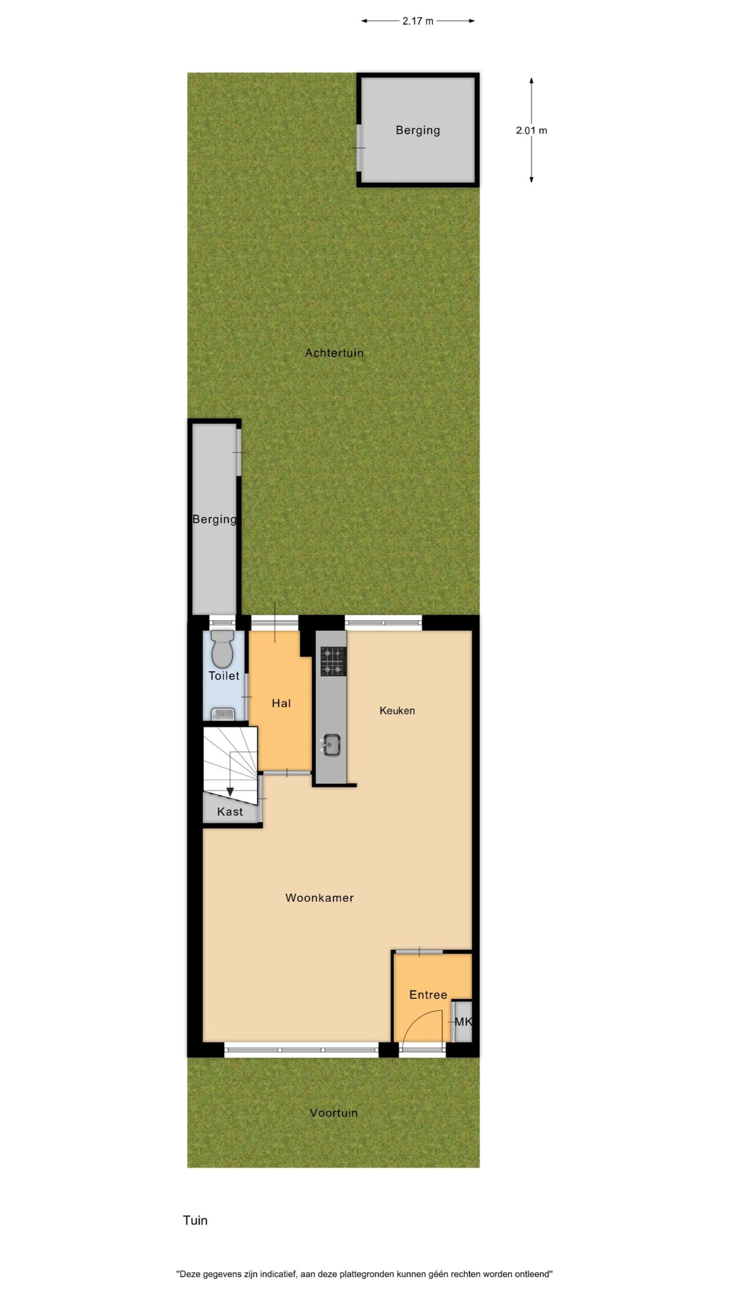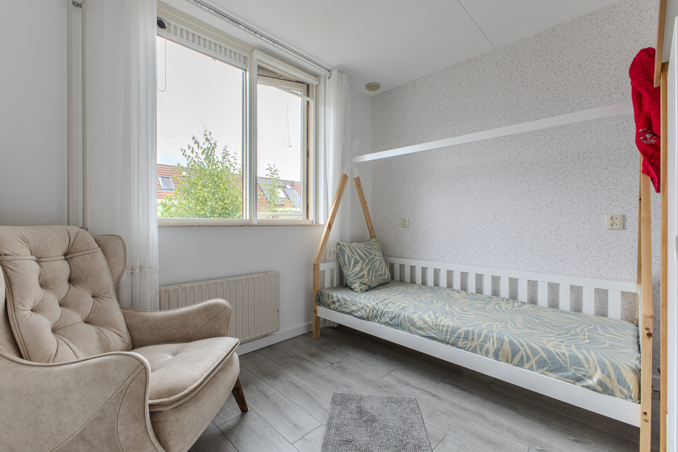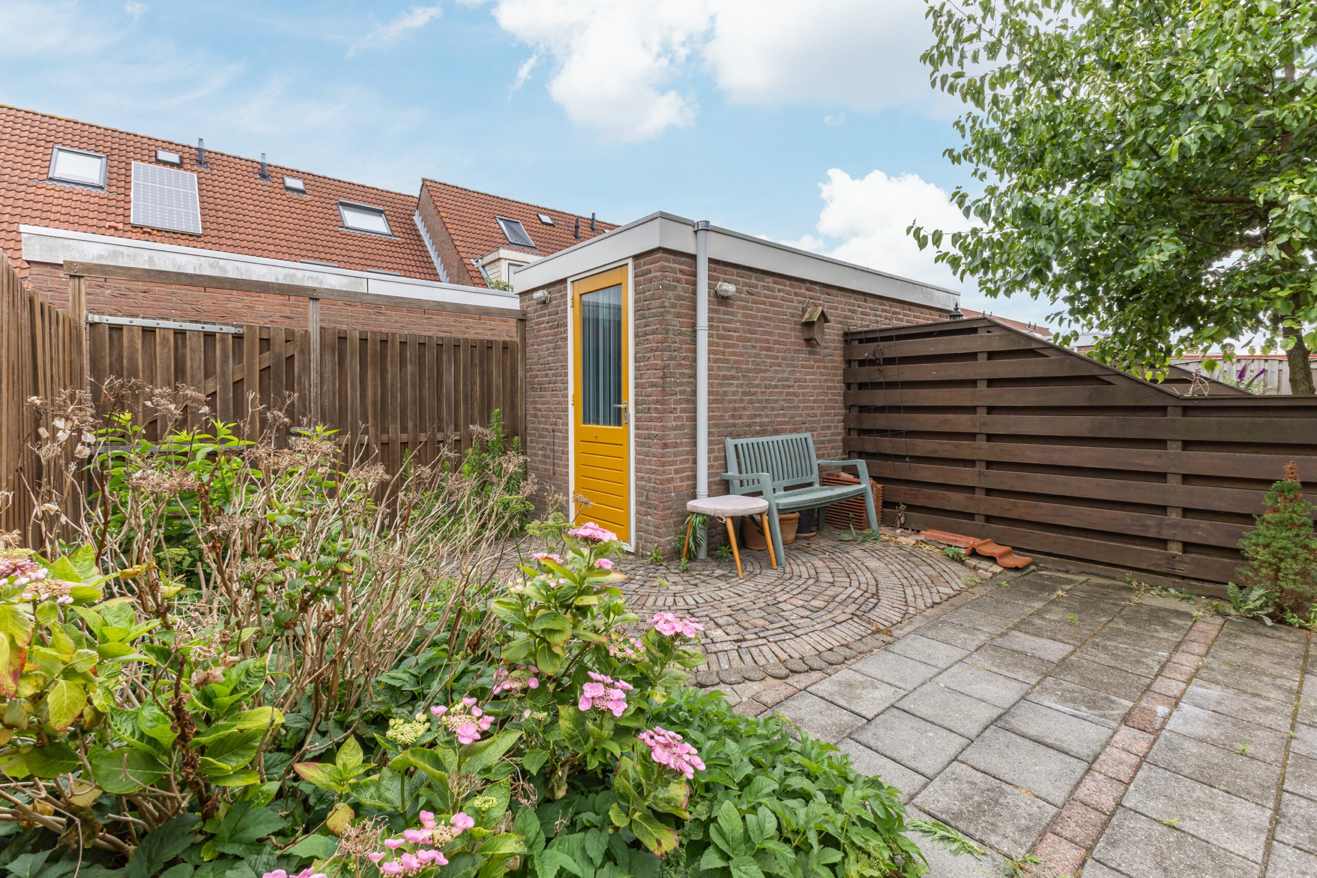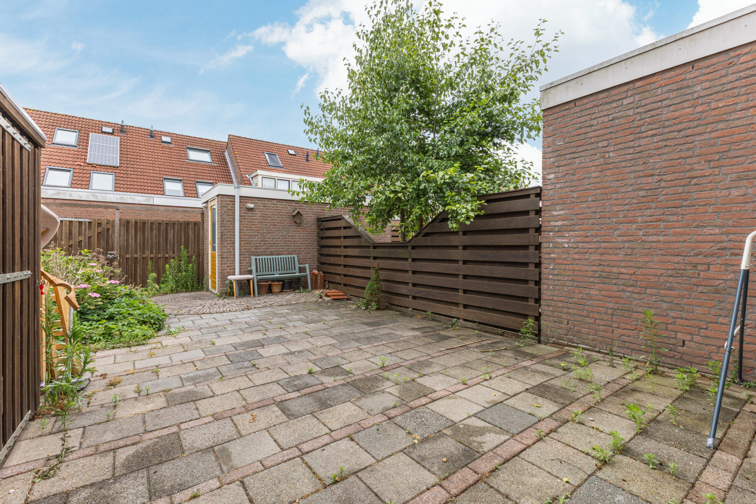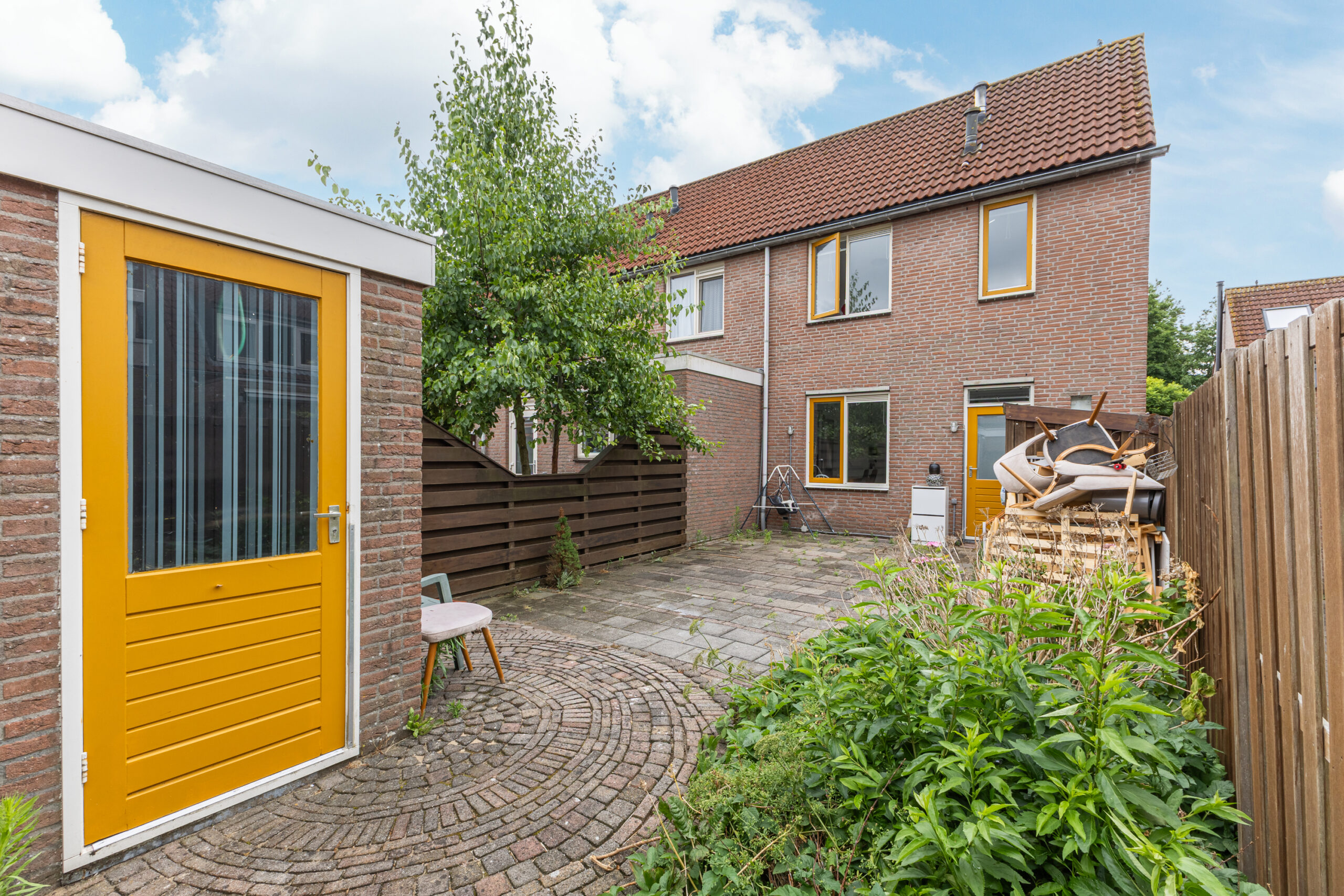 De achtertuin is verrassend diep, met een oppervlakte van ca. 61 m², en biedt volop privacy. Dankzij de ligging op het noordoosten en de open omgeving kun je hier op verschillende momenten van de dag genieten van de zon – en dat geldt ook voor de voortuin. De tuin is groot genoeg voor een gezellige loungehoek, een ruime eettafel én speelruimte voor kinderen. Of je nu wilt ontspannen, eten in de buitenlucht of de kinderen vrij wilt laten spelen: hier is alle ruimte voor. Daarnaast is er een fietsenberging aanwezig en is de tuin via een achterom eenvoudig bereikbaar – ideaal voor dagelijkse routines zoals het stallen van de fiets, het buitenzetten van containers of het snel binnenkomen met boodschappen.
