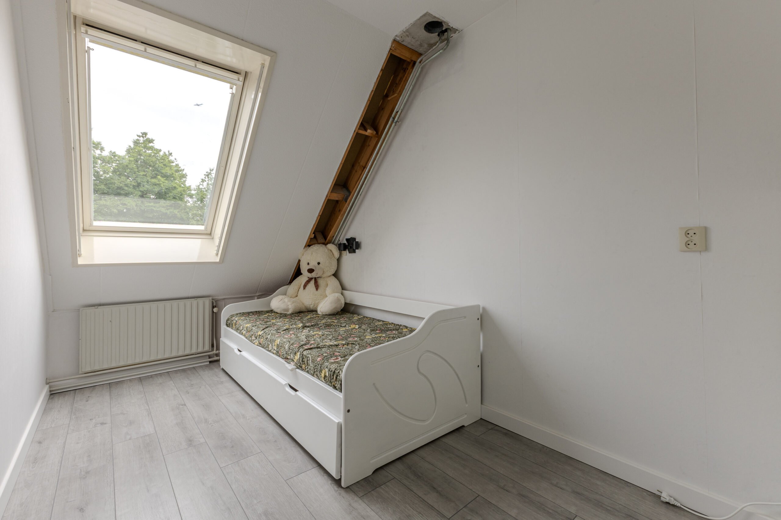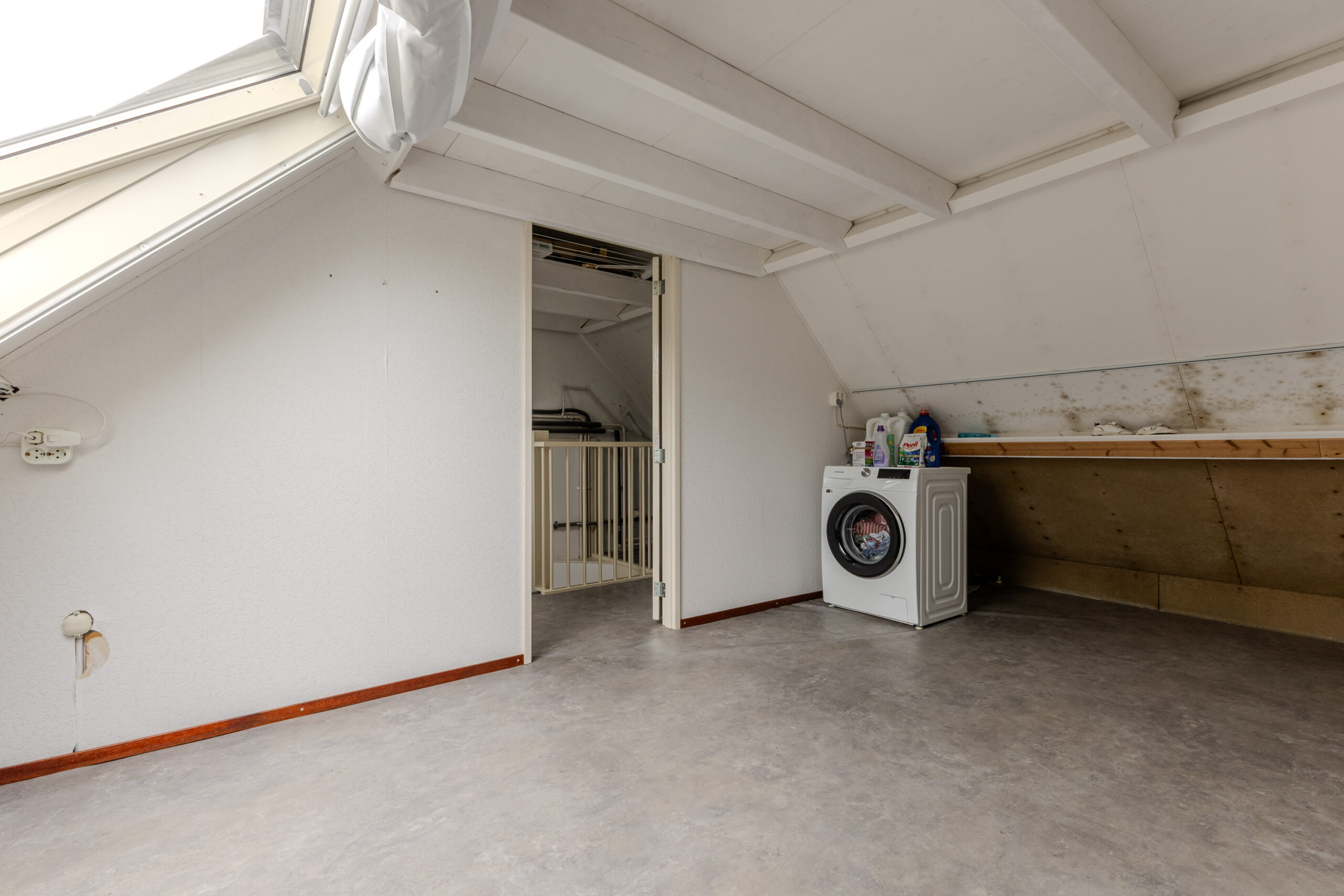 Laten we onze weg vervolgen naar de eerste verdieping. Hier vind je in totaal drie slaapkamers. De hoofdslaapkamer is ruim opgezet en biedt voldoende plaats voor een tweepersoonsbed en een royale kledingkast. De twee overige kamers zijn perfect als kinderkamer, logeerkamer of thuiswerkplek. Dankzij de dakramen zijn alle kamers lekker licht. De badkamer functioneel ingericht en voorzien van een bad en wastafel. Op de tweede verdieping vind je een vierde slaapkamer, ideaal voor tieners of eventueel als hobbyruimte. Op de overloop is bovendien volop ruimte voor je wasmachine en droger – praktisch én uit het zicht.