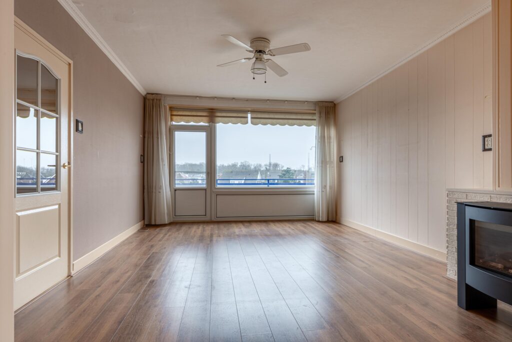De woonkamer is royaal van formaat en profiteert van grote raampartijen die zorgen voor een prettige lichtinval en een open uitstraling. Hier is volop ruimte voor een comfortabele zithoek en een royale eettafel, waardoor u verschillende indelingsmogelijkheden heeft. Vanuit de woonkamer heeft u toegang tot het balkon, dat gunstig op het zuiden is gelegen. Hierdoor kunt u hier optimaal genieten van de zon en vormt het balkon een fijne verlenging van de leefruimte.
