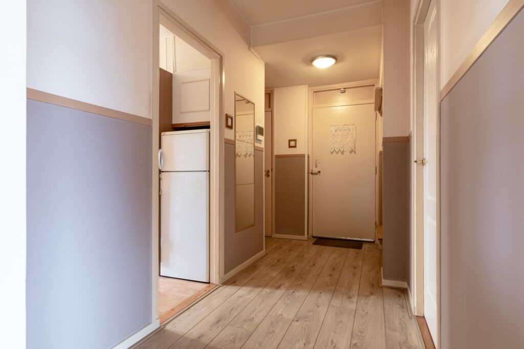 Bij binnenkomst valt direct de ruime opzet van het appartement op. De centrale hal vormt het hart van de woning en geeft toegang tot vrijwel alle vertrekken, wat zorgt voor een praktische en overzichtelijke indeling.