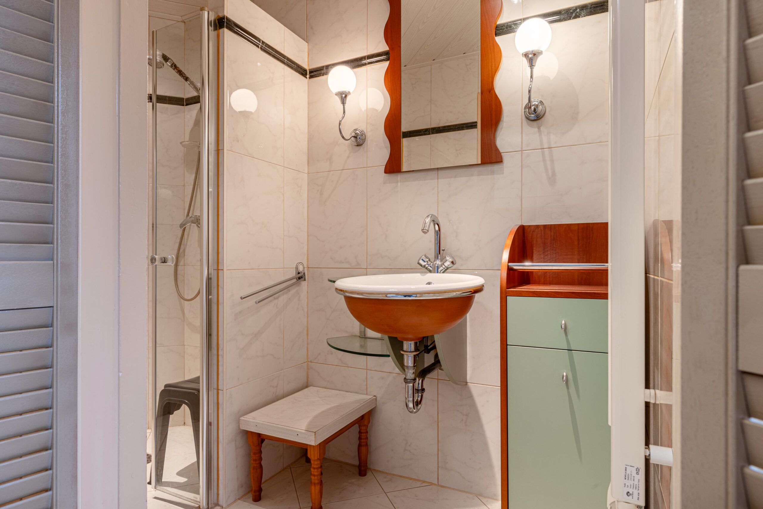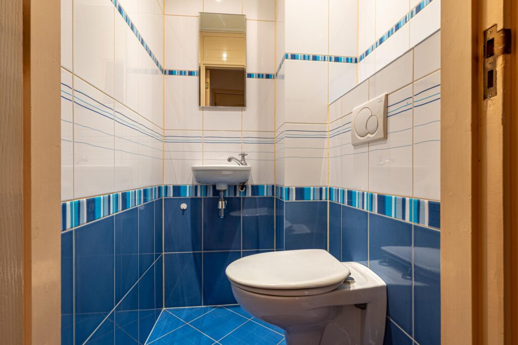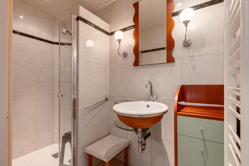 De badkamer is voorzien van een douche en wastafel. Het toilet is separaat en bereikbaar vanuit de hal.”