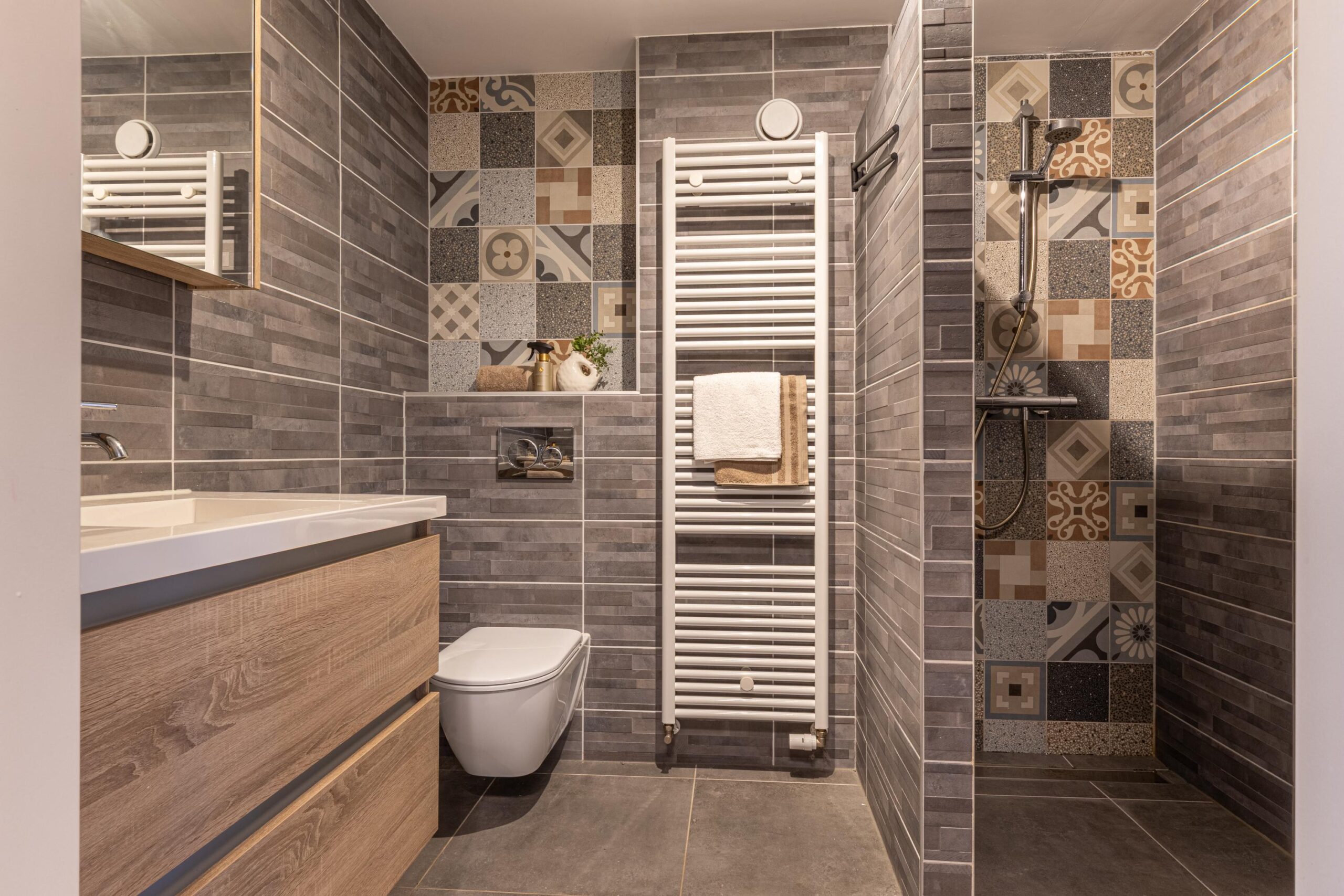 Op de eerste verdieping bevinden zich drie Slaapkamers. Bij het wakker worden even genieten van de ochtendmist boven het veld? Aan de achterzijde van het huis bevindt zich een ruime slaapkamer met inloopkast. Of liever wakker worden met de eerste zonnestralen in de royale kamer met Frans balkon aan de voorkant? De mogelijkheden op deze verdieping zijn eindeloos. Eventueel is de inloopkast zelfs in gebruik te nemen als derde slaapkamer. De badkamer is in 2020 volledig vernieuwd en straalt een moderne en tijdloze sfeer uit. De badkamer is voorzien van een ruime inloopdouche, een toilet en een wastafel met bijpassend meubel. Een comfortabele en verzorgde ruimte waar je elke dag prettig de dag begint en afsluit. We gaan nog een verdieping hoger, waar je verrast wordt door nog eens twee slaapkamers. Dankzij de dakkapellen aan zowel de voor- als achterzijde zijn dit lichte en goed bruikbare ruimtes. Op de overloop is een praktische plek gecreëerd voor de wasmachine en droger, inclusief de benodigde aansluitingen. Onder het schuine dak bevinden zich grote, netjes afgewerkte bergruimtes, perfect voor het opbergen van spullen die je niet dagelijks gebruikt.