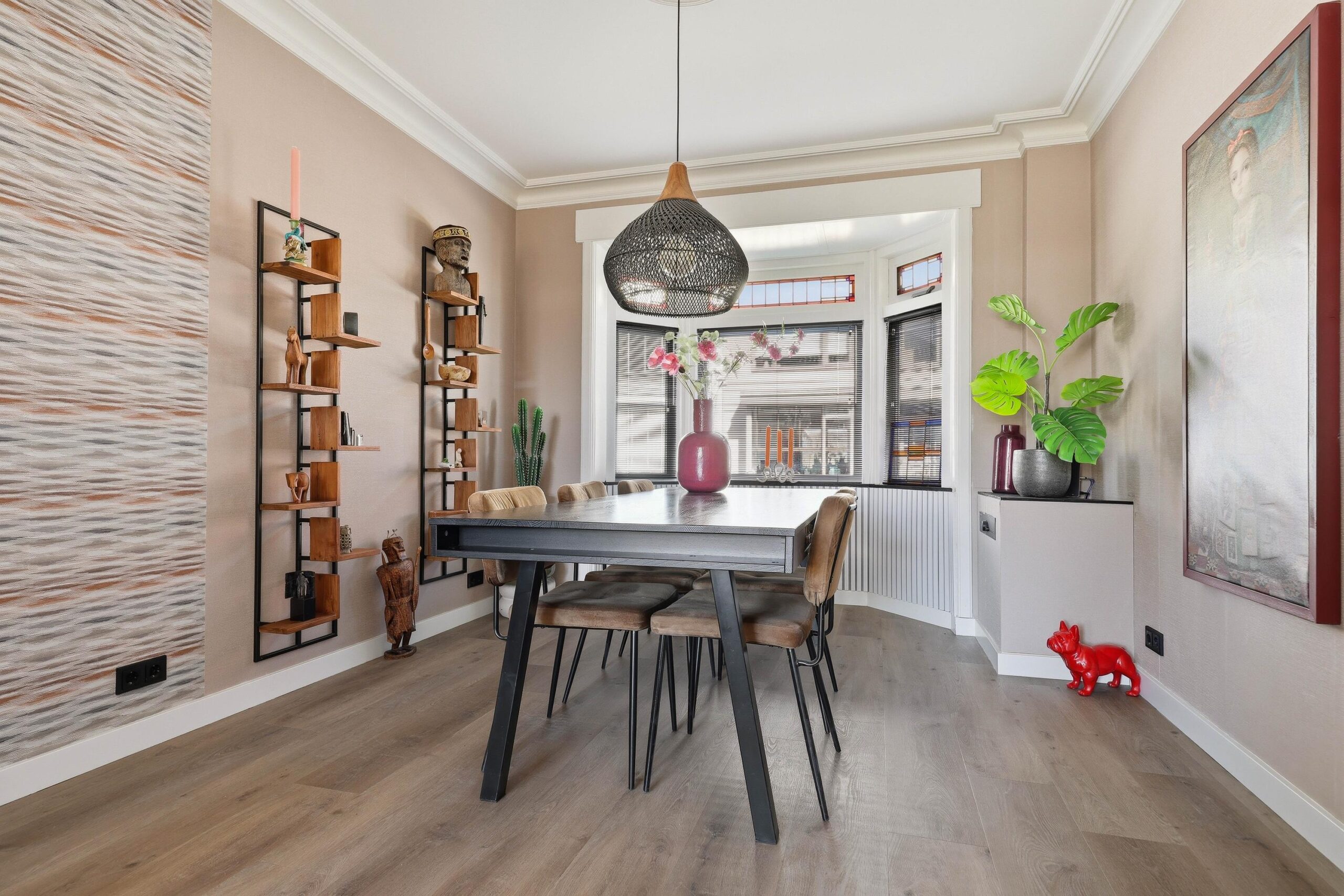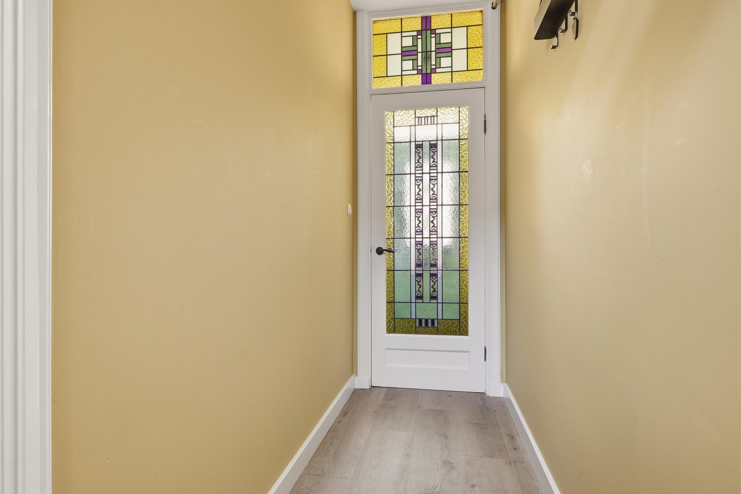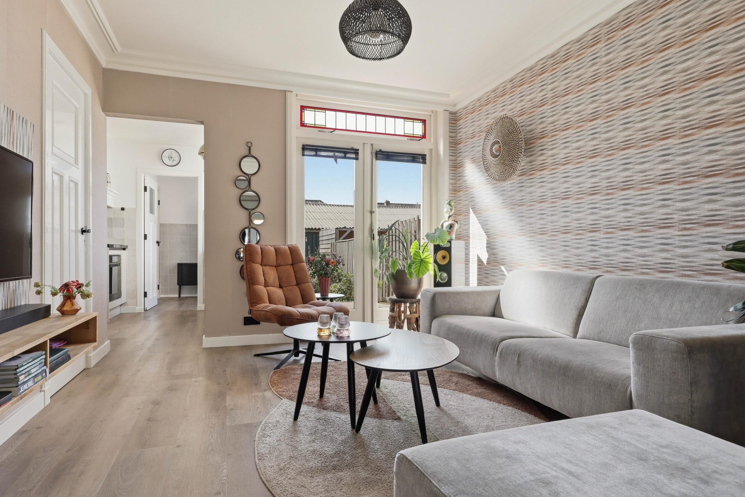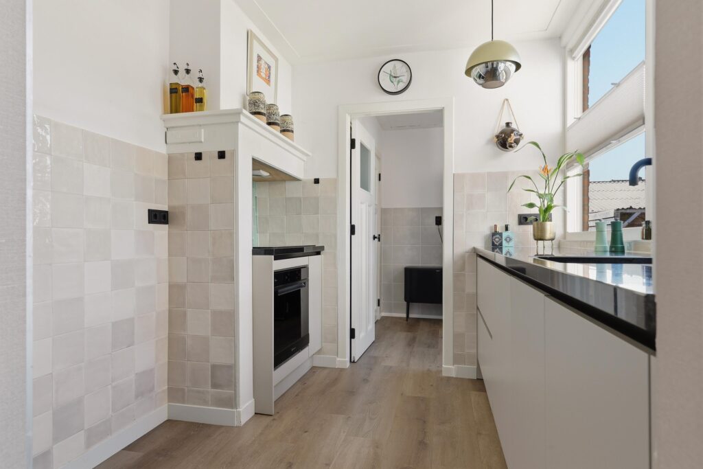 Bij binnenkomst ervaar je direct de warme uitstraling van deze goed onderhouden woning. De woonkamer is licht en sfeervol, mede dankzij de aanwezige glas-in-loodramen met HR++ beglazing, wat zorgt voor een prettige lichtinval en een authentiek karakter. De ruimte biedt voldoende plek voor een comfortabele zithoek en een gezellige eethoek. Aan de achterzijde bevindt zich de moderne keuken, vernieuwd in 2022 en voorzien van diverse inbouwapparatuur en een Quooker, waardoor koken hier een waar plezier is. Aansluitend is er toegang tot de achtertuin.