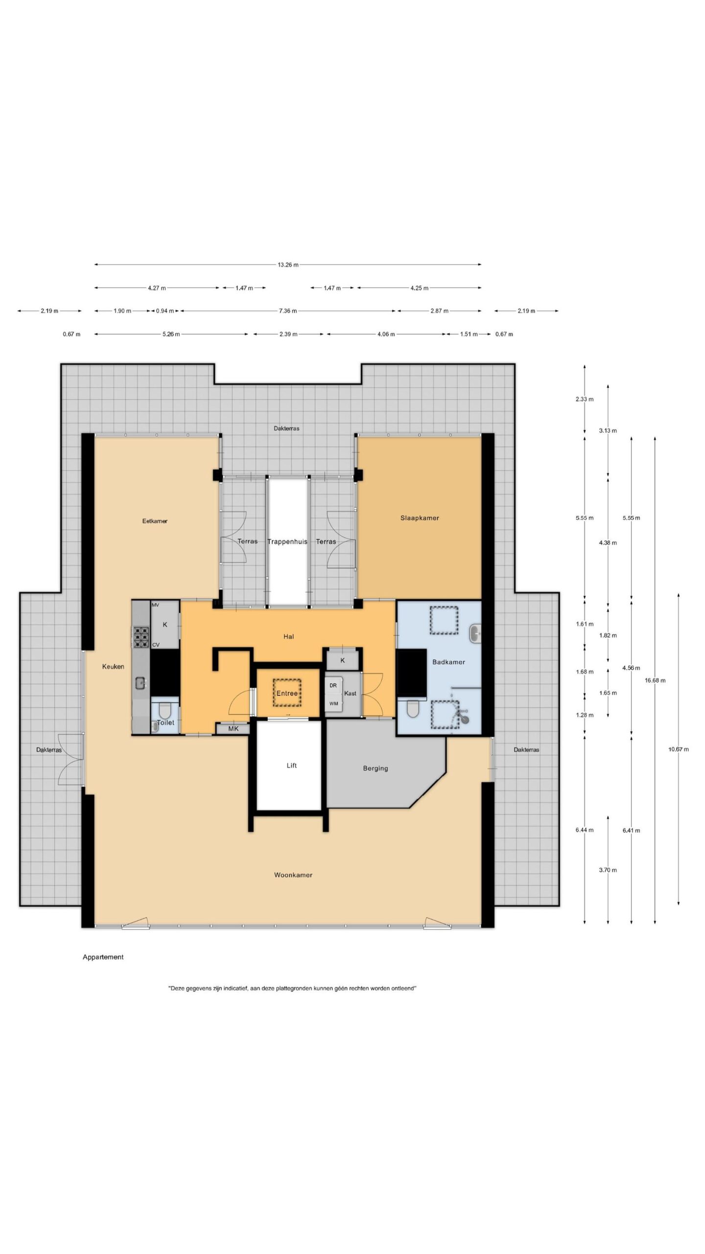 • Privé dakterras rondom het penthouse van totaal 105 m2