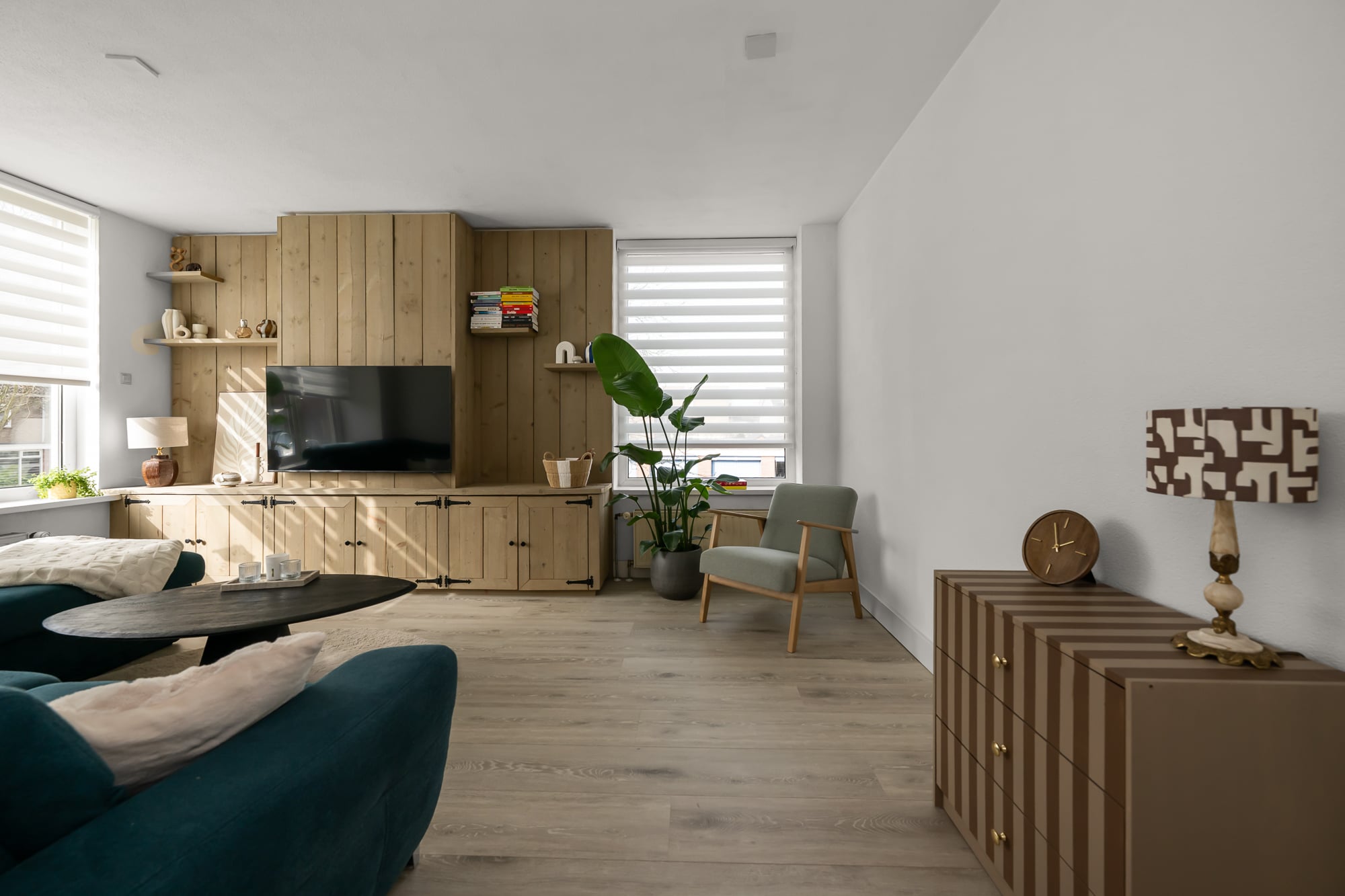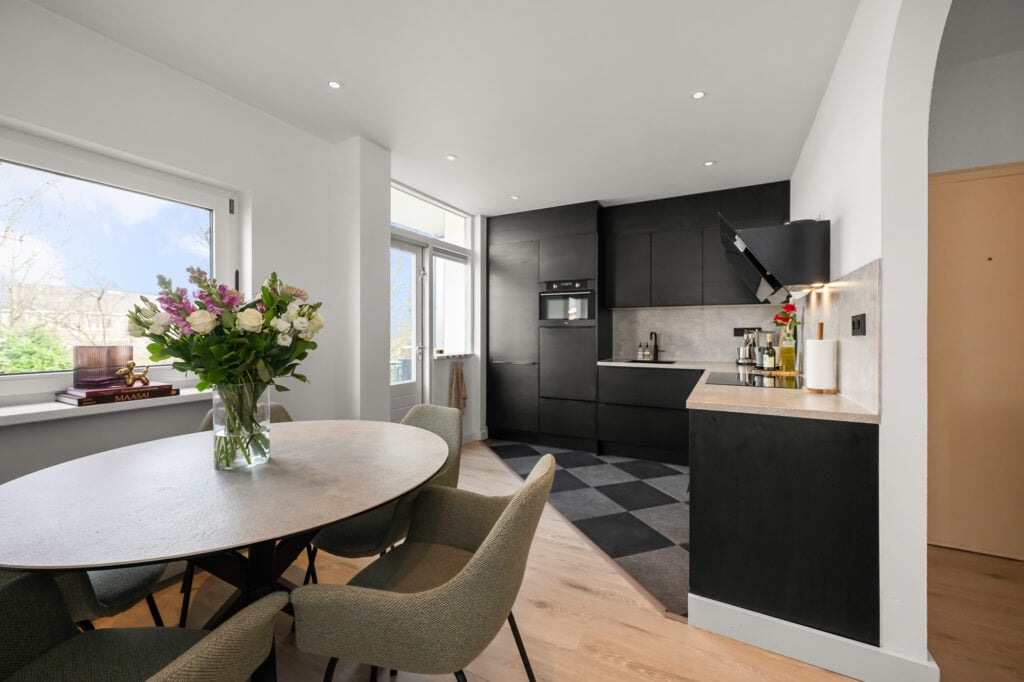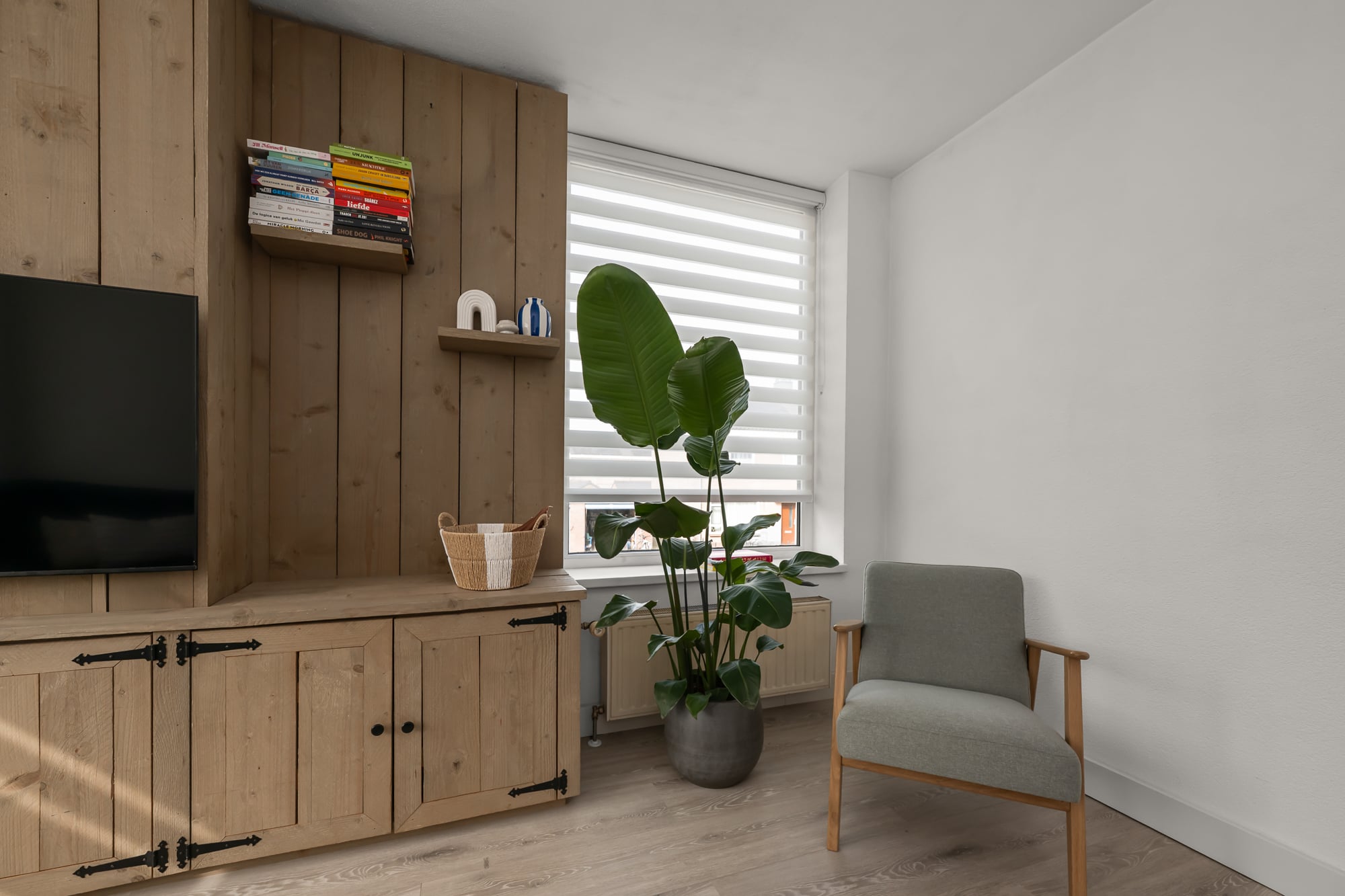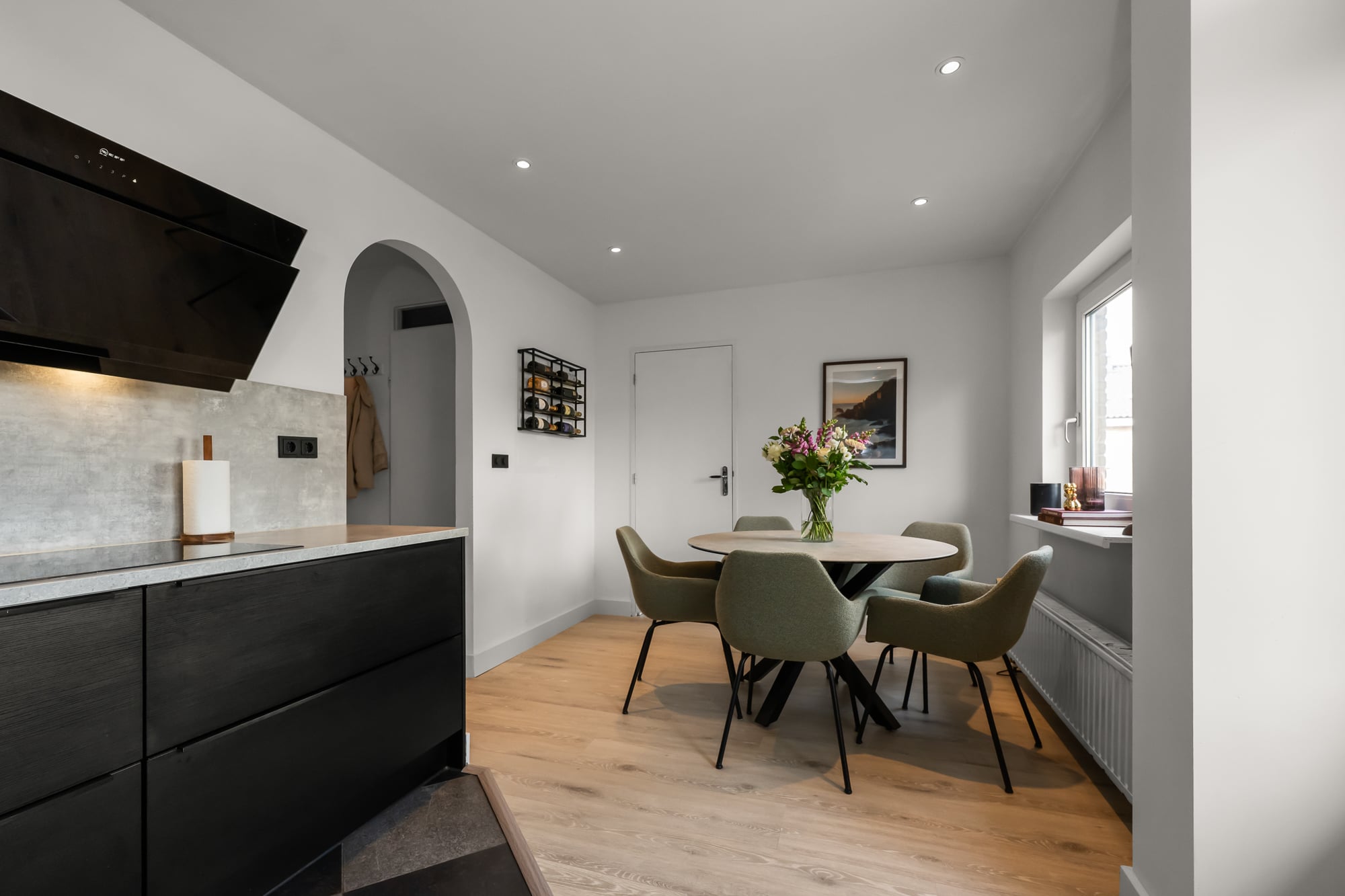 De hippe keuken is in 2022 door vorig eigenaar vernieuwd. Dankzij de praktische opstelling en de aanwezige inbouwapparatuur kook je hier de sterren van de hemel én heb je voldoende werk- en opbergruimte. Vrienden over de vloer of een avondje borrelen? De gezelligste ruimte in huis is natuurlijk de keuken, daarom is het extra fijn dat de keuken ruim van opzet is, de eettafel staat dan ook op de juiste plek in huis.