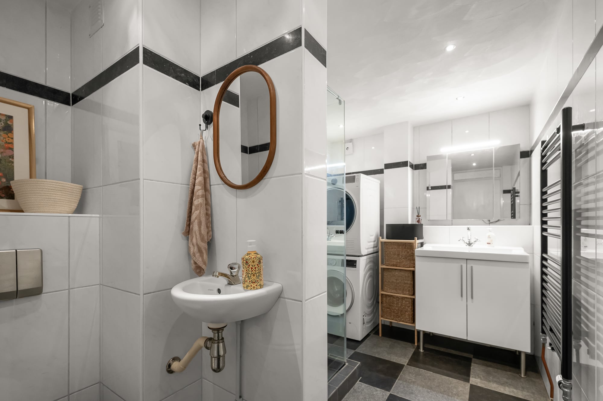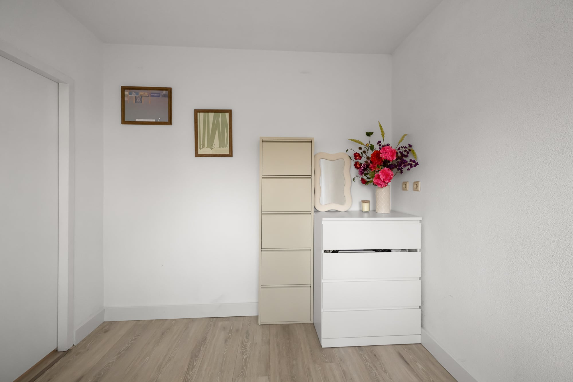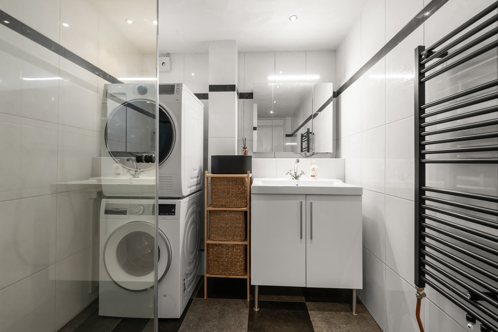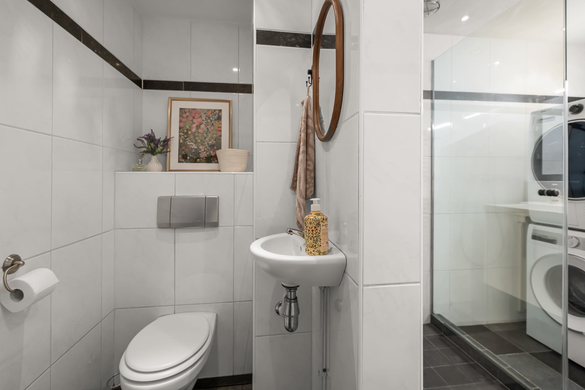 Verder beschikt het appartement over twee slaapkamers. De grootste kamer is perfect als hoofdslaapkamer, terwijl de tweede kamer ideaal is om te gebruiken als werkplek, logeerkamer of hobbyruimte. De badkamer is ruim en heeft een frisse, moderne uitstraling met een douche, wastafel en toilet. Door de ruime opstelling past hier met gemak een wasmachine en een droger.