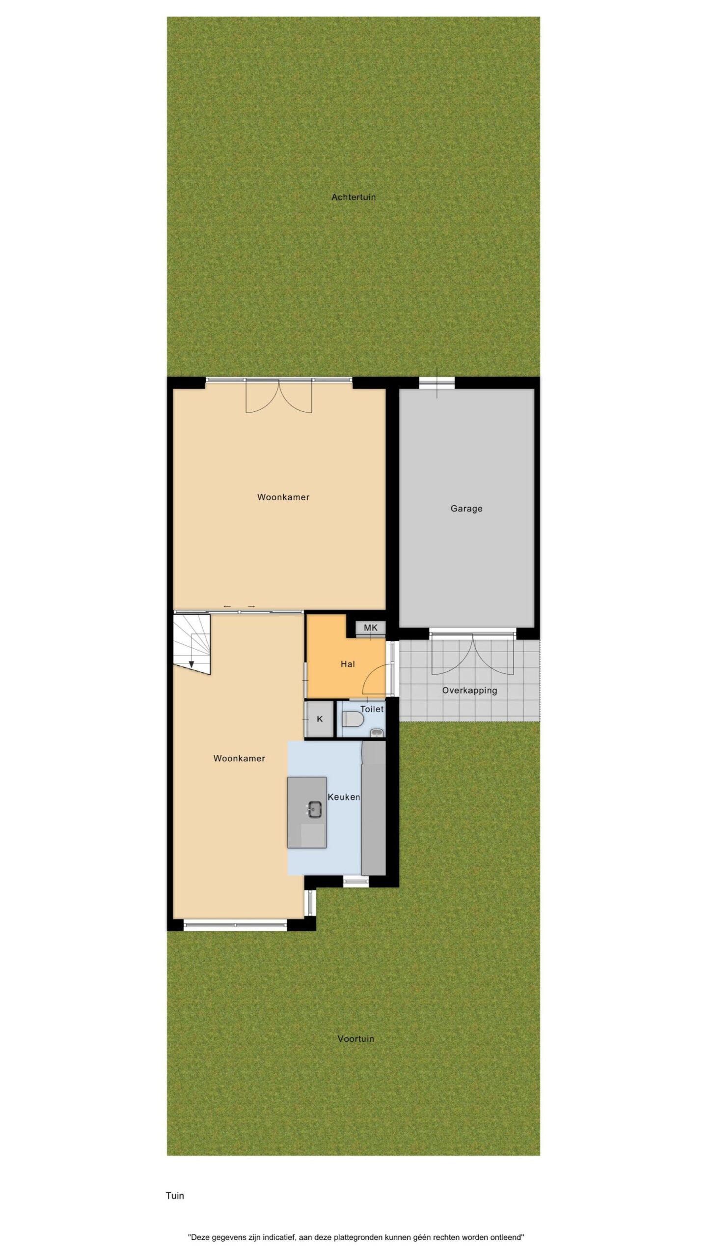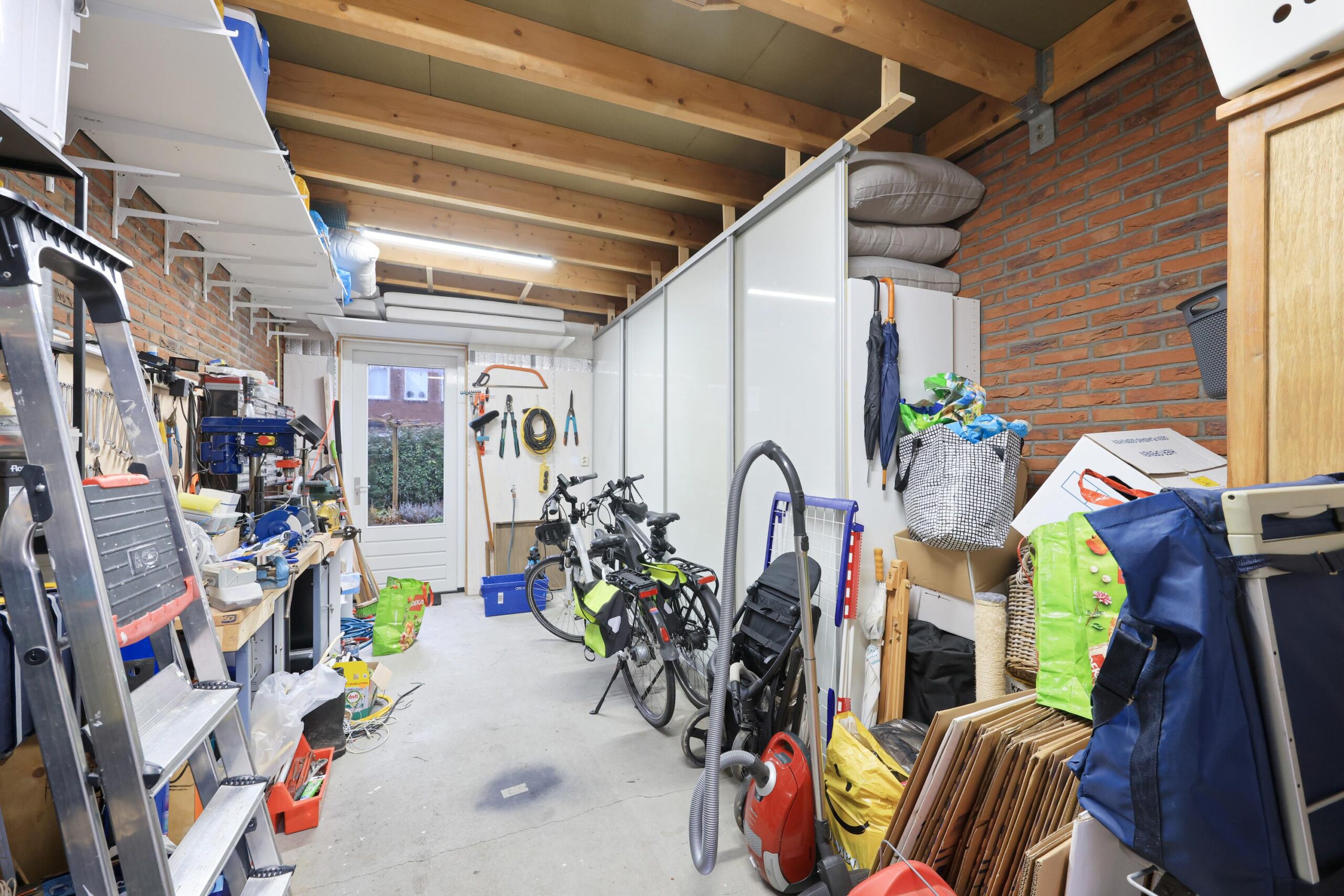 Vanuit de woonkamer geven openslaande deuren toegang tot de zonnige achtertuin. De aangebouwde stenen garage is vanuit de achtertuin bereikbaar – perfect voor opslag, hobby of het stallen van fietsen.