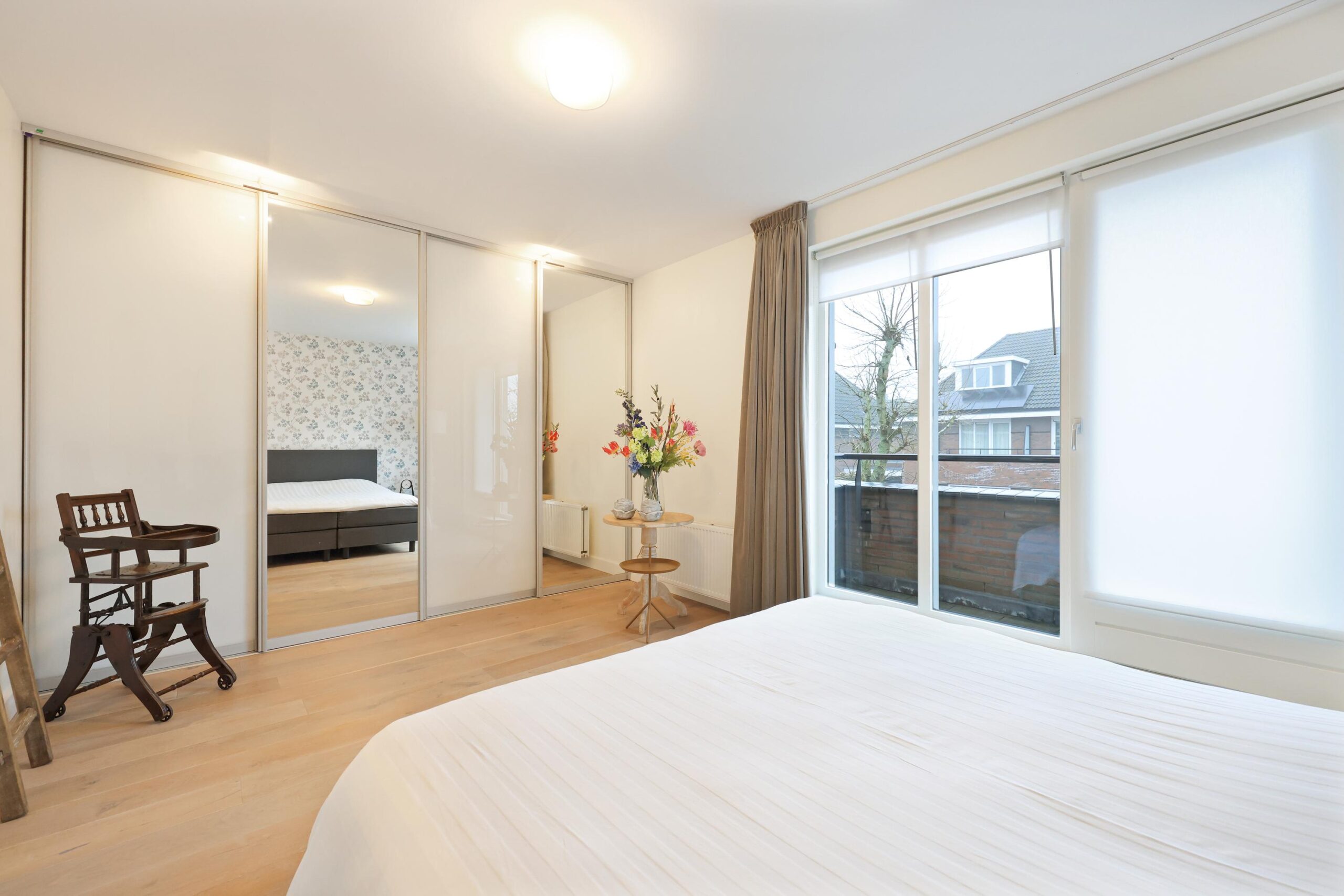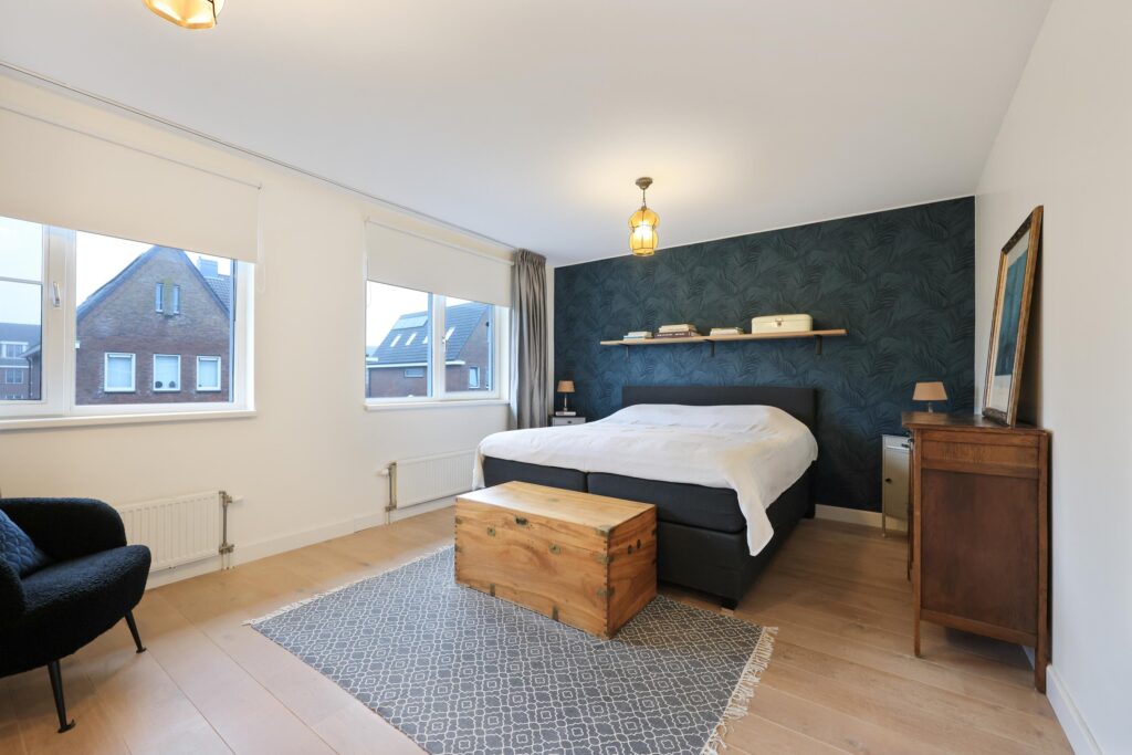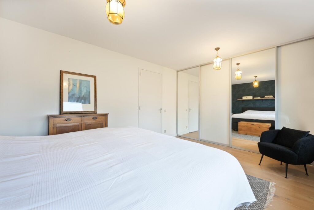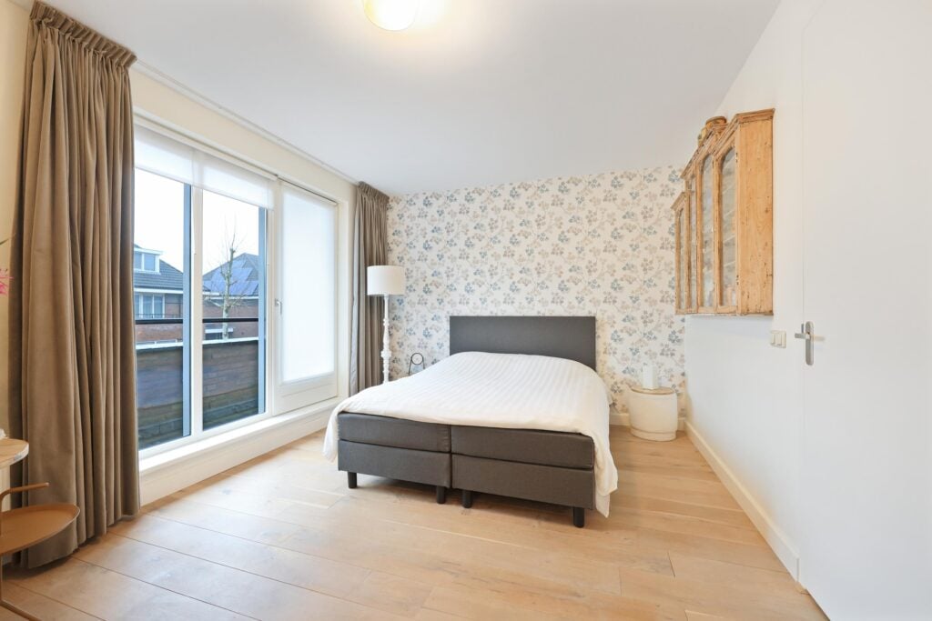 Op de eerste verdieping bevinden zich twee zeer royale slaapkamers. De hoofdslaapkamer is ruim van opzet en beschikt over grote raampartijen die zorgen voor veel daglicht. De moderne badkamer is circa twee jaar geleden vernieuwd en uitgevoerd in een frisse, tijdloze stijl. Je vindt hier een ruime inloopdouche, wastafelmeubel en toilet.