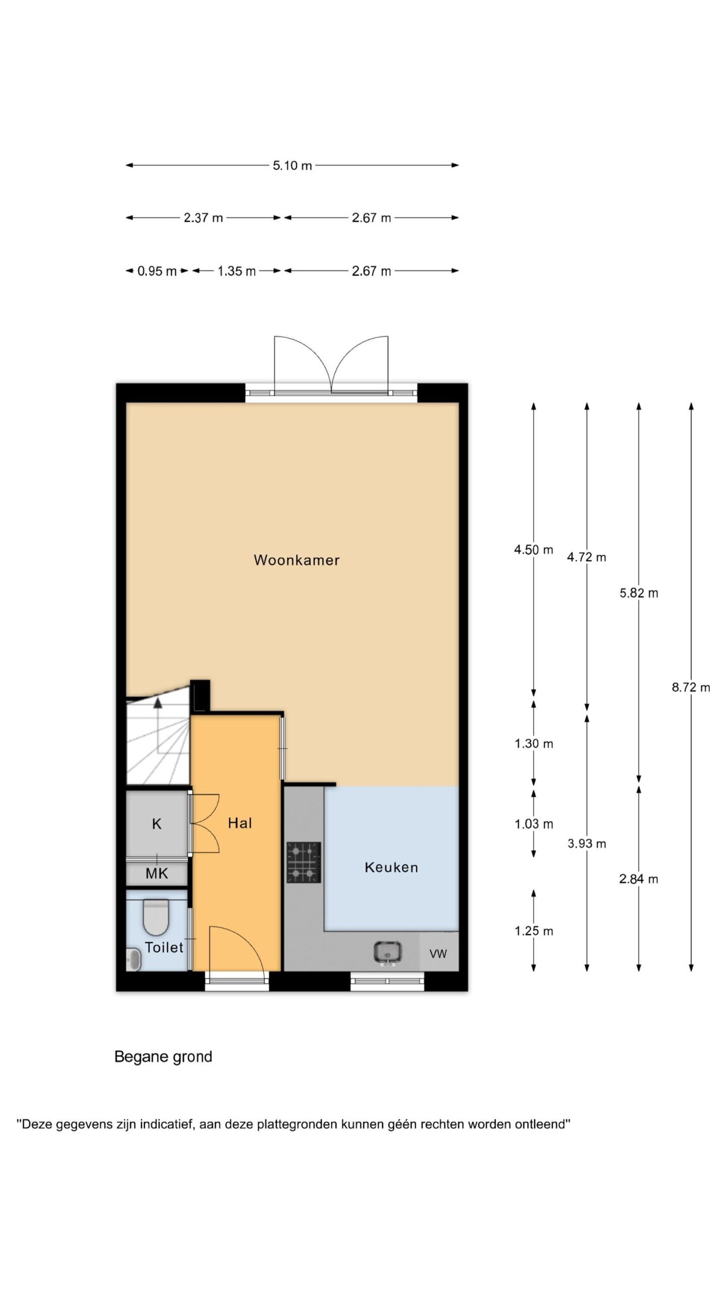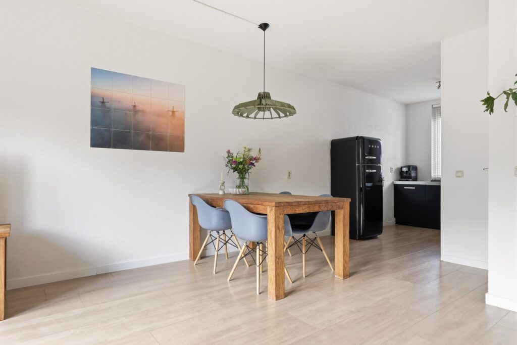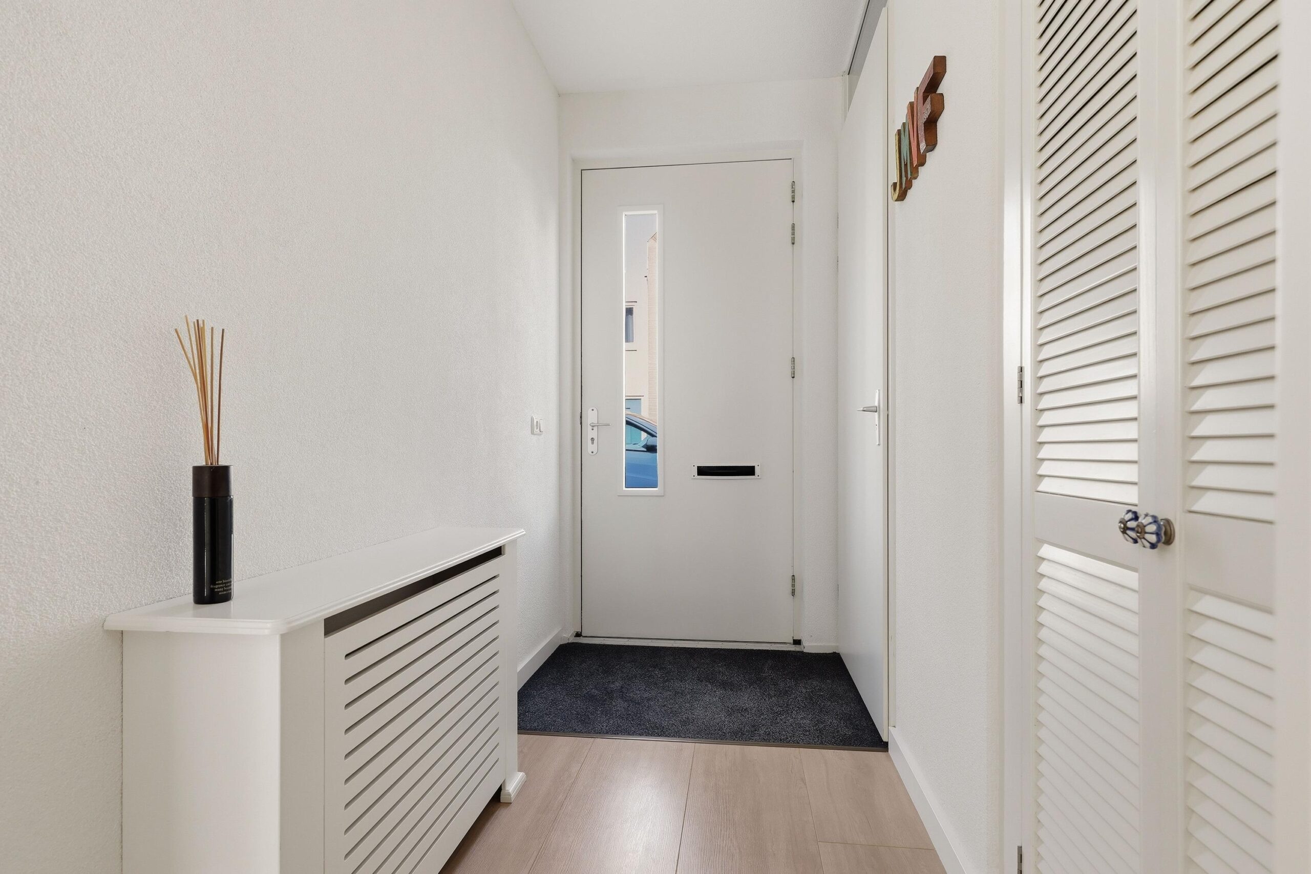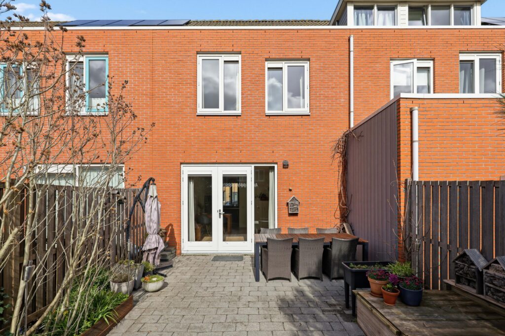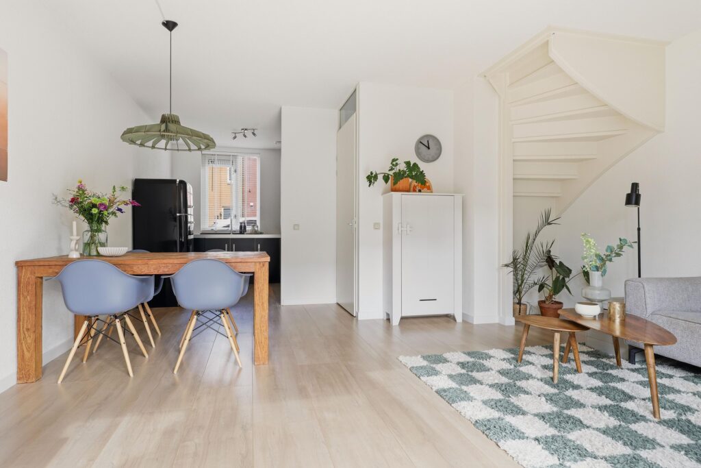 Bij binnenkomst valt direct de nette afwerking en prettige lichtinval op. De woning is gelegen aan een rustige straat en maakt direct een verzorgde indruk. De entree geeft toegang tot de hal met toilet en leidt naar de ruime woonkamer, waar grote openslaande deuren zorgen voor een open en lichte sfeer. De woonkamer is afgewerkt met een nette vloer en hoge witte plinten, wat het geheel een moderne en verzorgde uitstraling geeft. Aan de achterzijde zorgen openslaande deuren voor een directe verbinding met de zonnige tuin op het zuidoosten, waar je vrijwel de hele dag van de zon kunt genieten.