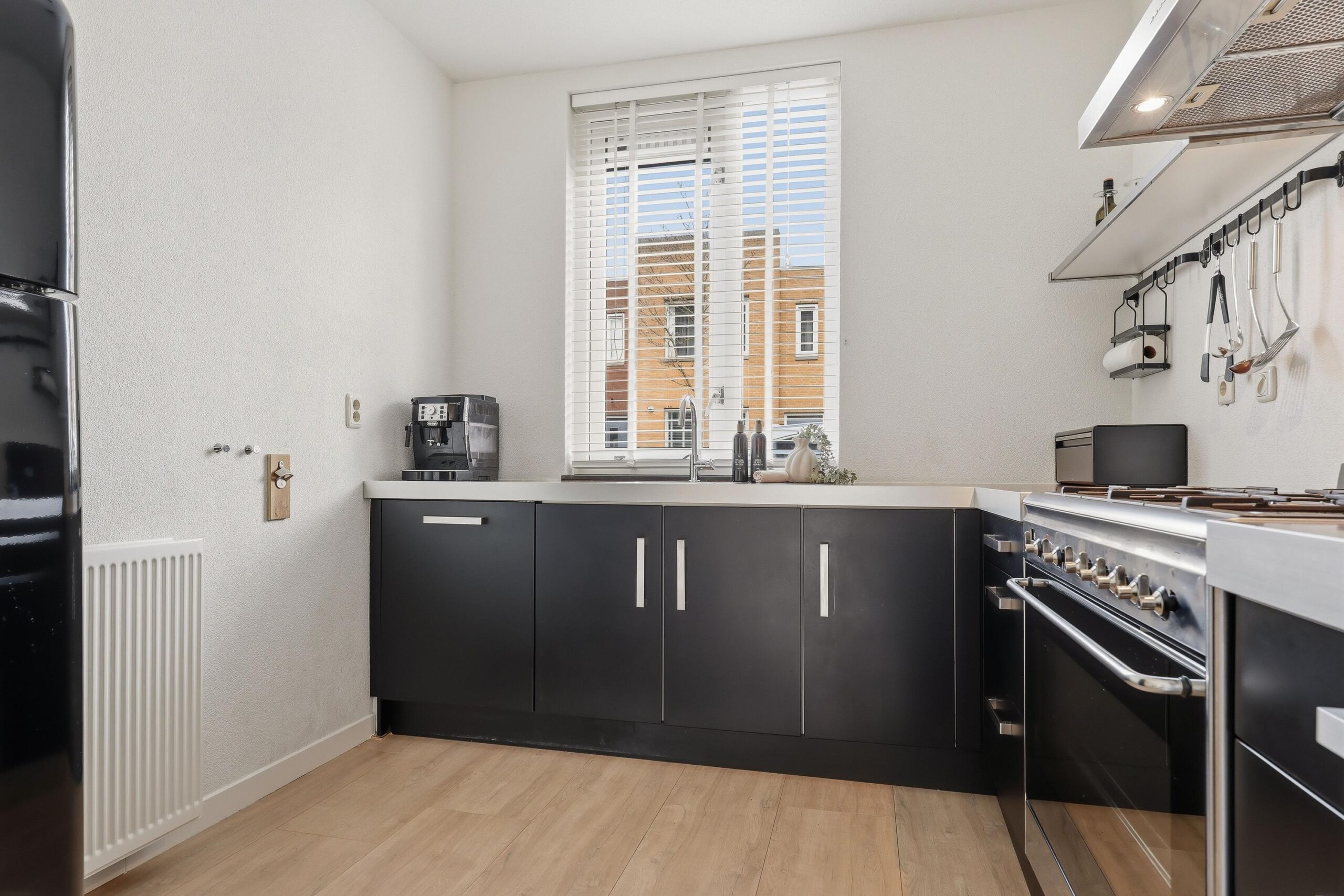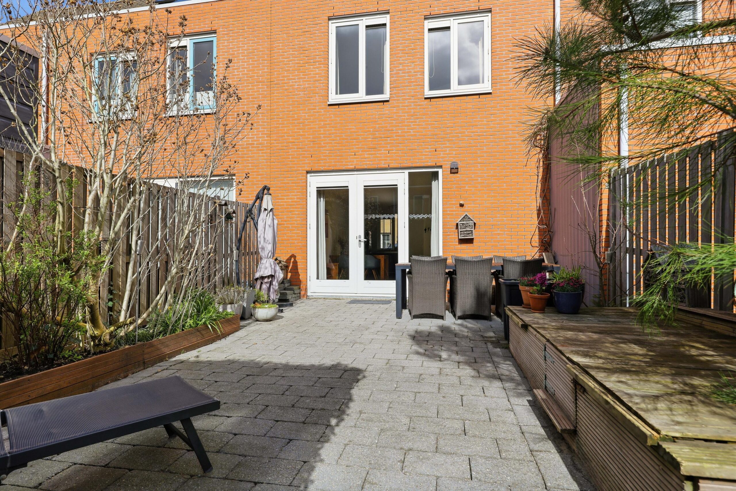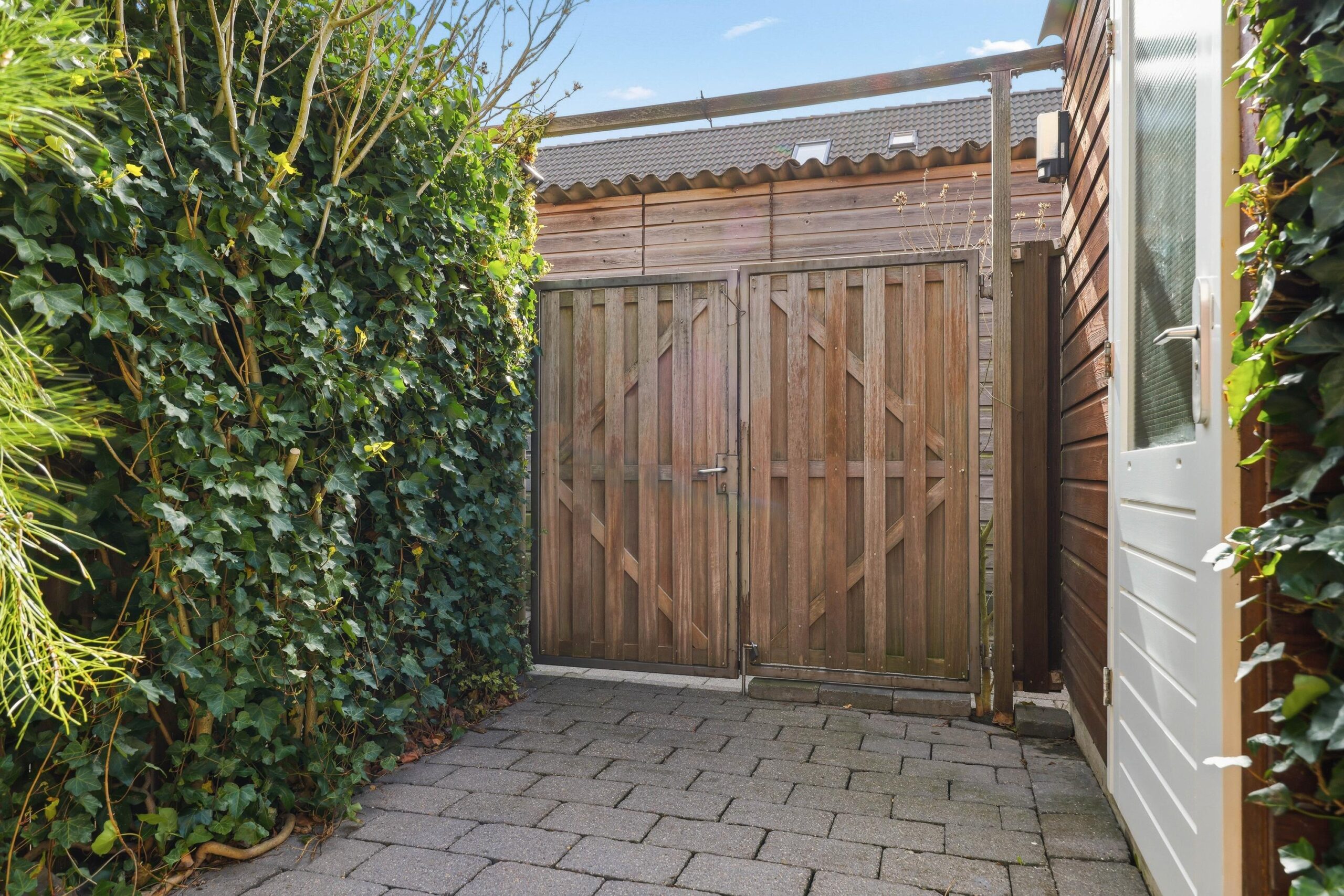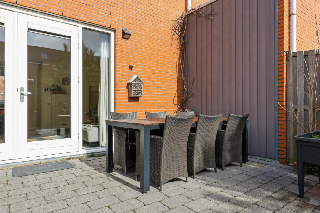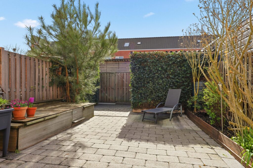 Via de openslaande deuren komen we aan in de tuin. De tuin is verzorgd aangelegd, biedt veel privacy en beschikt over een praktische extra berging, ideaal voor fietsen en extra opslag. De keuken bevindt zich aan de voorzijde van de woning en is praktisch ingericht en voorzien van diverse inbouwapparatuur, waarbij het fornuis en de oven in 2022 zijn vernieuwd, wat zorgt voor extra comfort.