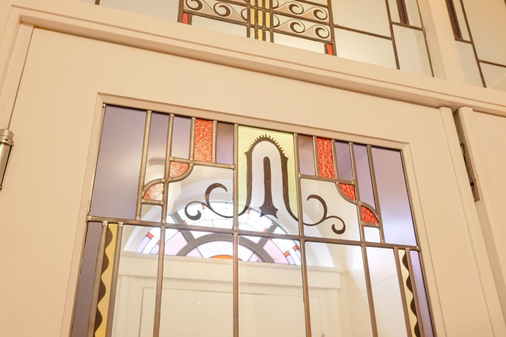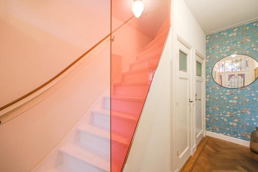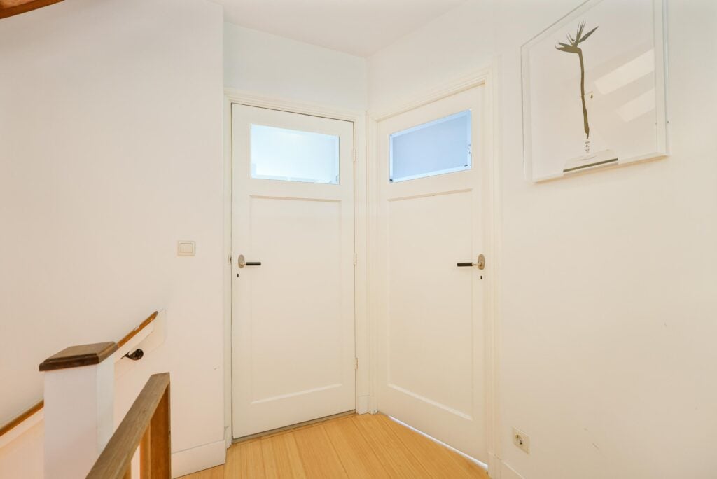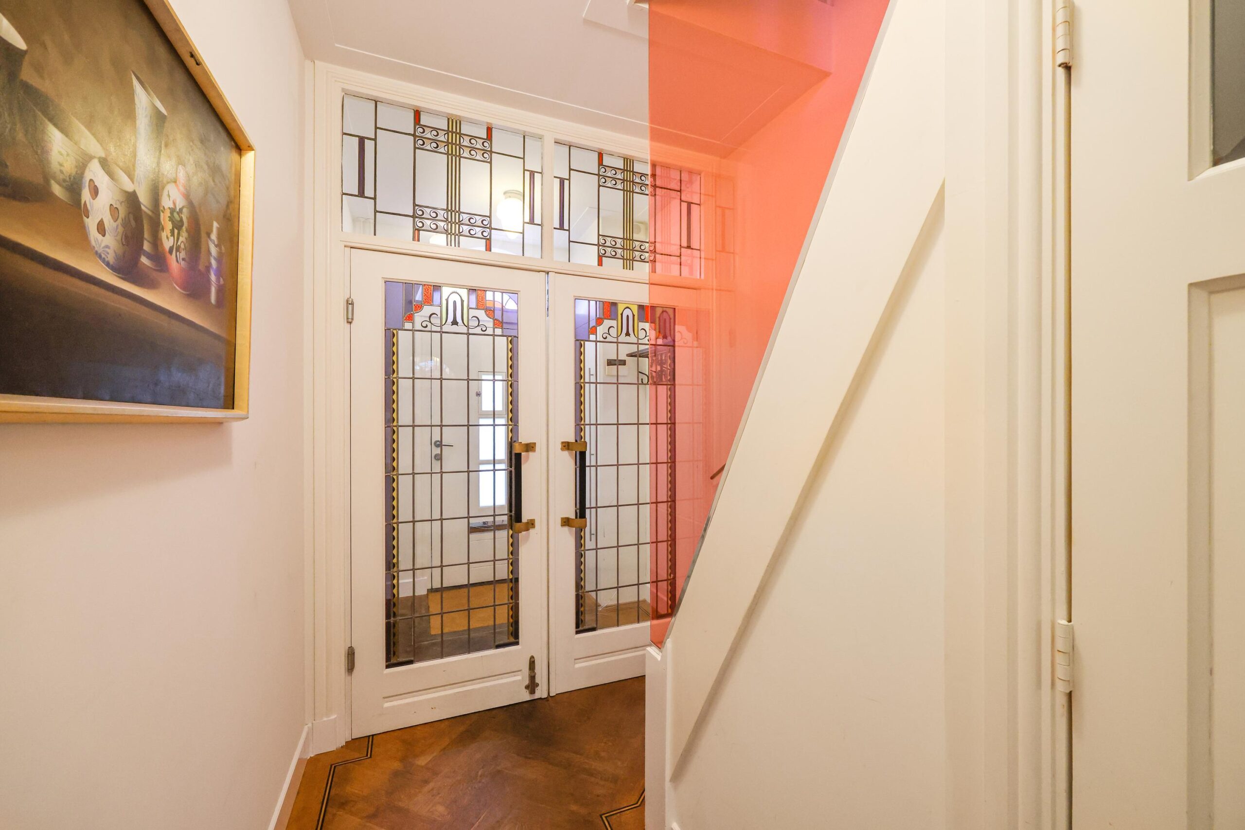 Zodra je binnenstapt via de originele voordeur met het halfronde glas-in-lood bovenlicht, voel je direct de warme sfeer van een echt thuis. De entree is een ware eyecatcher: de prachtige glas-in-looddeuren brengen de sfeer van de jaren ’30 direct tot leven.