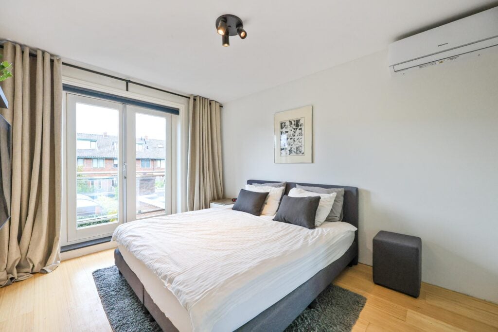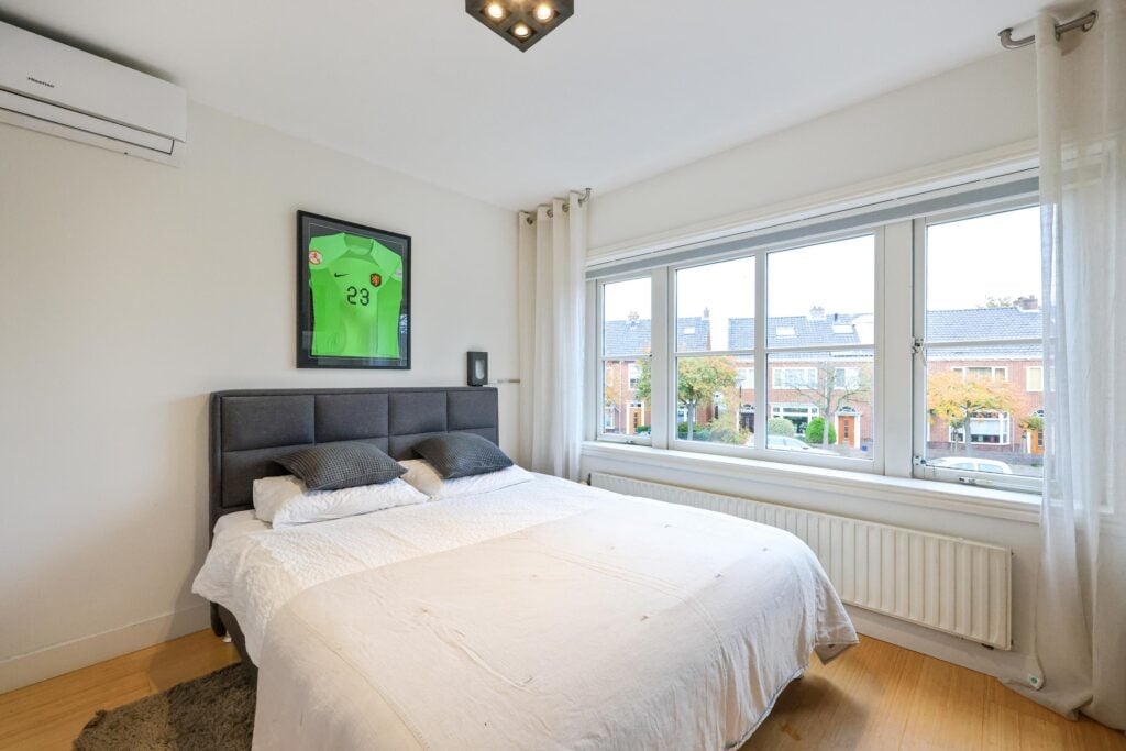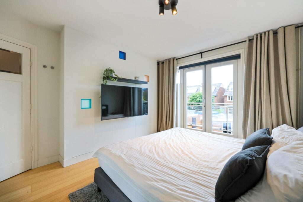 Op de eerste verdieping bevinden zich drie ruime slaapkamers, waarvan twee kamers met airco en de master beschikt over een balkon. De stijlvolle badkamer is uitgevoerd in een rustige, eigentijdse stijl en voorzien van een inloopdouche, een wastafelmeubel en een tweede toilet.