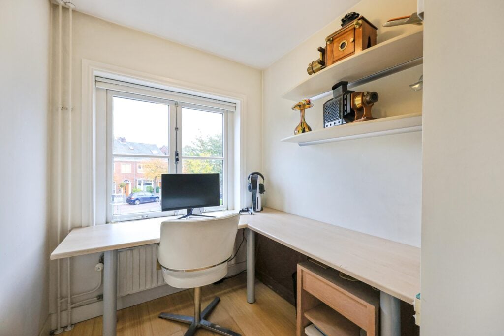 De zolderverdieping is verrassend ruim en biedt plaats aan een vierde slaapkamer voorzien van eveneens een arico, een werkkamer of een hobbyruimte.