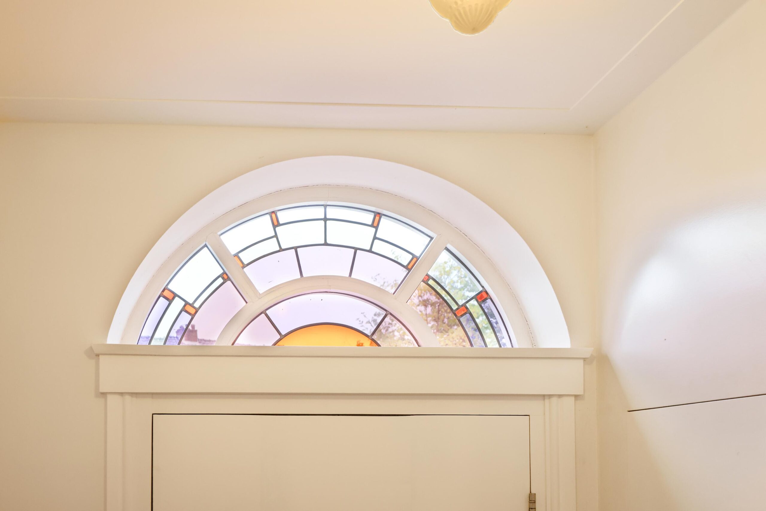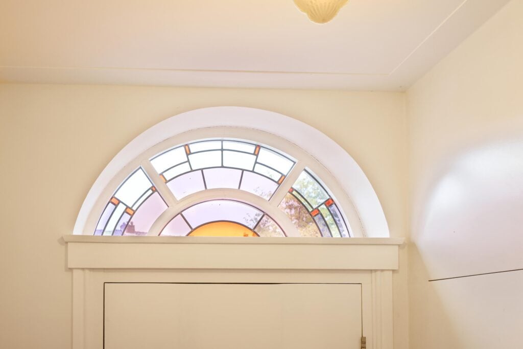 – originele voordeur met halfrond glas-in-lood bovenlicht;