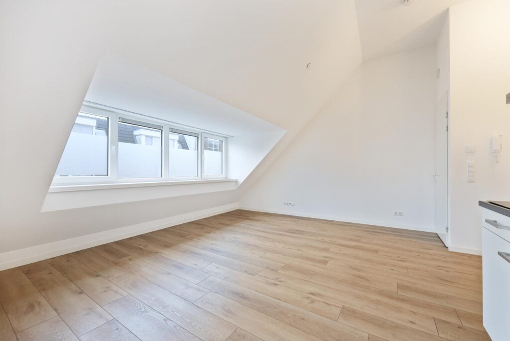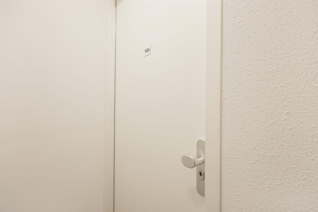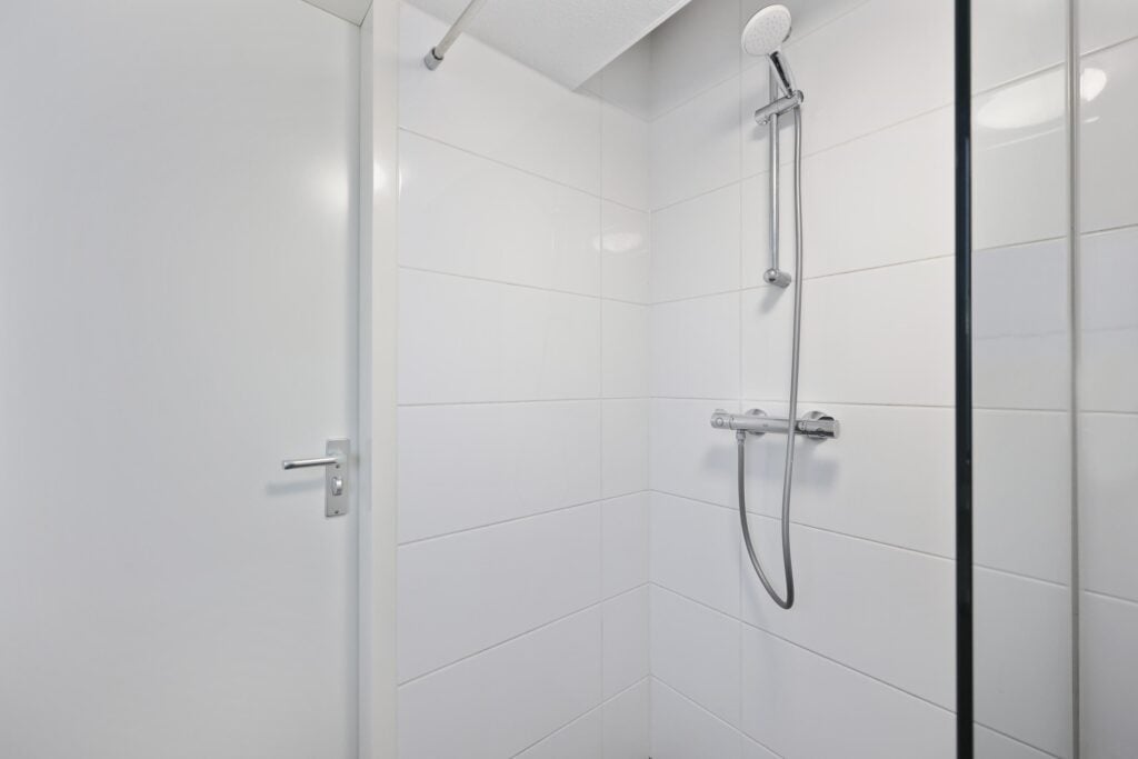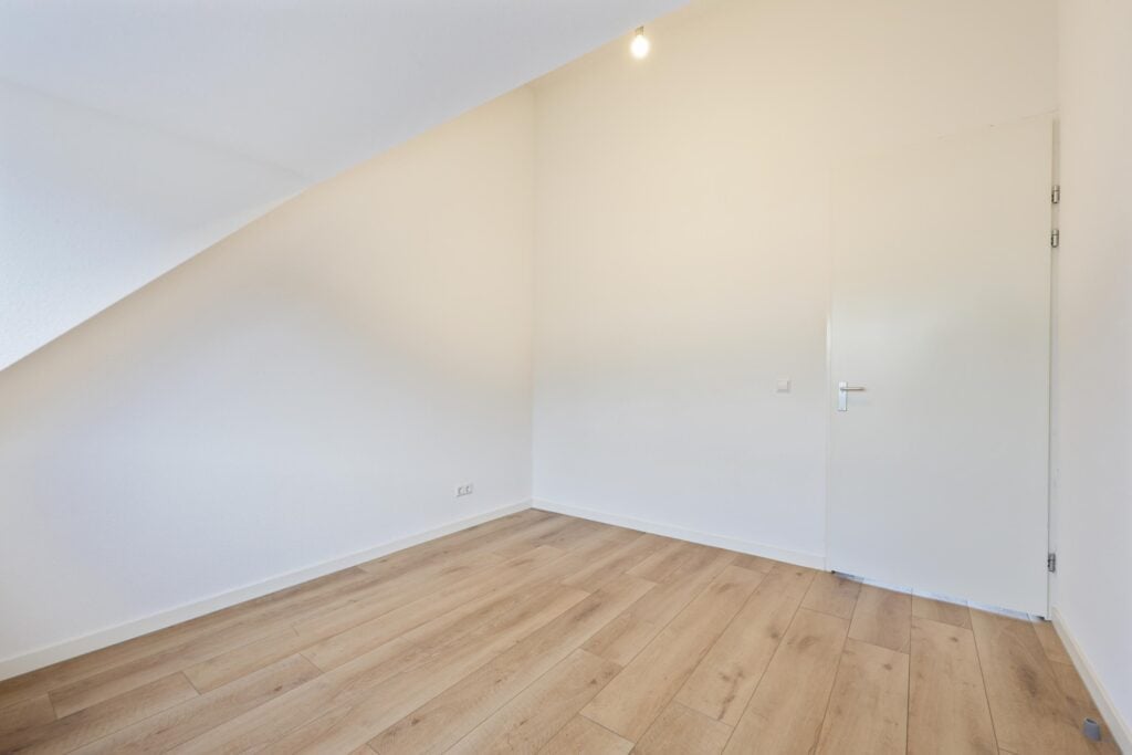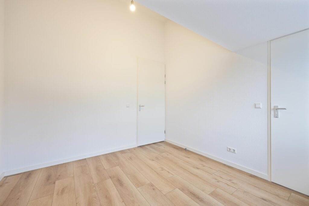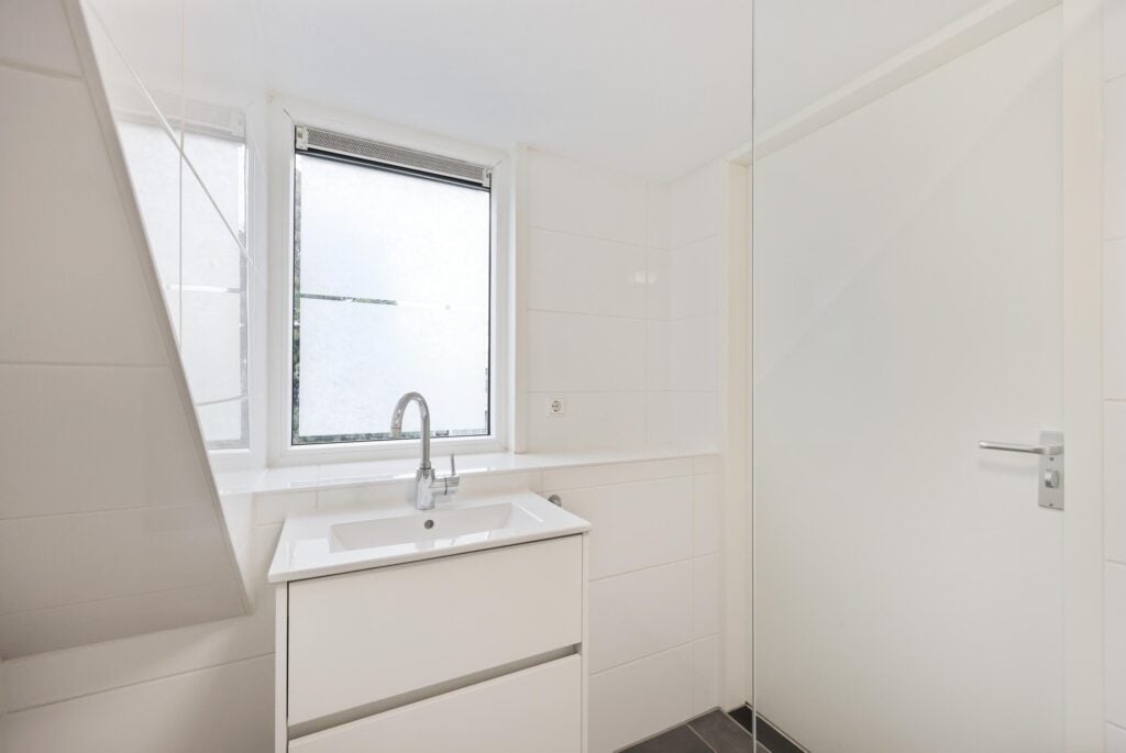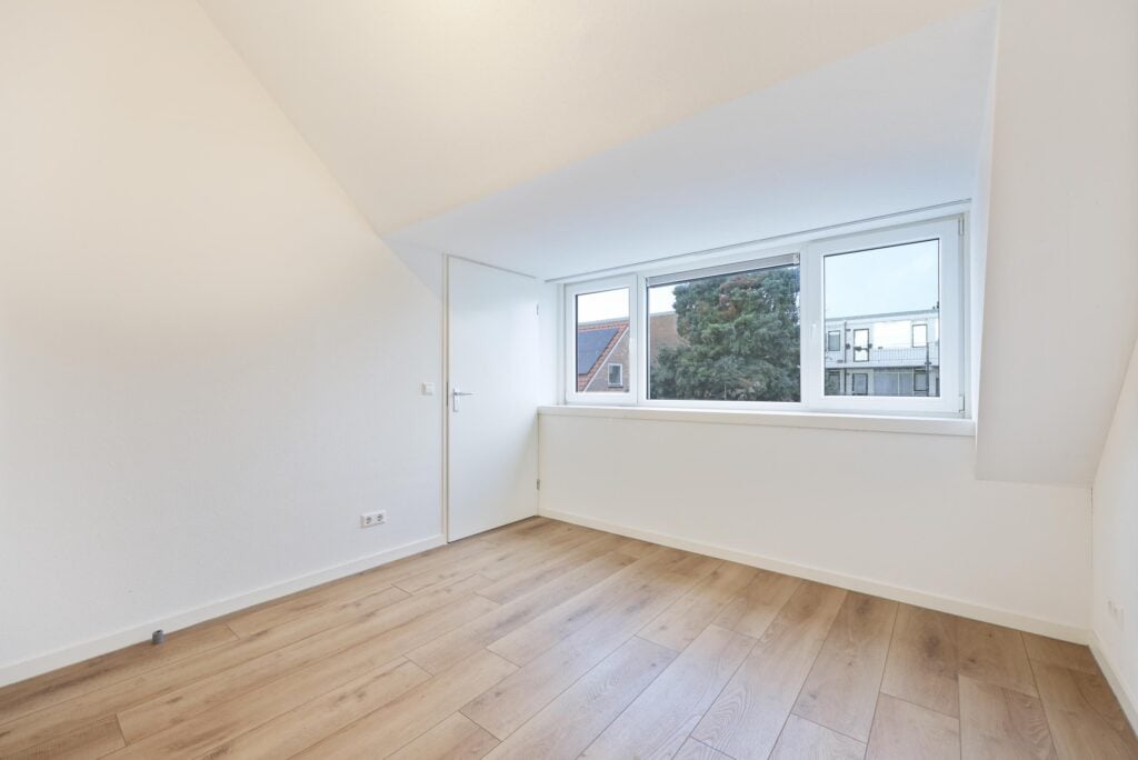 Aangrenzend aan de woonkamer ligt de slaapkamer, een rustige en comfortabele plek om je terug te trekken. De moderne badkamer is en suite en uitgevoerd met een douche, een wastafelmeubel en een toilet. Alles is strak vernieuwd en volledig instapklaar, waardoor je hier zonder klussen direct kunt wonen.