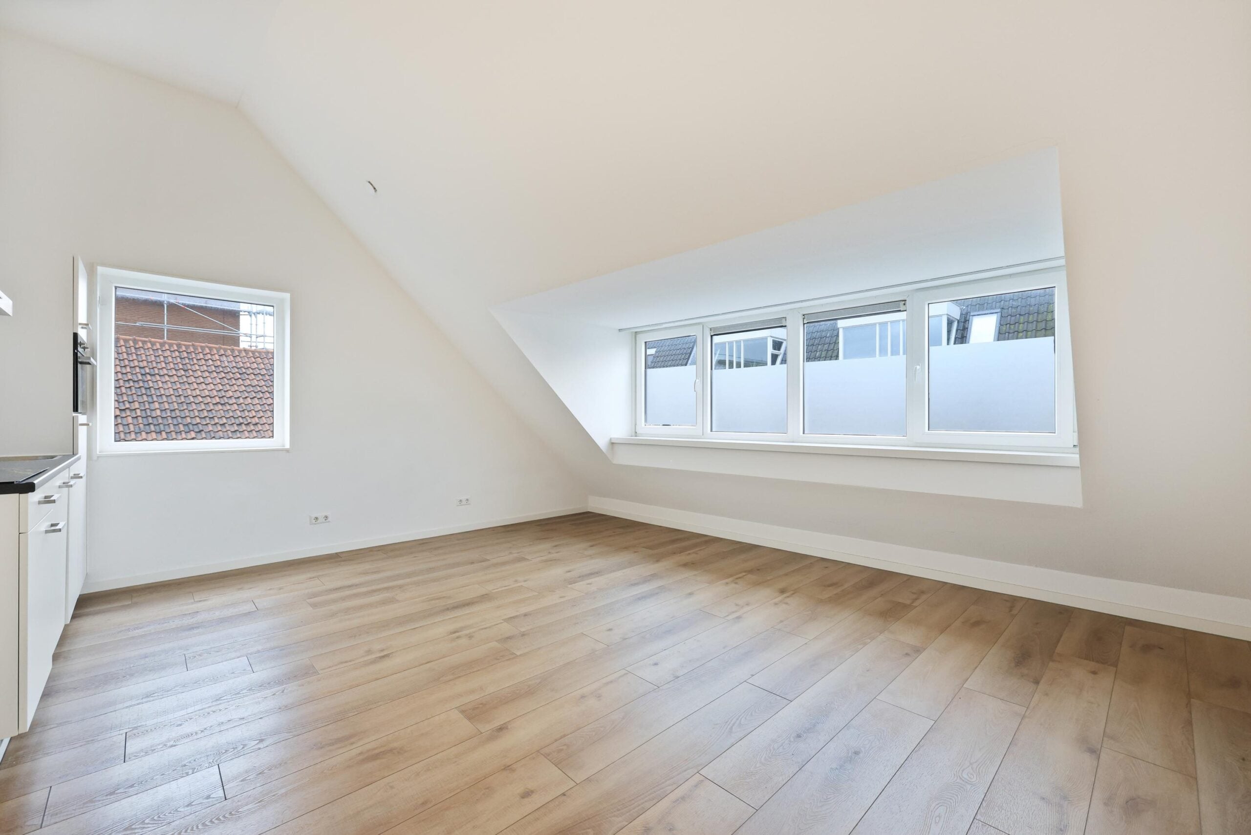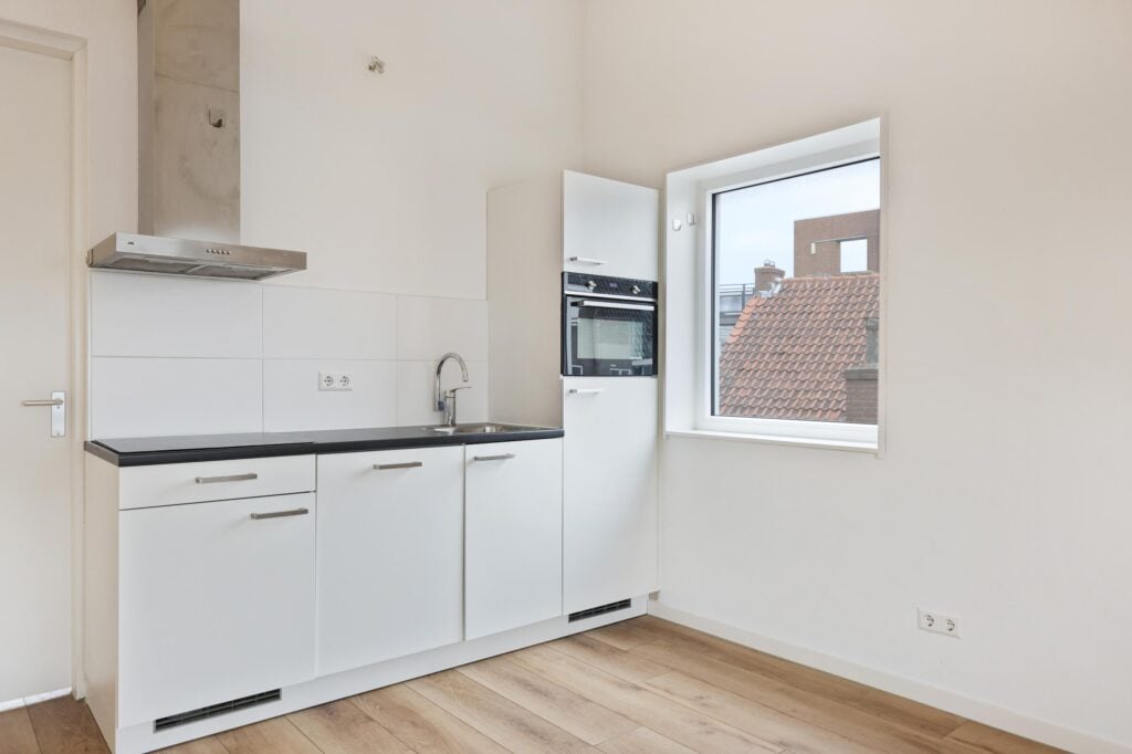 Via de entree stap je de lichte leefruimte binnen, waar het vernieuwde interieur direct opvalt. Moderne materialen, frisse kleuren en een slimme indeling zorgen voor een warme en uitnodigende sfeer. De open keuken vormt het hart van de ruimte: eigentijds, praktisch ingericht en ideaal om te koken of gezellig samen te eten. De grote ramen laten veel daglicht binnen en geven uitzicht op het levendige stadsbeeld van de Breestraat.