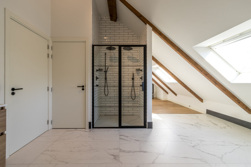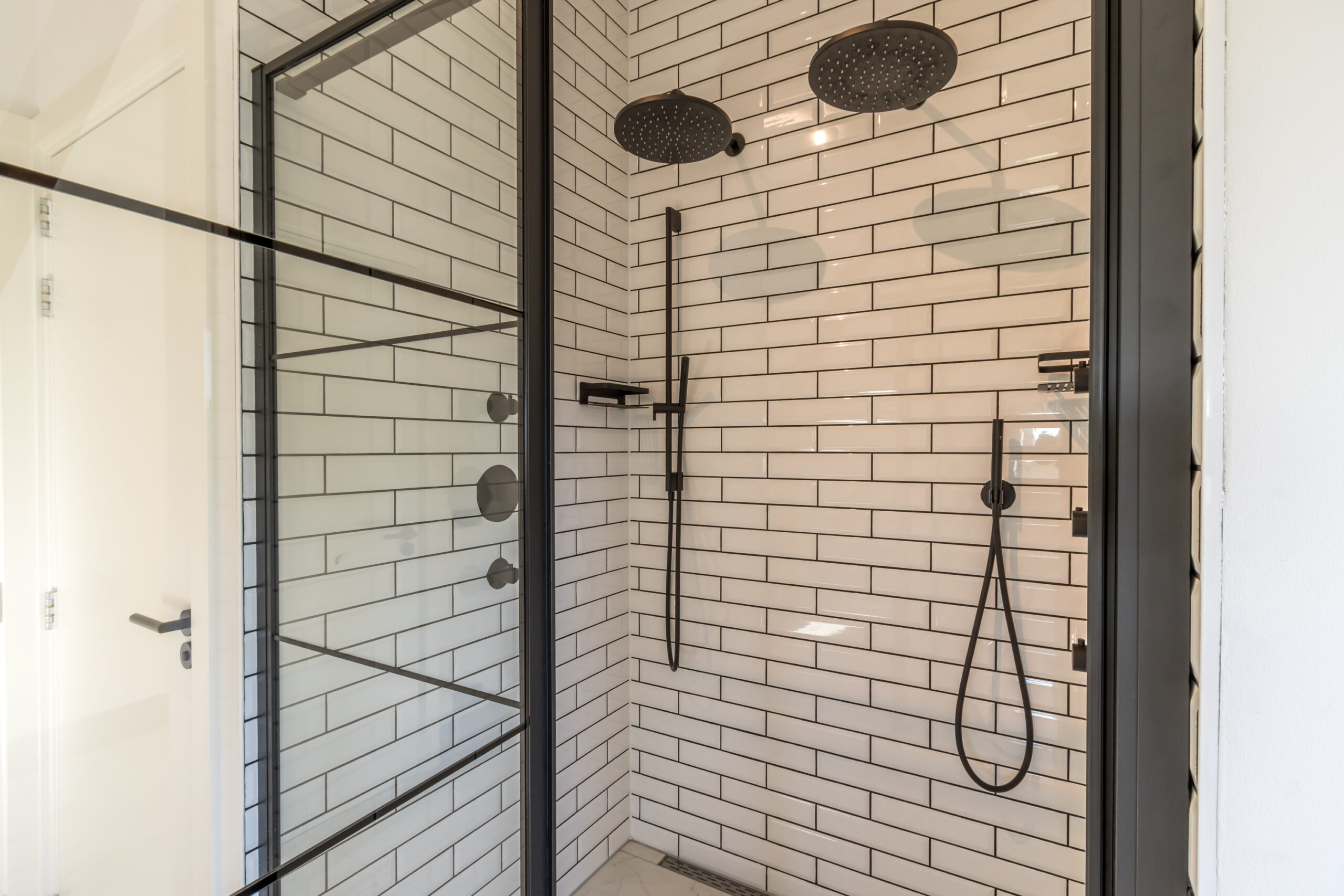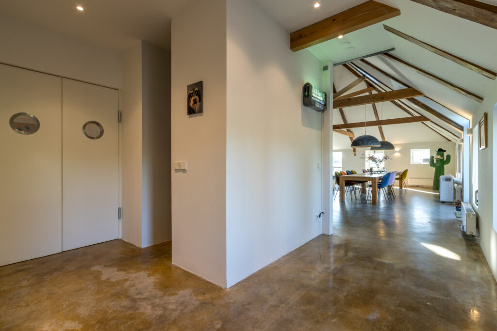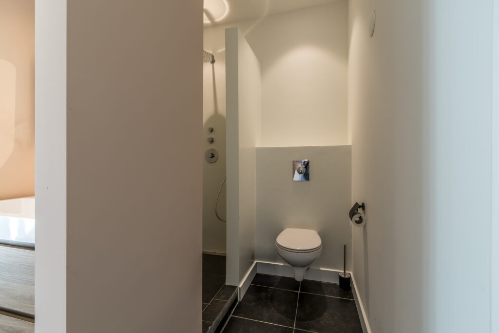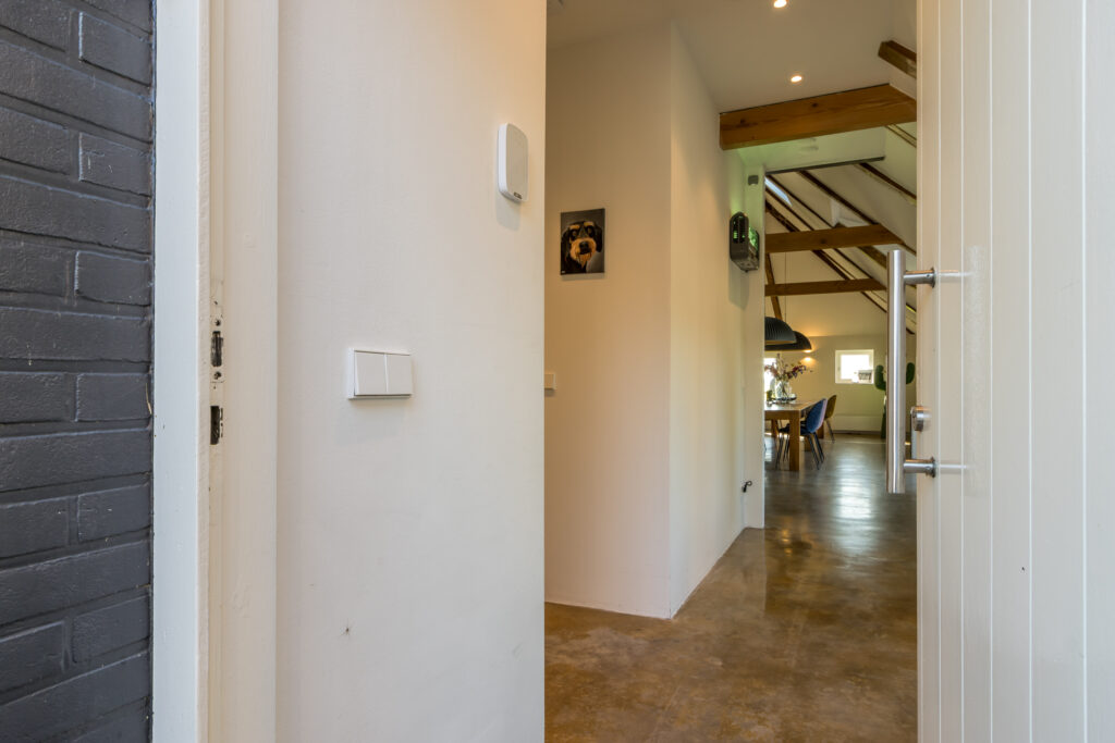 Op dit niveau bevinden zich tevens meerdere comfortabele slaapkamers, waarvan twee met een eigen badkamer, waardoor de woning uitstekend levensloopbestendig is. De badkamers zijn modern en fraai afgewerkt en voorzien van luxe regendouches. Daarnaast zijn er meerdere toiletten en een praktische wasruimte aanwezig. In het hart van de stolp bevindt zich de voormalige stalruimte die tegenwoordig dienstdoet als royale inpandige garage of berging, wat bijdraagt aan het unieke karakter van de woning.