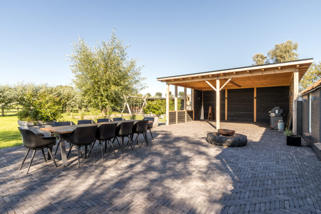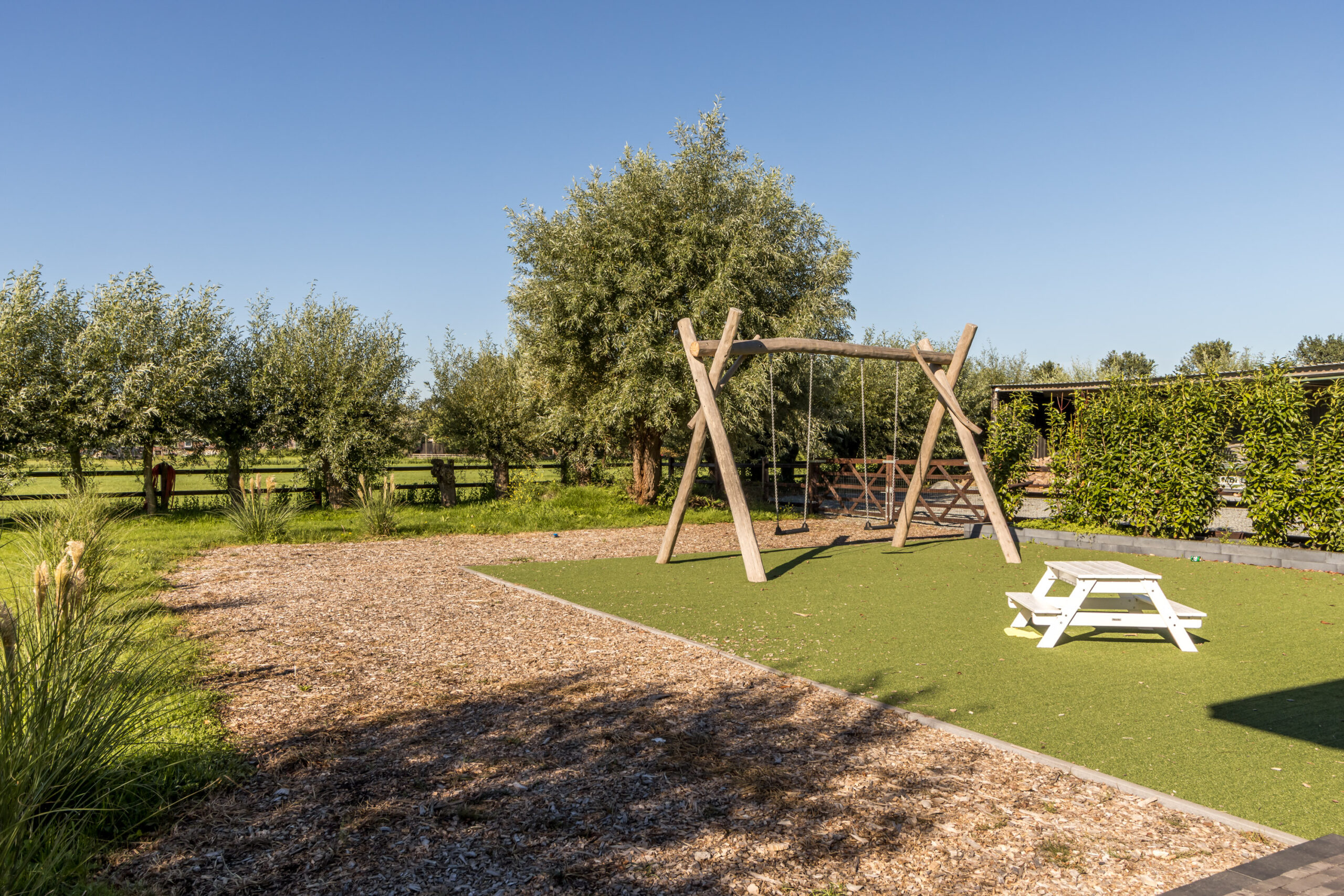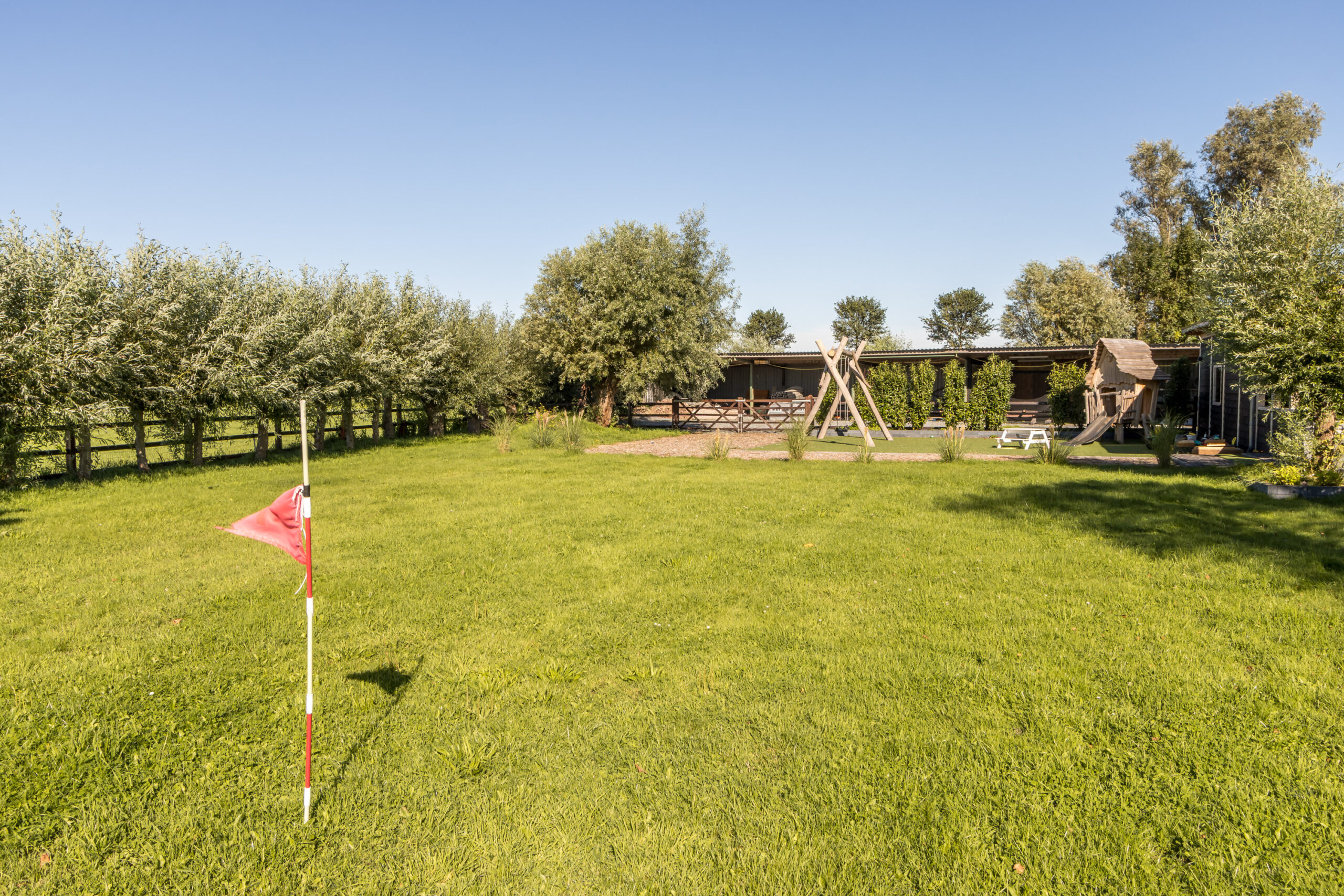 Ook buiten is alles tot in detail verzorgd. Rondom de woning ligt een ruim terras met buitenkeuken waar u in alle rust kunt genieten van de landelijke omgeving. De tuin is groot en groen, waardoor u altijd een zonnige of juist beschutte plek vindt. Het perceel biedt volledige privacy en een schitterend uitzicht over de weilanden en de naastgelegen golfbaan.