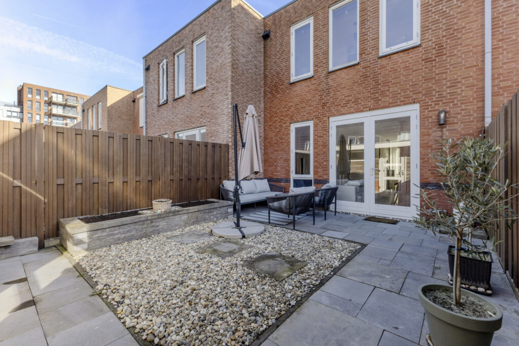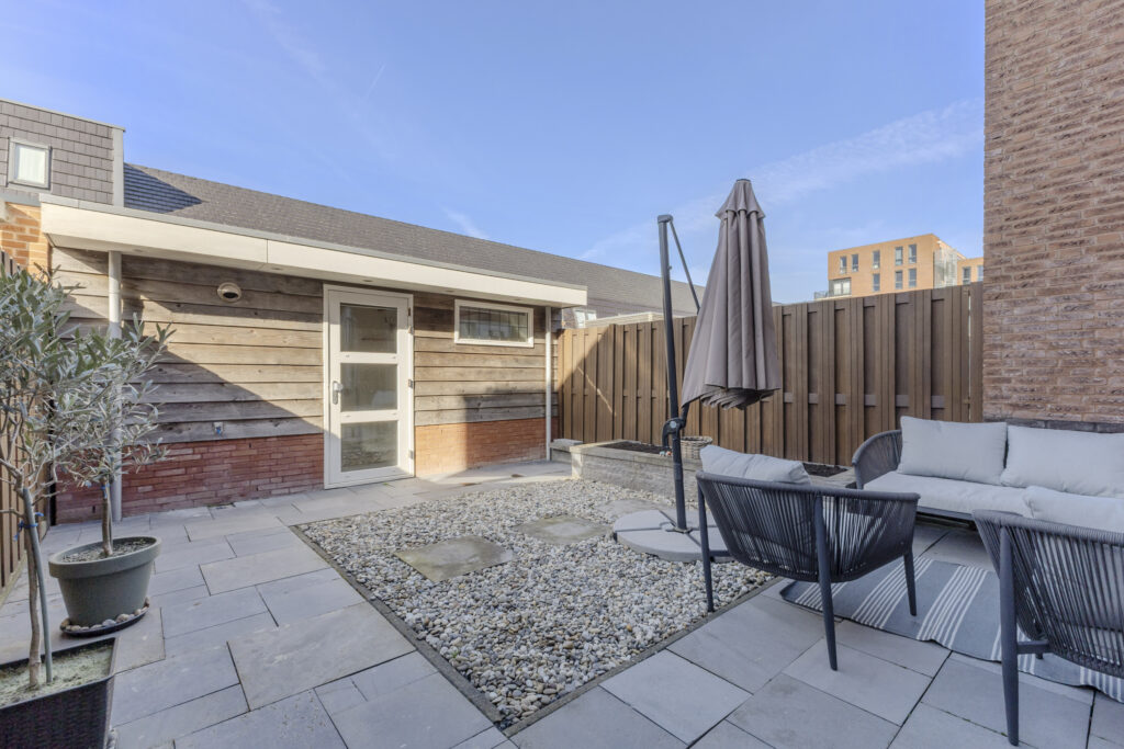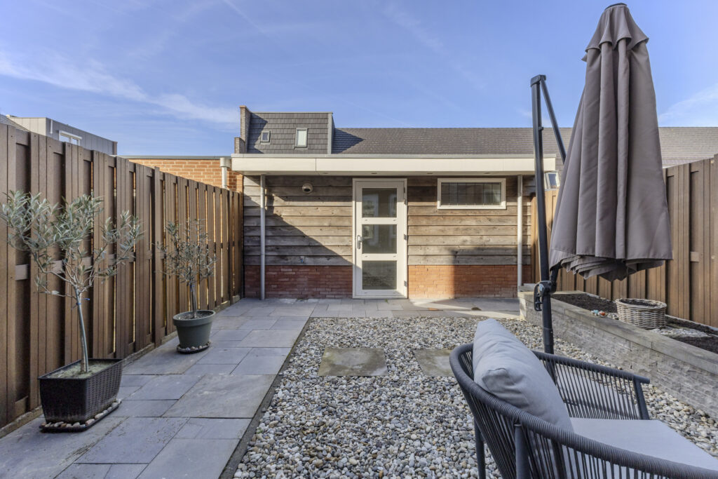 De achtertuin is zeer netjes aangelegd en ligt gunstig op het westen. Hierdoor kun je hier volop genieten van de middag- en avondzon. Er is voldoende ruimte voor een gezellige zithoek, een eettafel of een speelplek. Op zonnige dagen is dit een heerlijke plek om te ontspannen, te borrelen of uitgebreid te dineren met vrienden en familie.