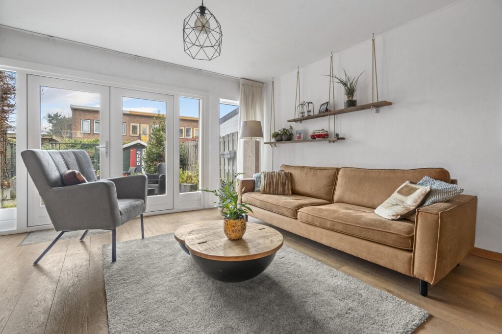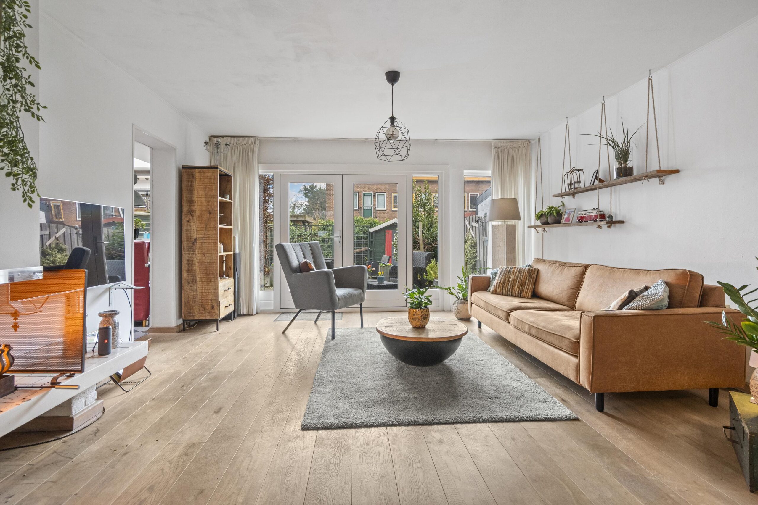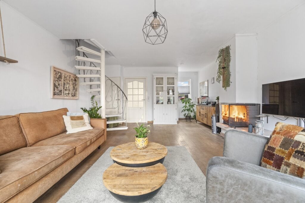Via de voortuin bereik je de entree van de woning. In de hal bevinden het toilet, toegang tot de inpandige berging en de de woonkamer. De woonkamer is tuingericht en heerlijk licht dankzij de brede pui met openslaande deuren (2023) naar de achtertuin. De ruimte is opvallend groot en strekt zich uit over de volledige diepte van de woning. De open haard zorgt voor extra sfeer en maakt het een fijne plek om samen te komen.