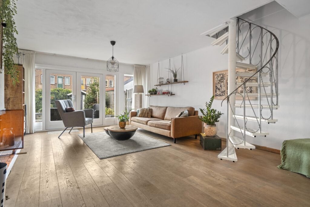 In de woonkamer is de trapopgang centraal gelegen naar de eerste verdieping.