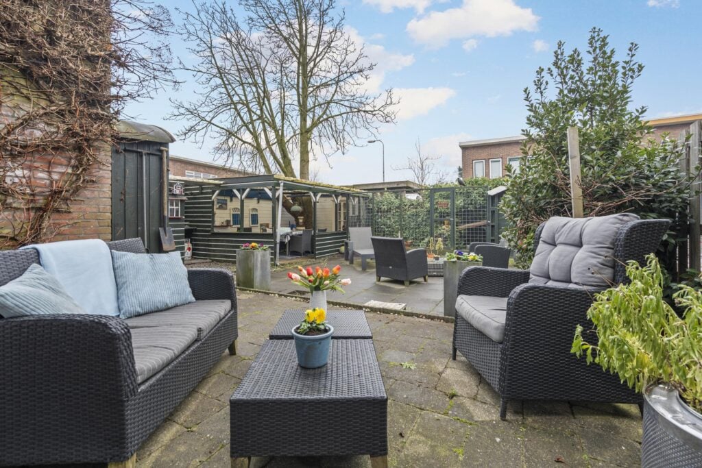 De riante achtertuin is gelegen op het zuidwesten, waardoor je hier in de middag en avond optimaal van de zon geniet. De tuin is ruim opgezet en beschikt over een overkapping en een vrijstaande berging achterin de tuin. Dankzij het royale perceel van 278 m² eigen grond is er rondom de woning veel ruimte.