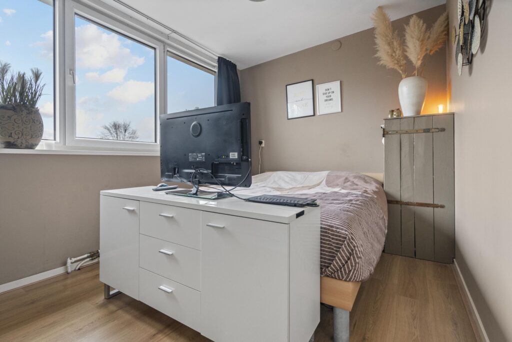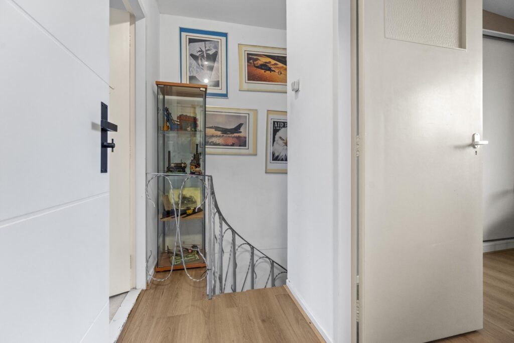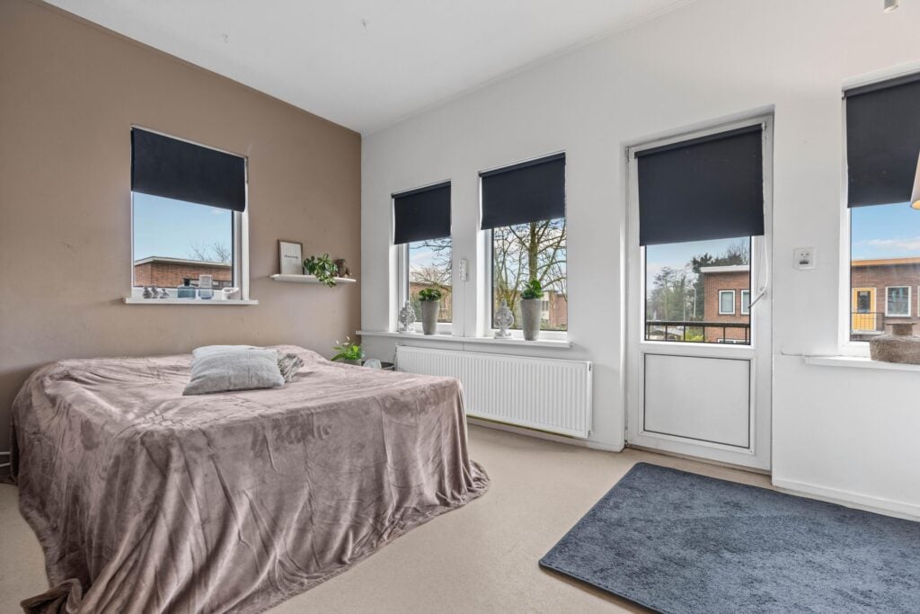De eerste verdieping is ruim en praktisch ingedeeld. Hier bevinden zich twee royale slaapkamers. De slaapkamer aan de achterzijde heeft toegang tot het balkon (voorheen 2 slaapkamers). De tweede slaapkamer is eveneens goed van formaat en beschikt over vaste kastruimte.