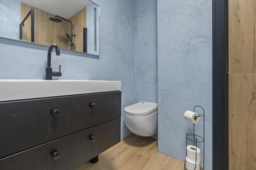 Centraal op de verdieping ligt de badkamer, die in 2021 volledig is vernieuwd. De badkamer is modern uitgevoerd en voorzien van een douche, wasmeubel en toilet.