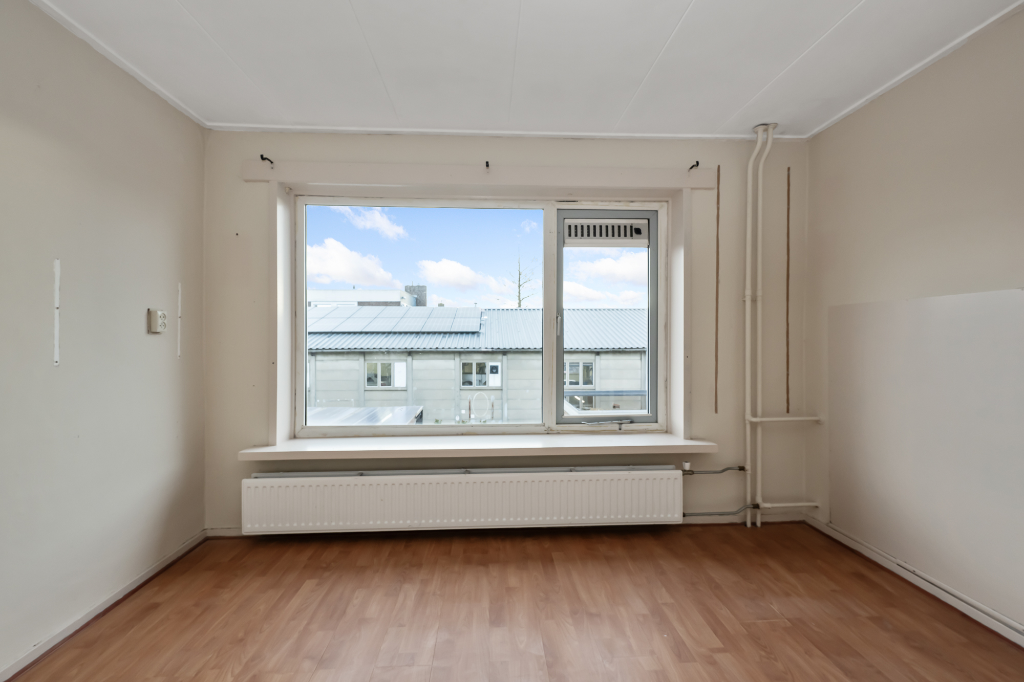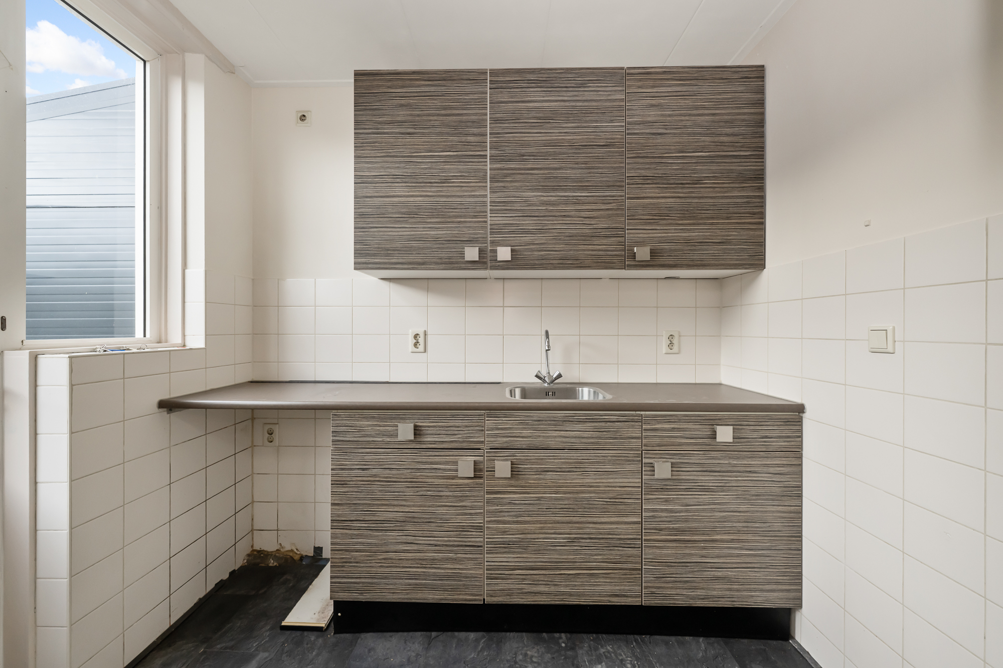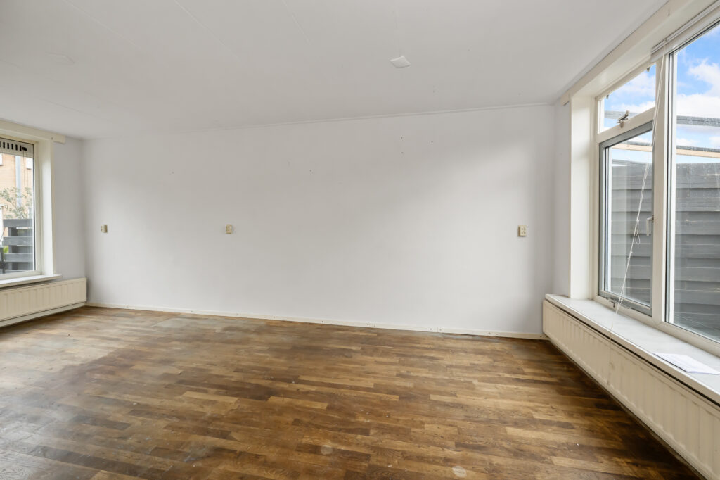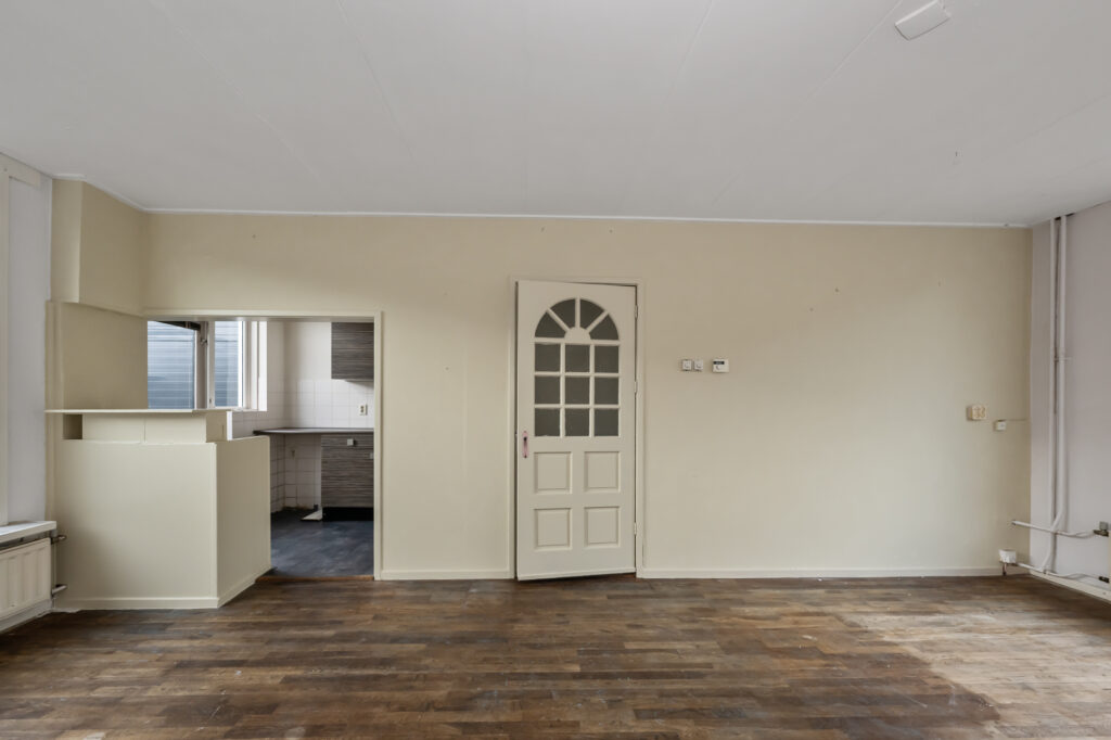 Bij binnenkomst valt direct de prettige lichtinval op die kenmerkend is voor de doorzonwoonkamer. De ruimte voelt open en uitnodigend aan en biedt voldoende plek voor een comfortabele zithoek en een gezellige eethoek. De open keuken sluit hier mooi op aan en vormt een praktische basis die naar wens gemoderniseerd kan worden. De indeling van de begane grond biedt daarnaast kansen om de leefruimte verder te optimaliseren, bijvoorbeeld door het creëren van een moderne woonkeuken of het vergroten van de openheid.