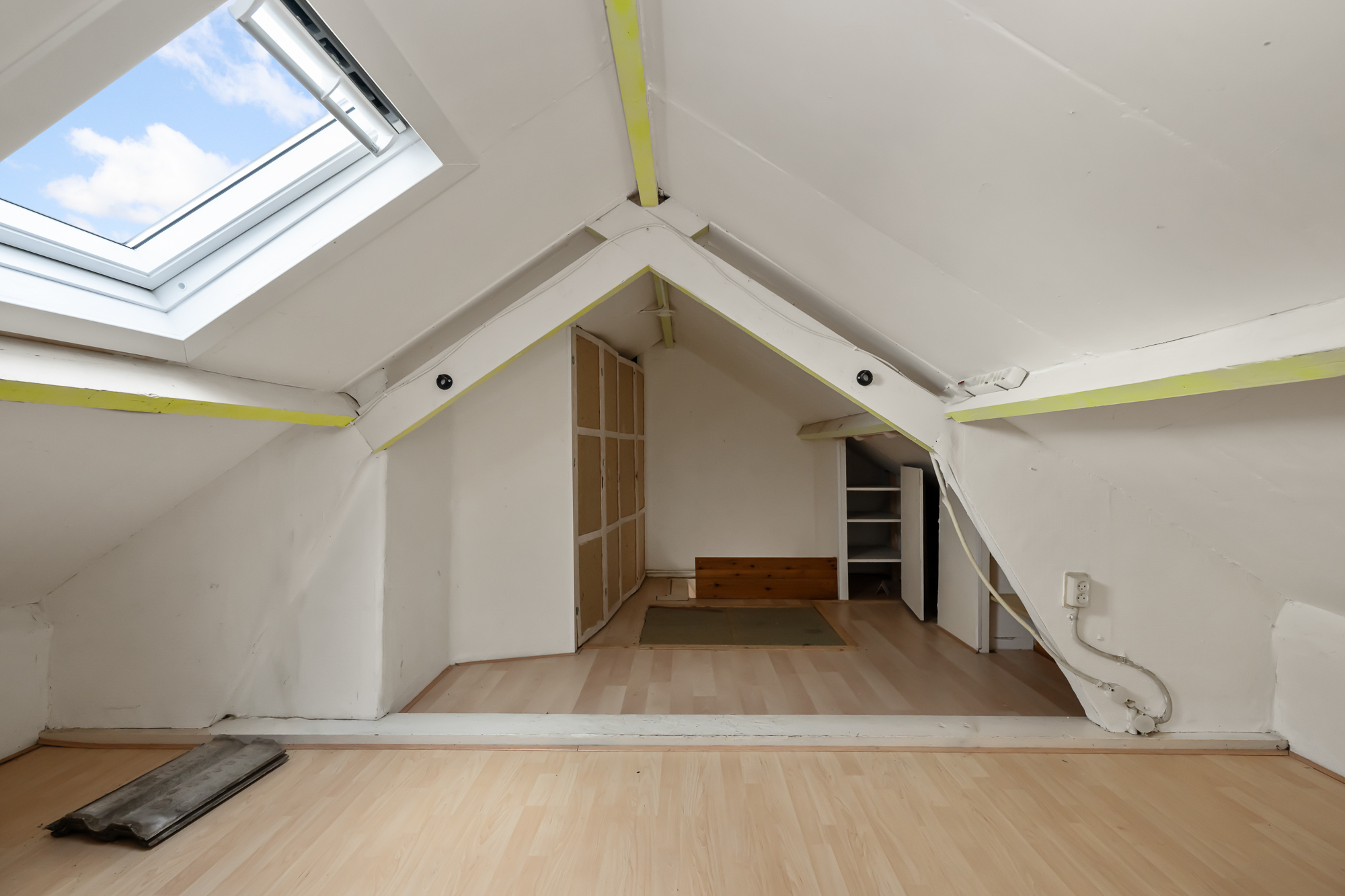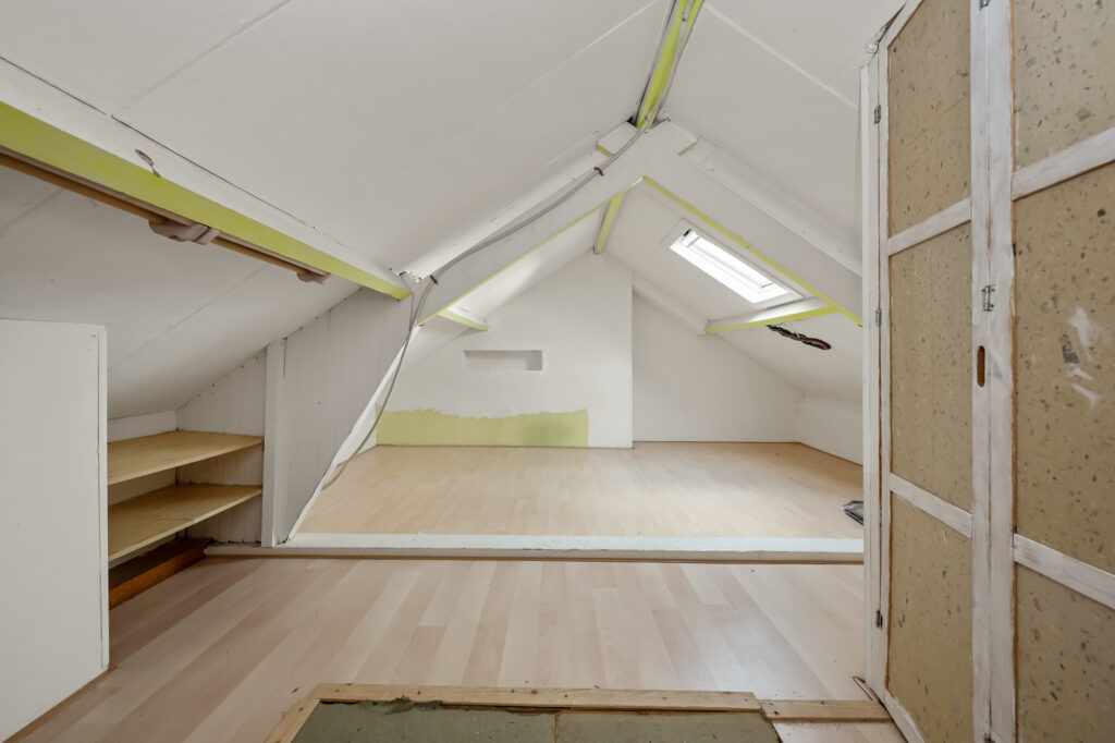 Op de verdieping bevinden zich drie slaapkamers, waarvan de twee grootste kamers ruim genoeg zijn voor een volwaardige slaapkamerinrichting. Deze kamers bieden daarnaast mogelijkheden voor bijvoorbeeld een werkplek of inbouwkasten. De indeling is praktisch en biedt flexibiliteit voor verschillende woonwensen, zoals een gezinssituatie of thuiswerken. Via een vaste trap bereik je de zolderverdieping, een verrassend ruime extra verdieping die zich uitstekend leent als thuiswerkplek, opbergzolder of waskamer.