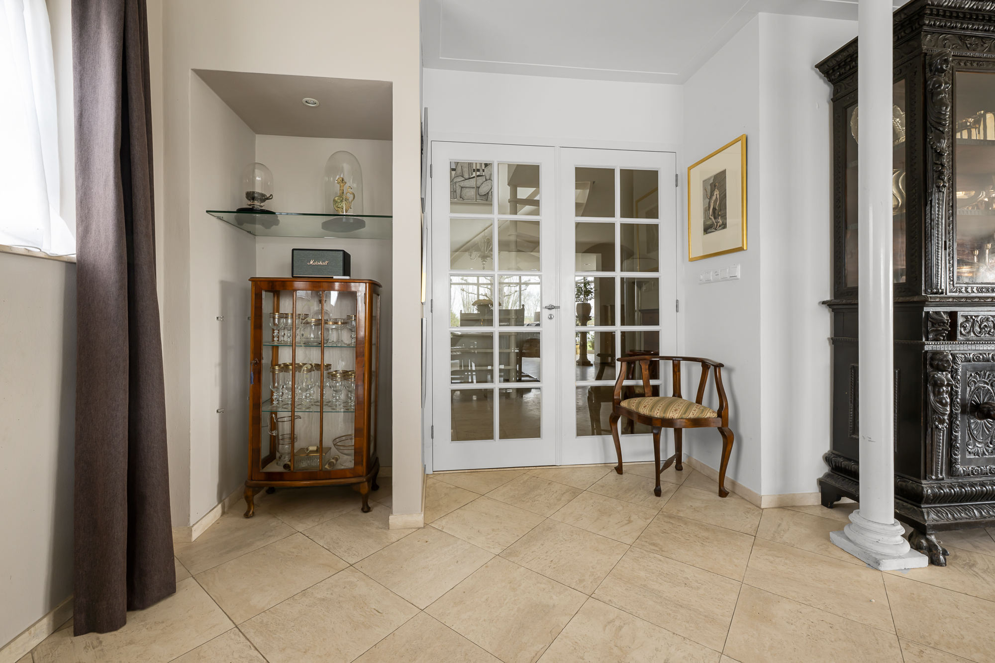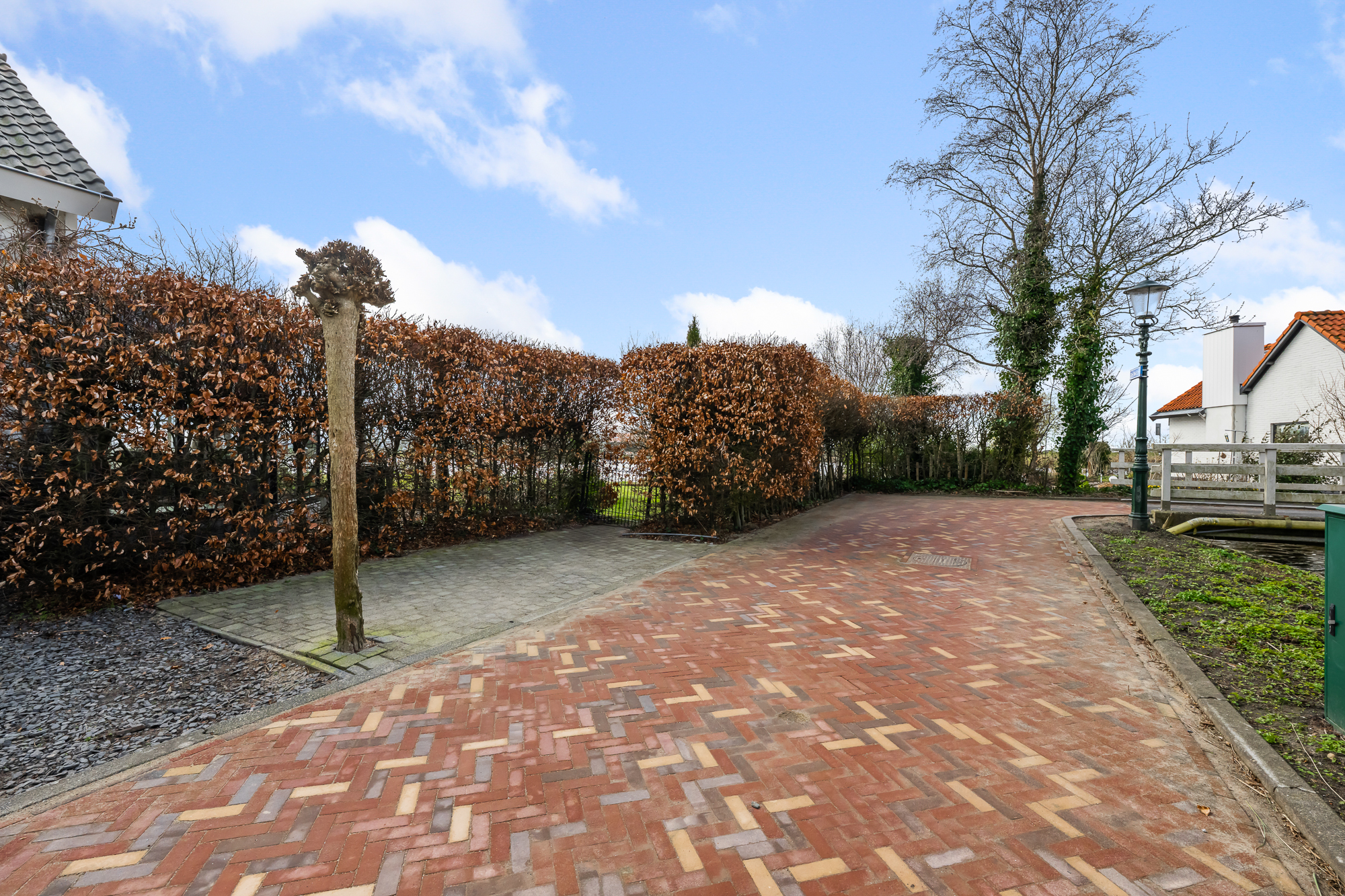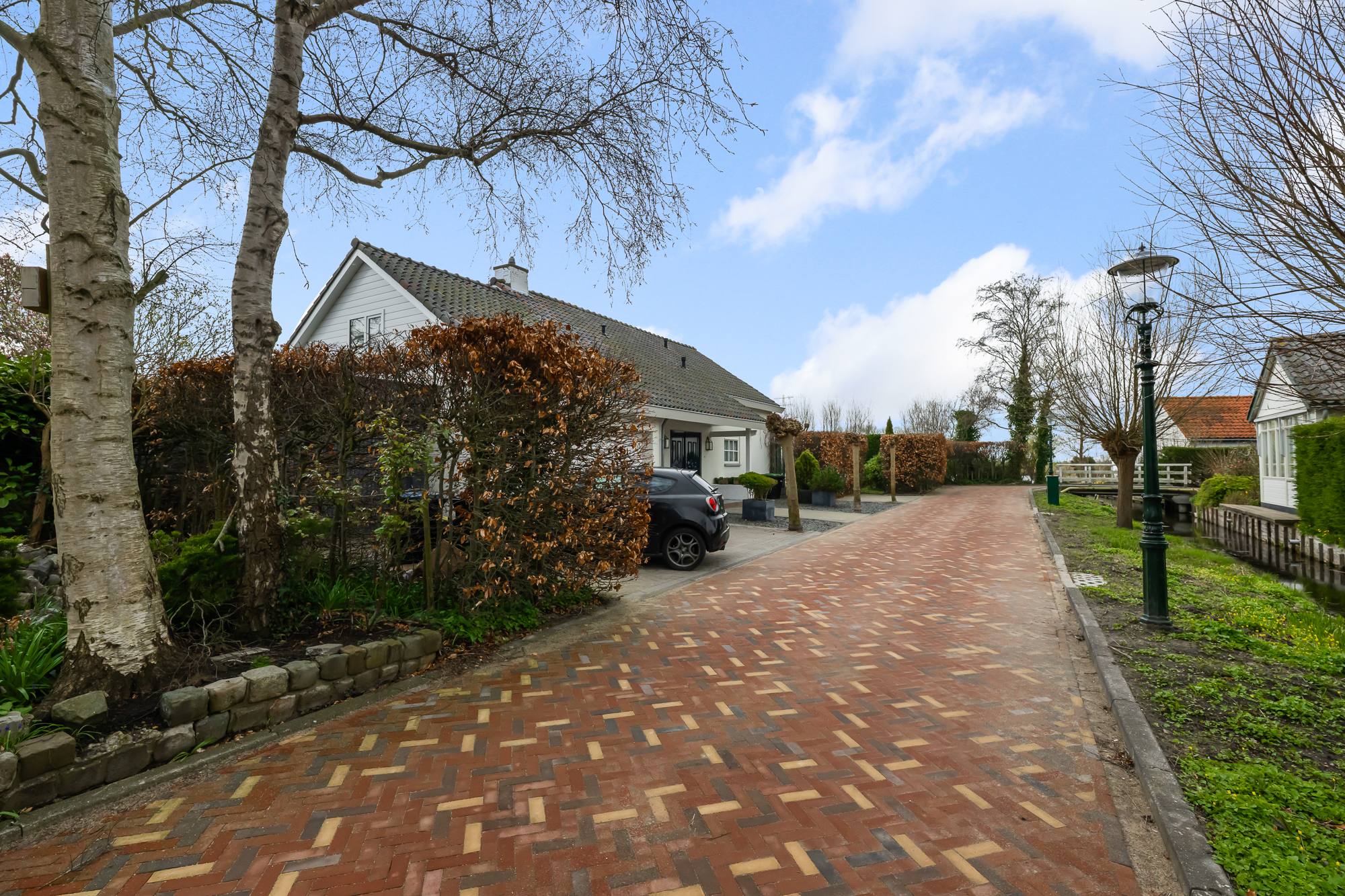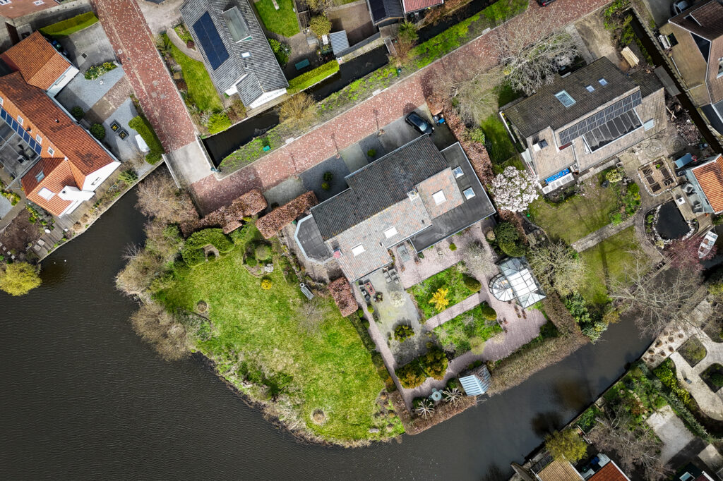 Zodra je aankomt, merk je direct de ruimte. De brede oprit biedt plek voor meerdere auto’s en geeft toegang tot de diverse garages. Ideaal als je hobby’s hebt, extra opslag zoekt of gewoon graag de ruimte hebt. De groene omgeving en de ligging aan het water maken het plaatje compleet.