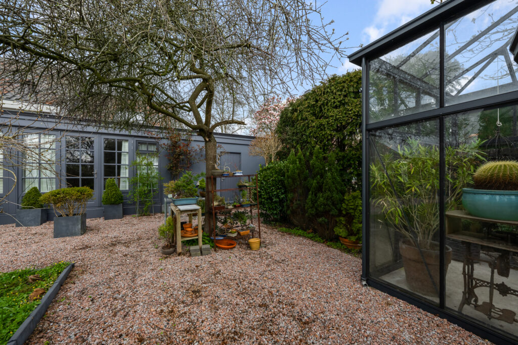 Buiten vind je een riante tuin van circa 1.108 m². Hier geniet je van volop groen, rust en privacy. Voor de liefhebber is er een kas aanwezig en er zijn volop mogelijkheden om de tuin naar eigen wens in te richten. Of je nu wilt tuinieren, ontspannen of lange zomeravonden buiten wilt doorbrengen, het hier kan het allemaal. En steeds weer is daar dat uitzicht over het water, dat deze plek zo bijzonder maakt.