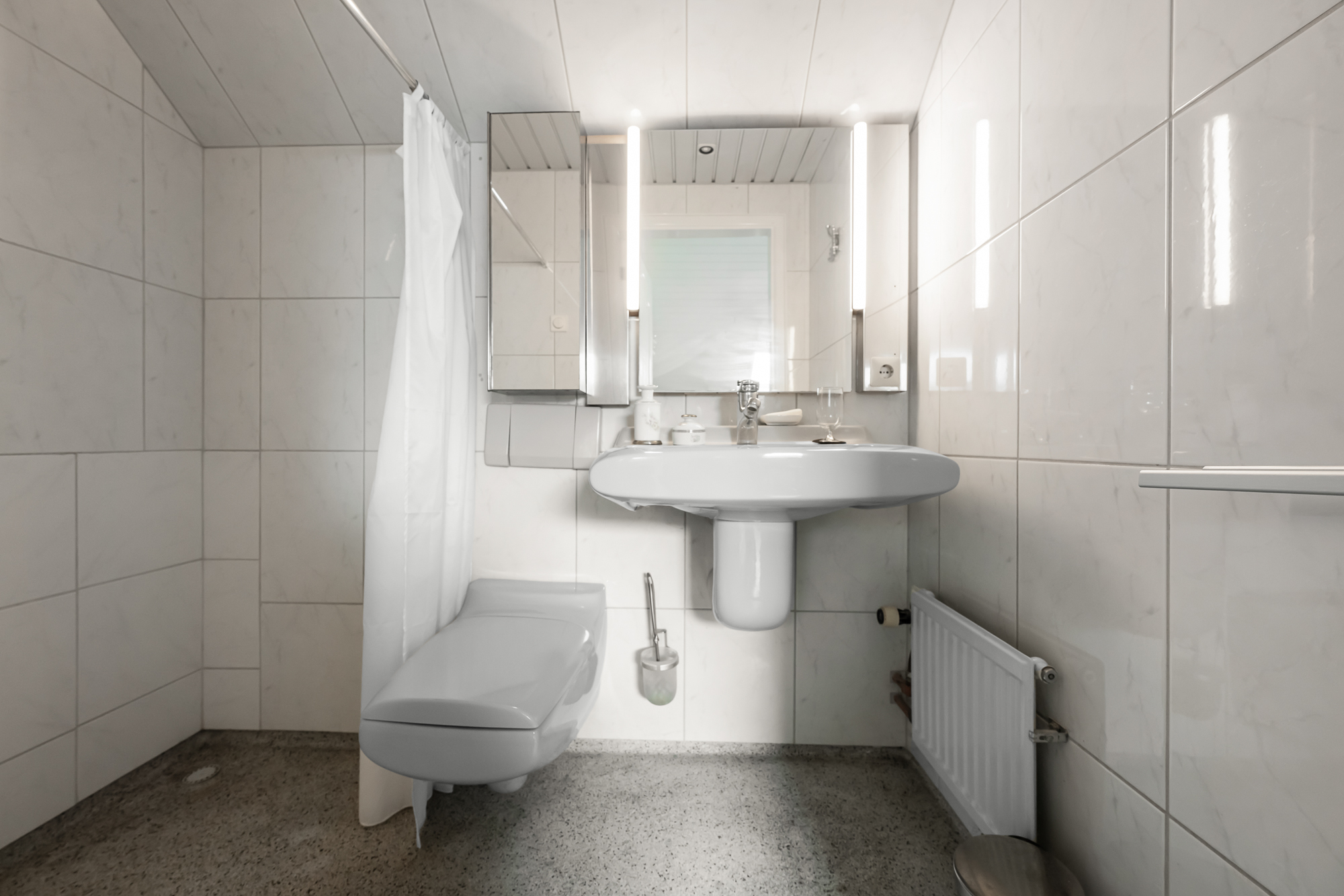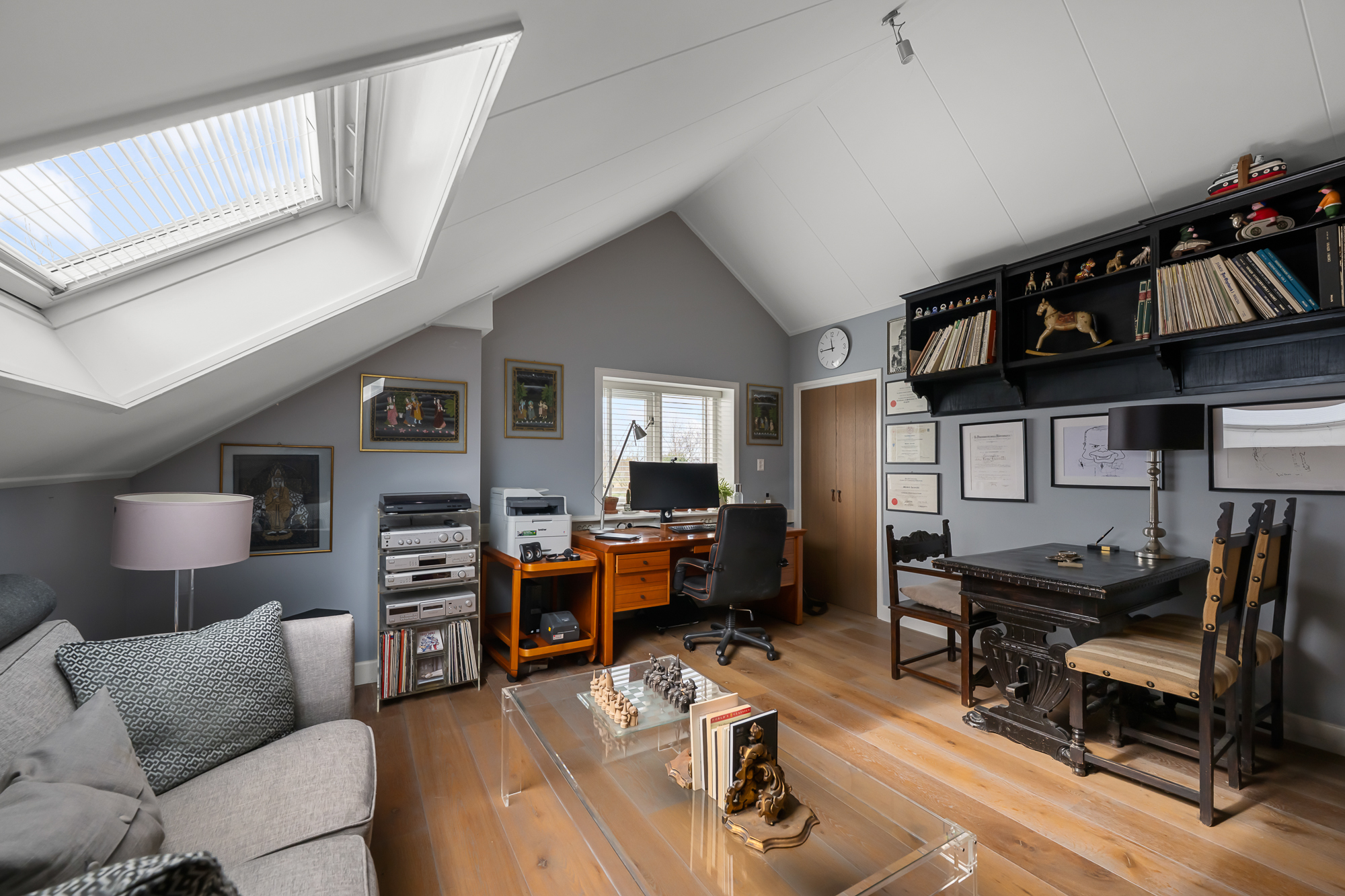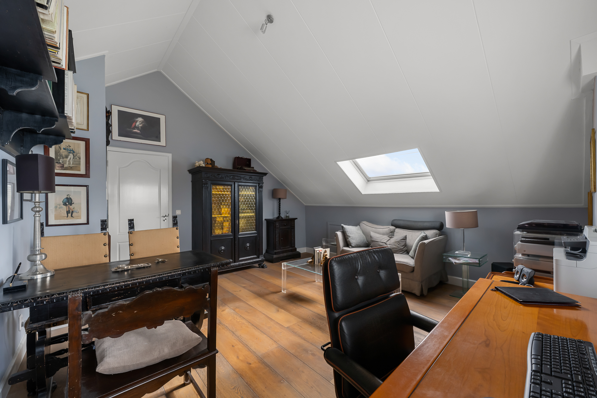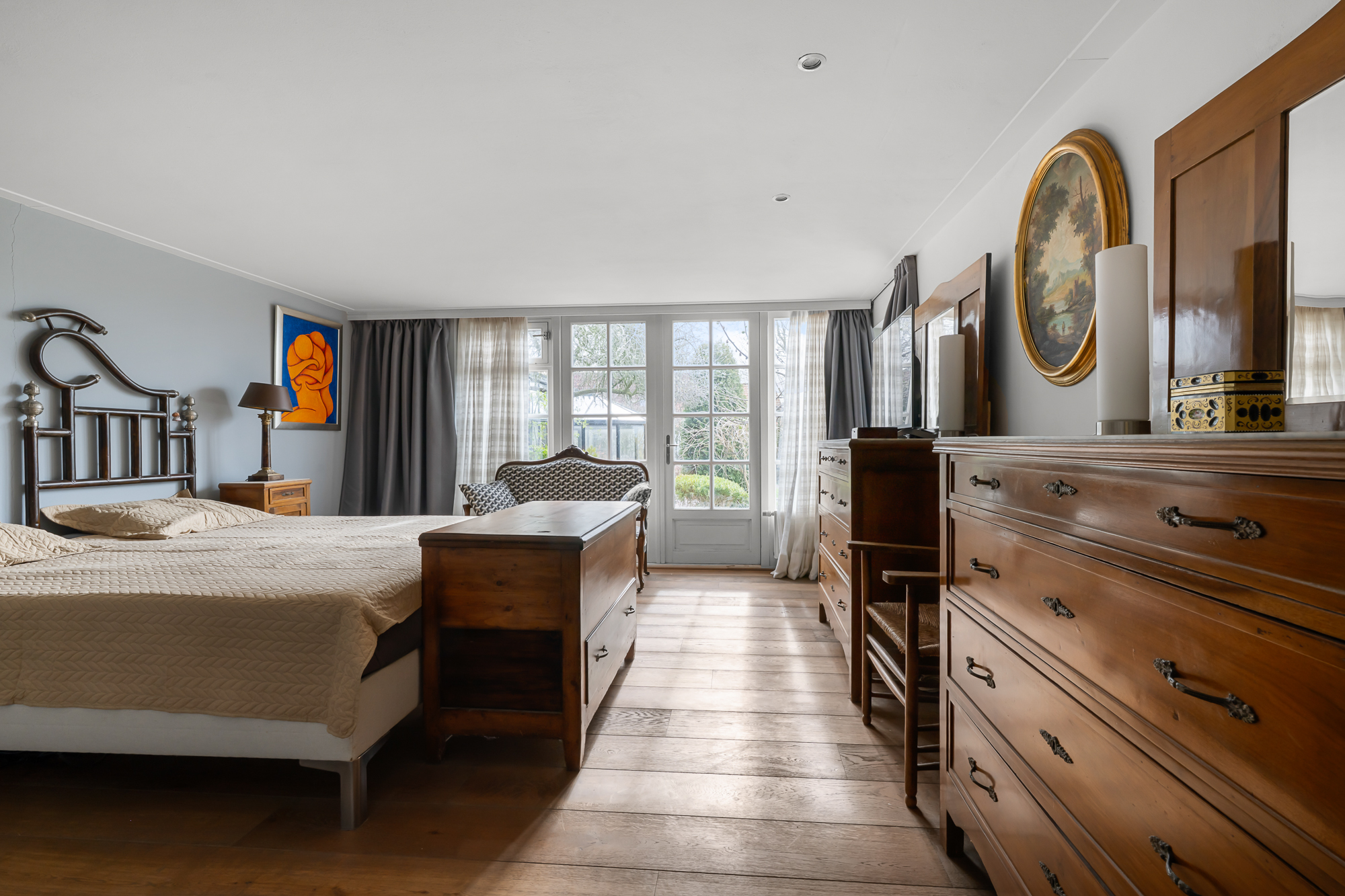 Op de begane grond vind je daarnaast een slaapkamer en een complete badkamer met inloopdouche, ligbad en dubbele wastafel. Dit maakt de woning uitermate geschikt als levensloopbestendige woning. Tegelijkertijd is deze ruimte ook perfect te gebruiken als gastenverblijf of bijvoorbeeld een kantoor aan huis.