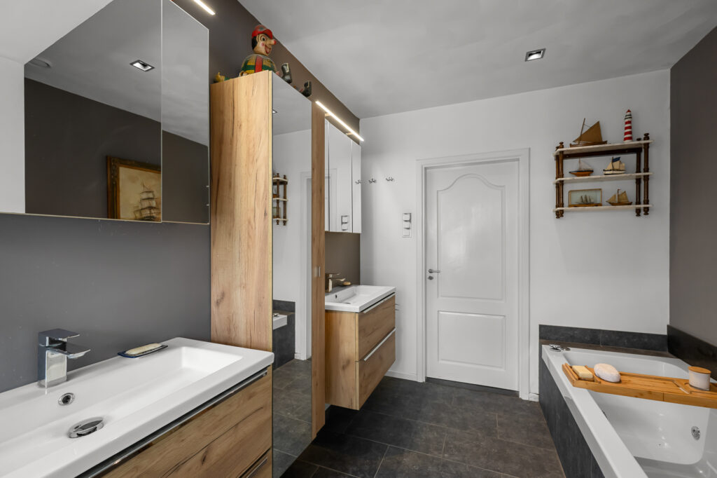 – Twee volwaardige badkamers, verdeeld over begane grond en verdieping;