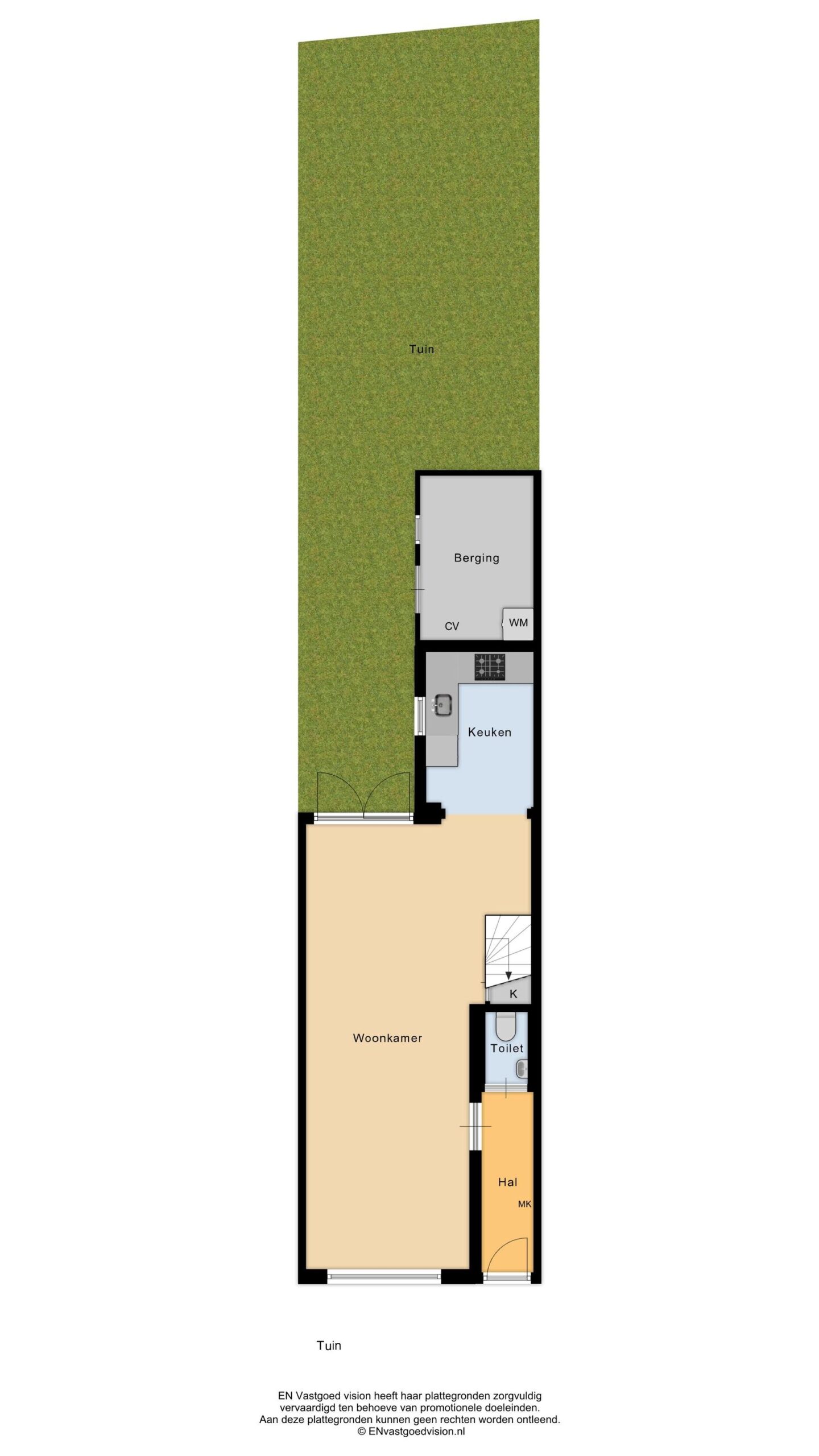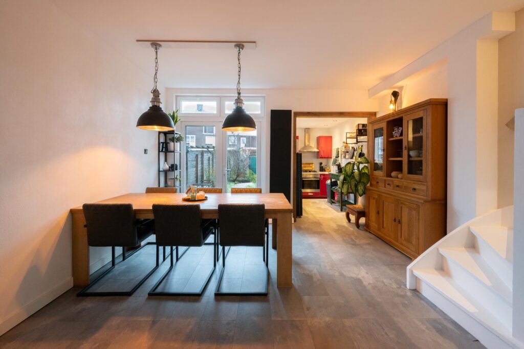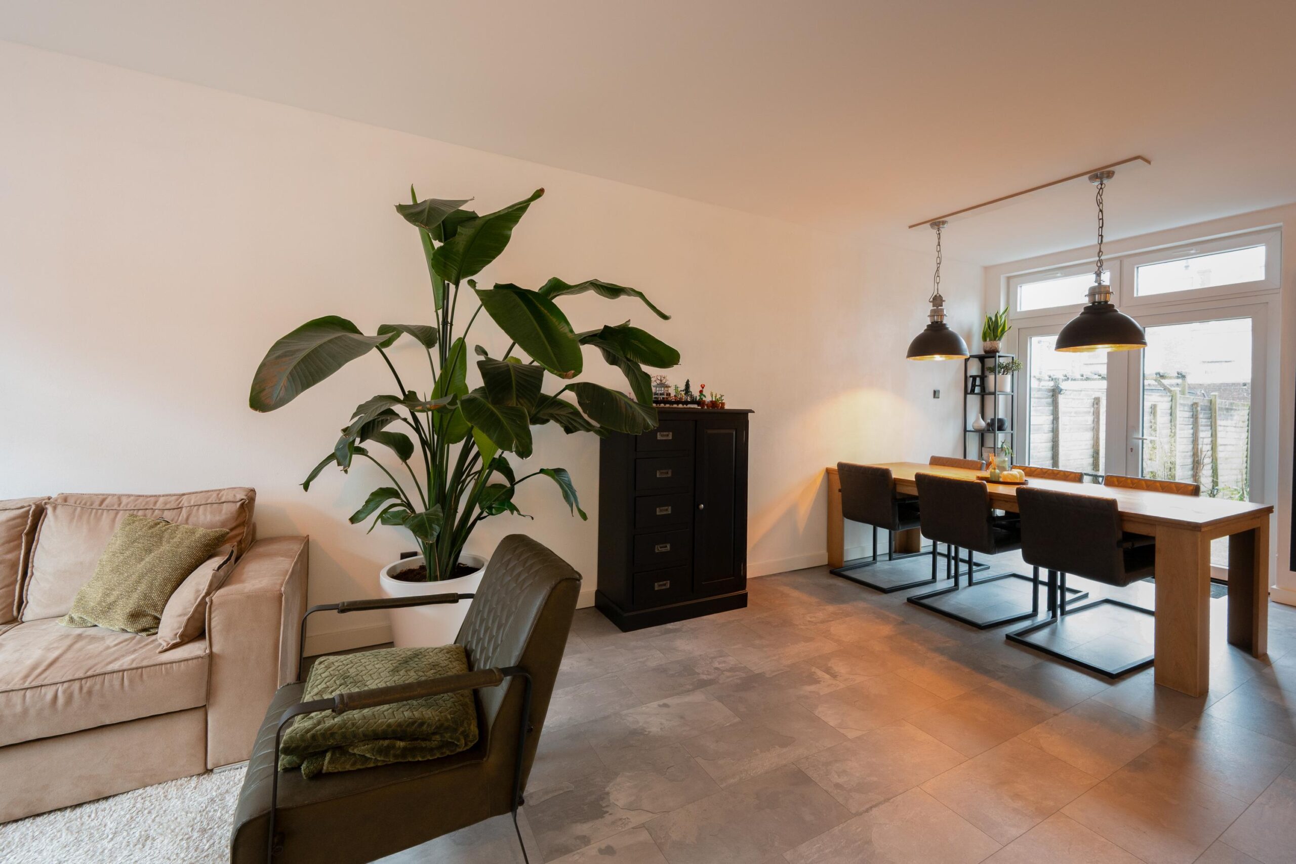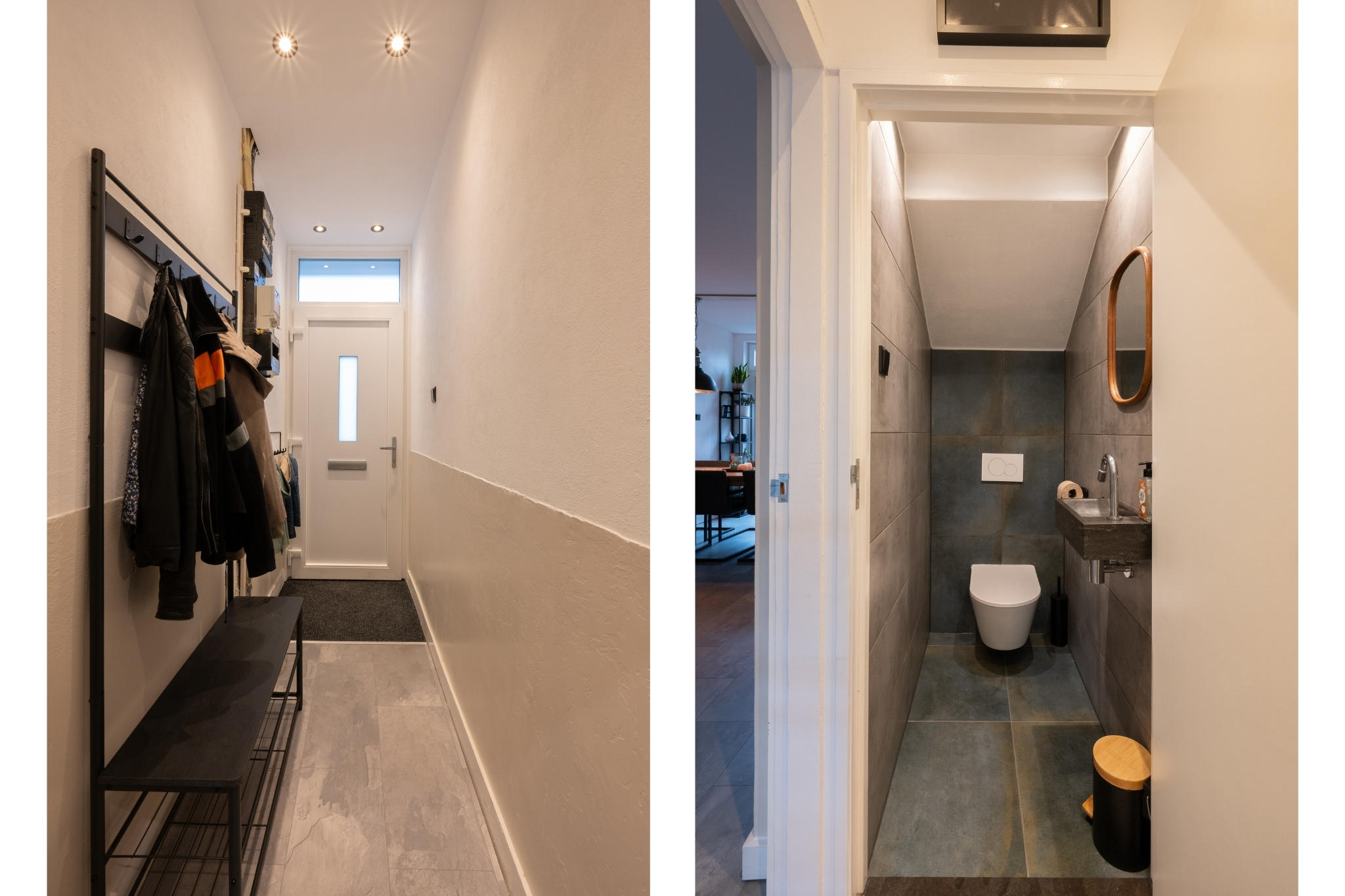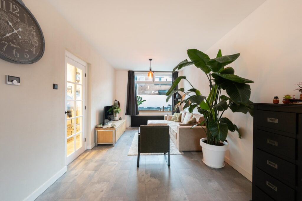 Bij binnenkomst kom je in de hal met een apart toilet. Stap vervolgens binnen in de lichte, warme woonkamer die direct uitnodigt tot ontspanning. De strak gestuukte plafonds en de halfopen keuken creëren een moderne en ruimtelijke sfeer. Openslaande deuren leiden naar de zonnige, diepe tuin op het zuiden, dé plek om te genieten van het buitenleven.