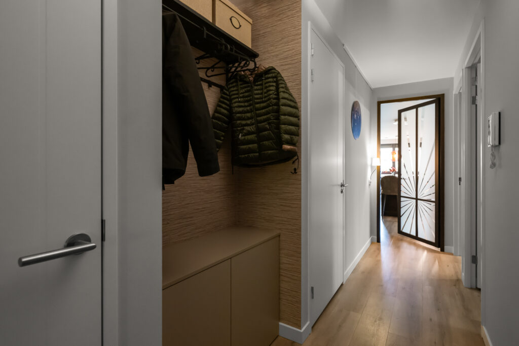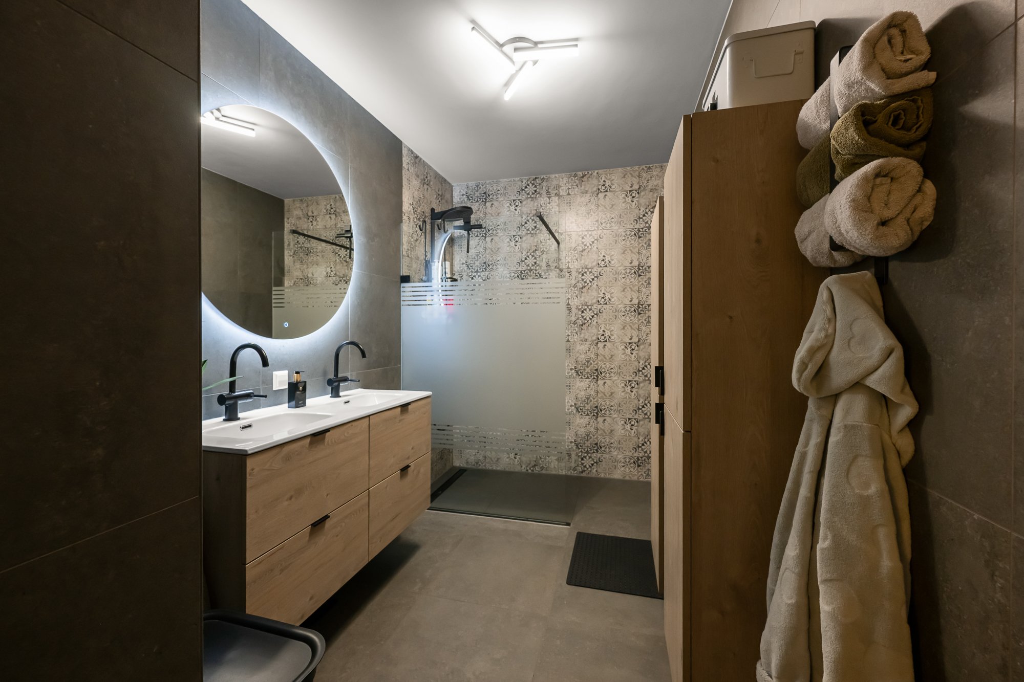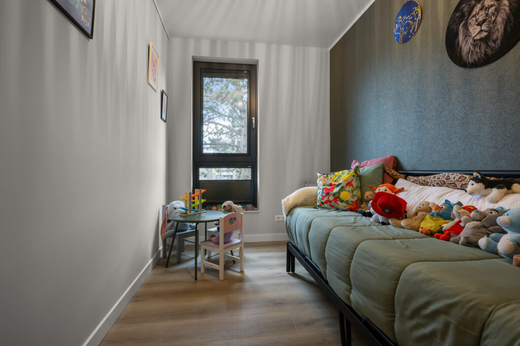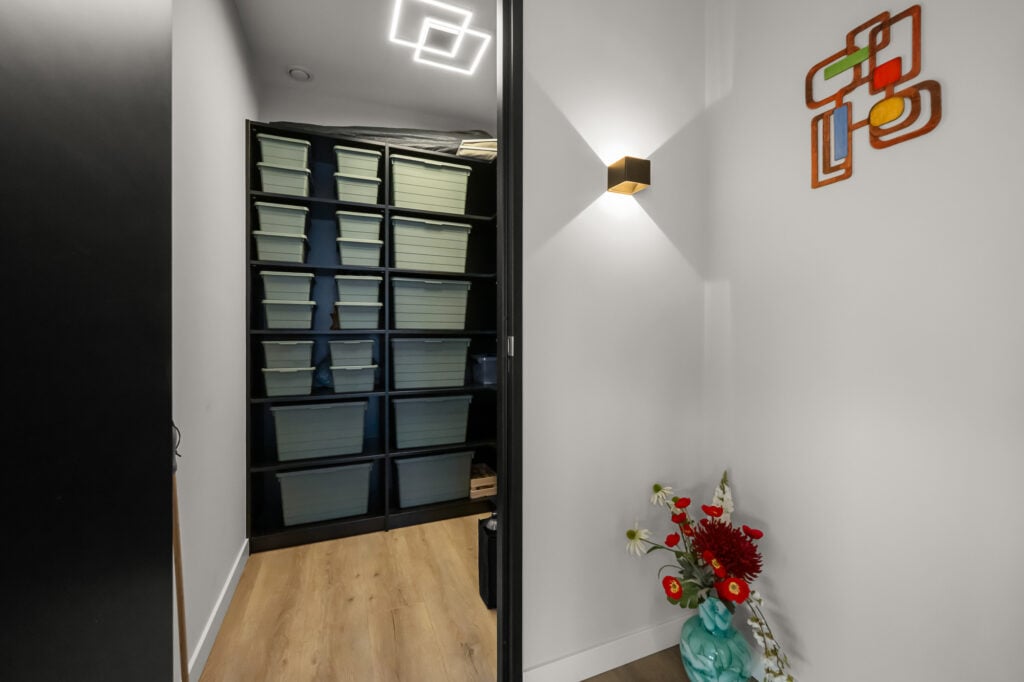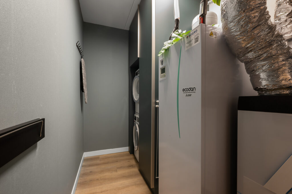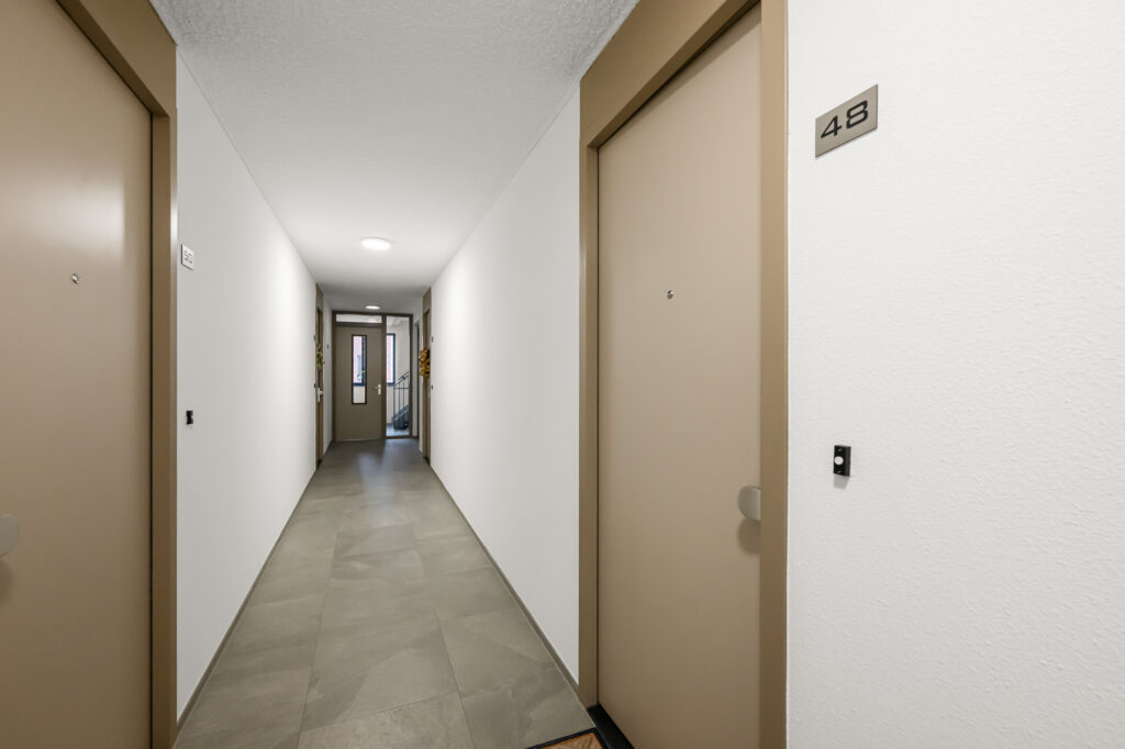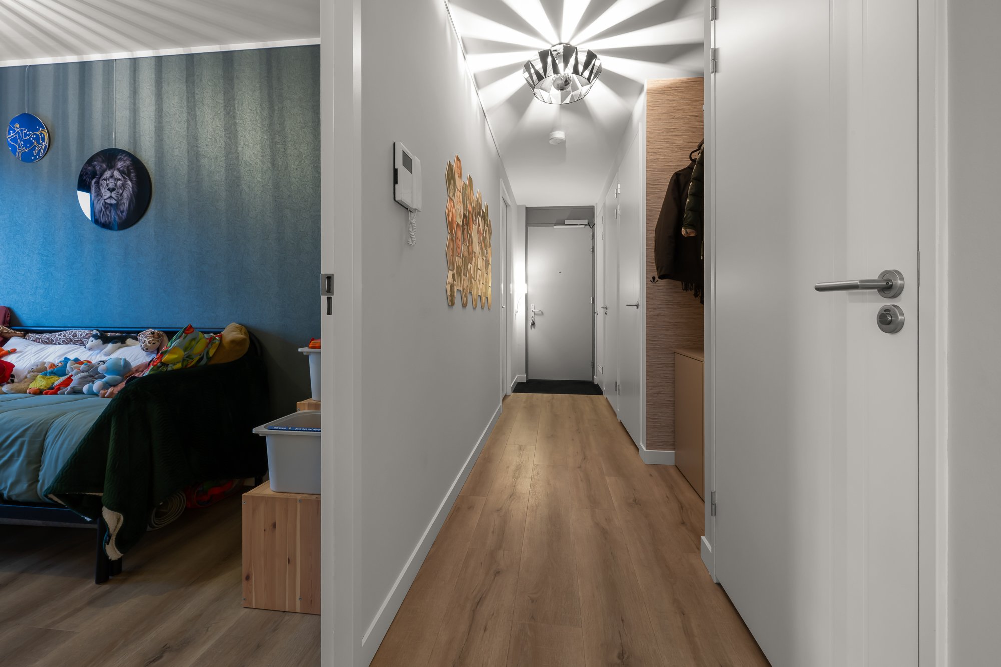 Vanaf de begane grond is de tweede verdieping te bereiken via zowel de lift als het trappenhuis. Aan het einde van de verzorgde gang tref je het appartement met huisnummer 48. Eenmaal binnen zal je verrast worden door de fraaie en luxe afwerking. De lange gang geeft toegang tot alle vertrekken en is lekkere breed waardoor er ook nog ruimte is voor een garderobe. Aan de rechterzijde van de hal tref je drie goed bemeten slaapkamers, allen voorzien van zonnescreens. Aan de linkerzijde van de hal zijn de ‘natte ruimtes’ gesitueerd, met een speciale benoeming voor de zeer luxe badkamer met inloopdouche en dubbele wastafel. Zelfs de technische ruimte is door de huidige bewoners afgewerkt en biedt ruimte aan de warmtepomp, wtw-unit en wasmachine aansluiting.