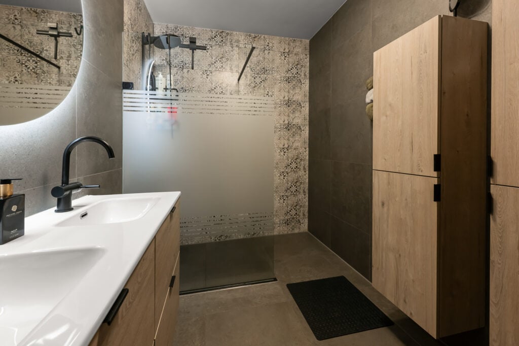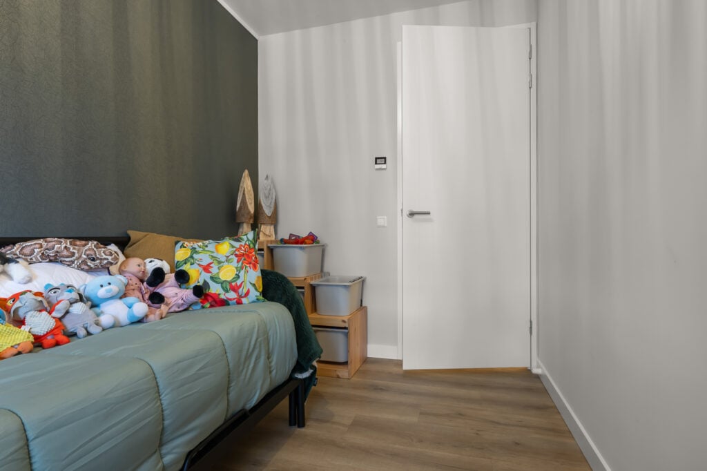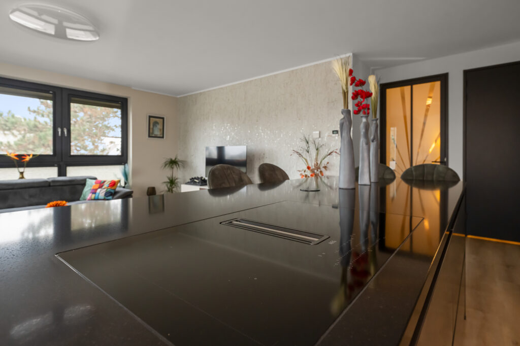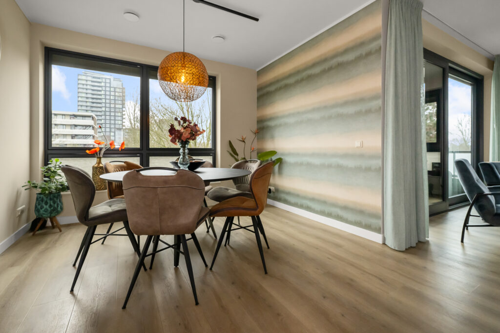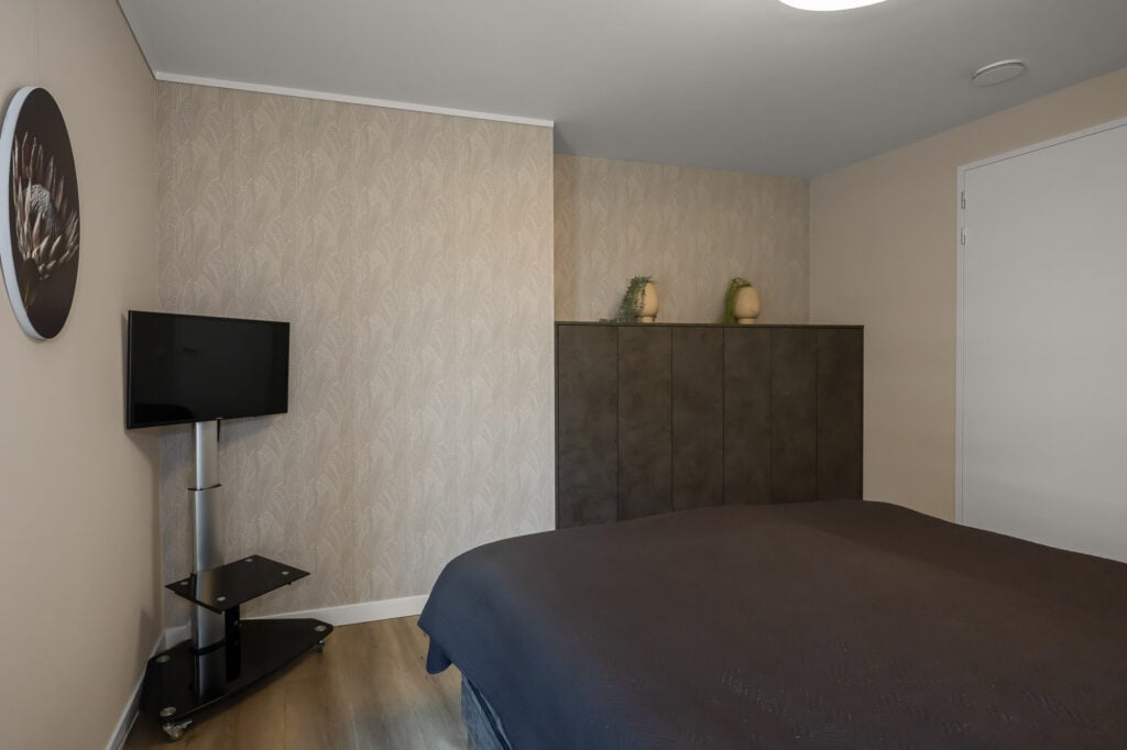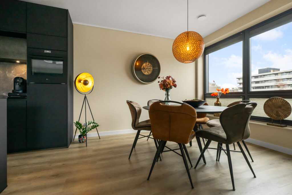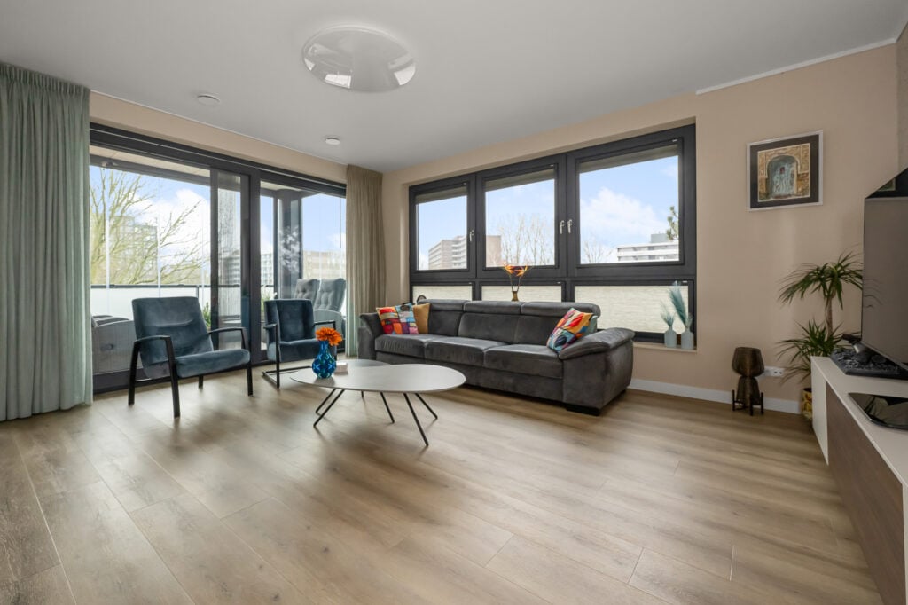 Mocht je nog niet enthousiast zijn geworden, dan hebben we het beste voor het laatste bewaard. De woonkamer met open keuken en balkon zijn een echte eyecatcher. Het centrale middelpunt van de ruimte is het kookeiland met inductie kookplaat en ingebouwde afzuiging, bargedeelte en klimaatkast. Daarnaast heb je een kastenwand met aanrecht waar de overige installatie in zijn verwerkt. Vanuit de woonkamer, met zonnescreens, is het ruime en zonnige balkon te bereiken. De huidige eigenaren hebben ook deze ruimte volledig afgewerkt met balkon beglazing en een composiet vlonder.