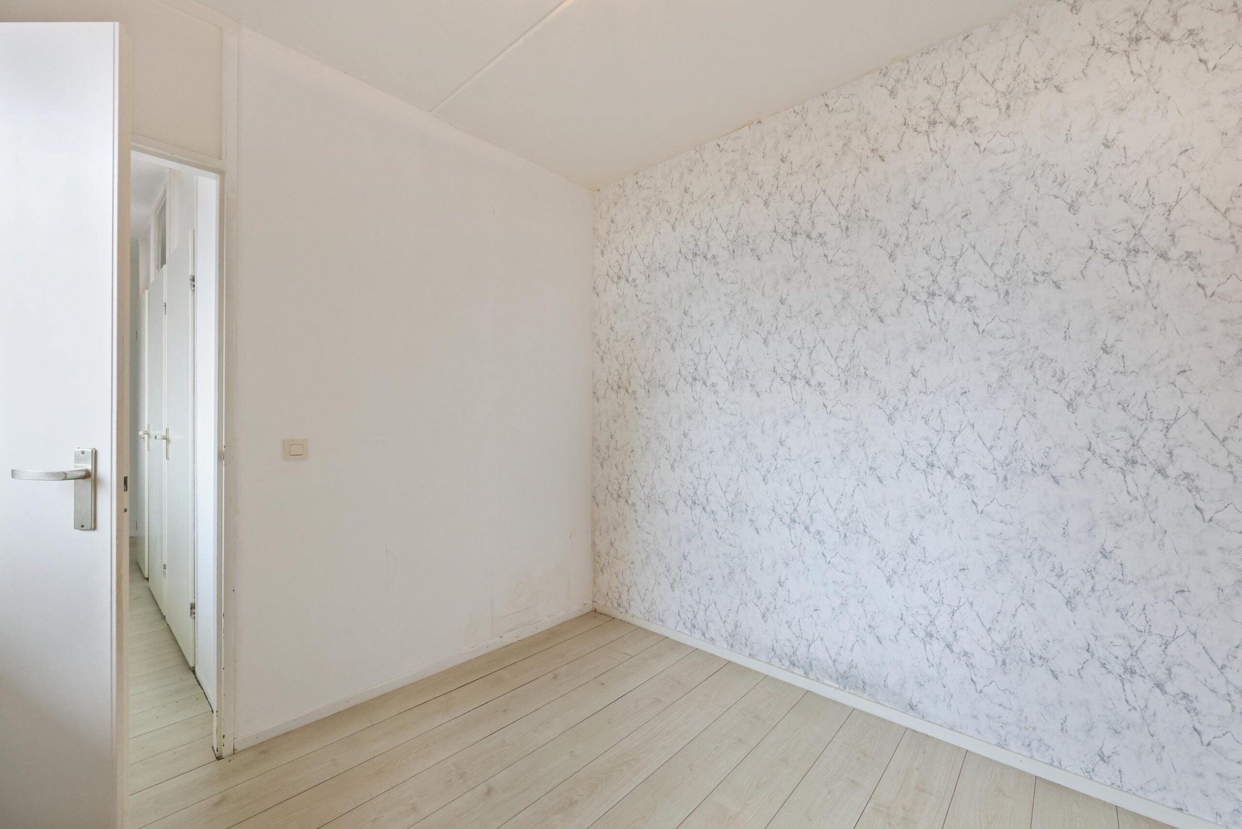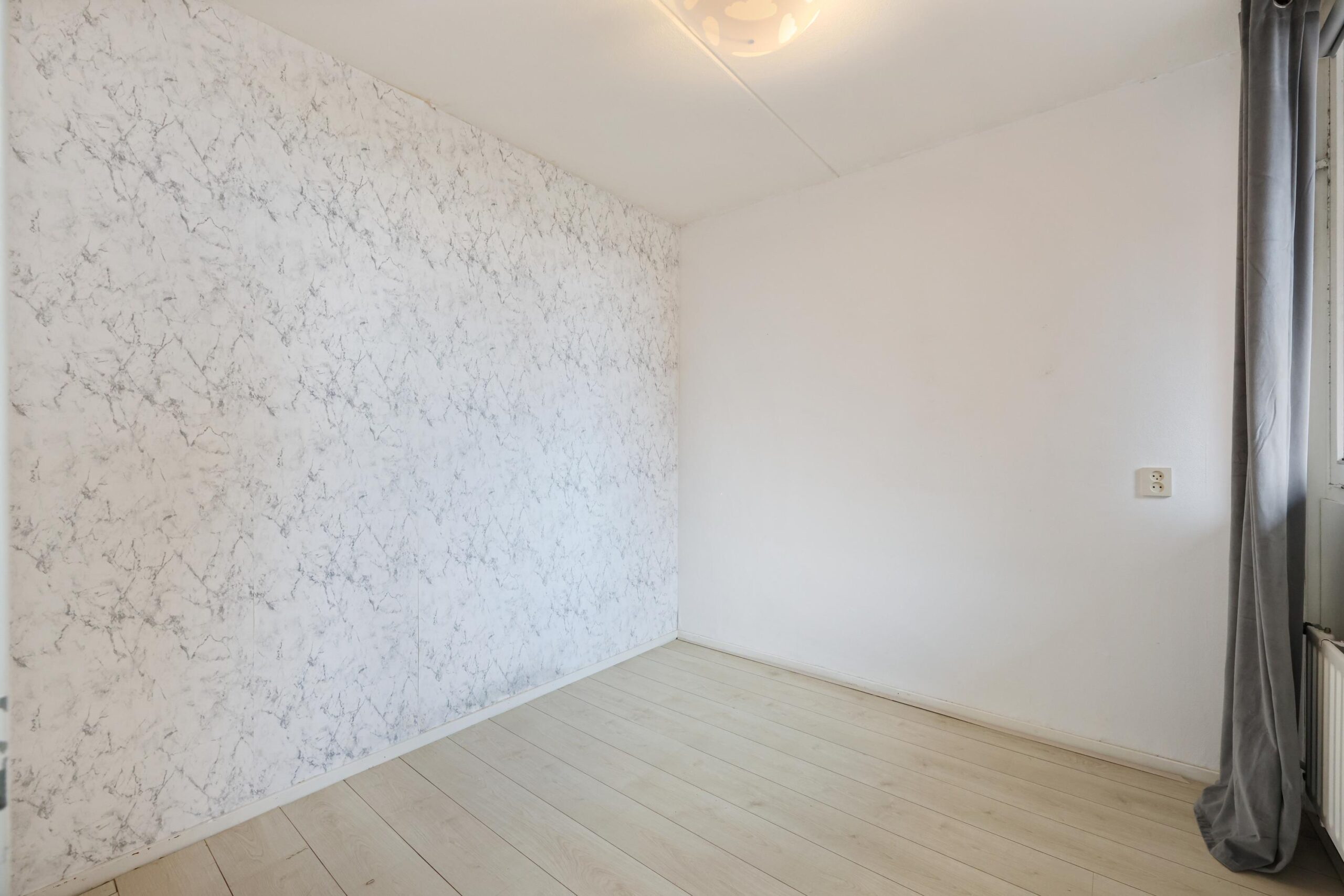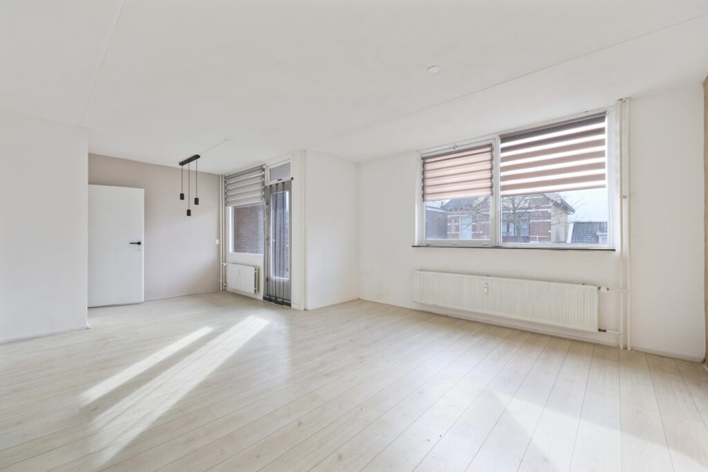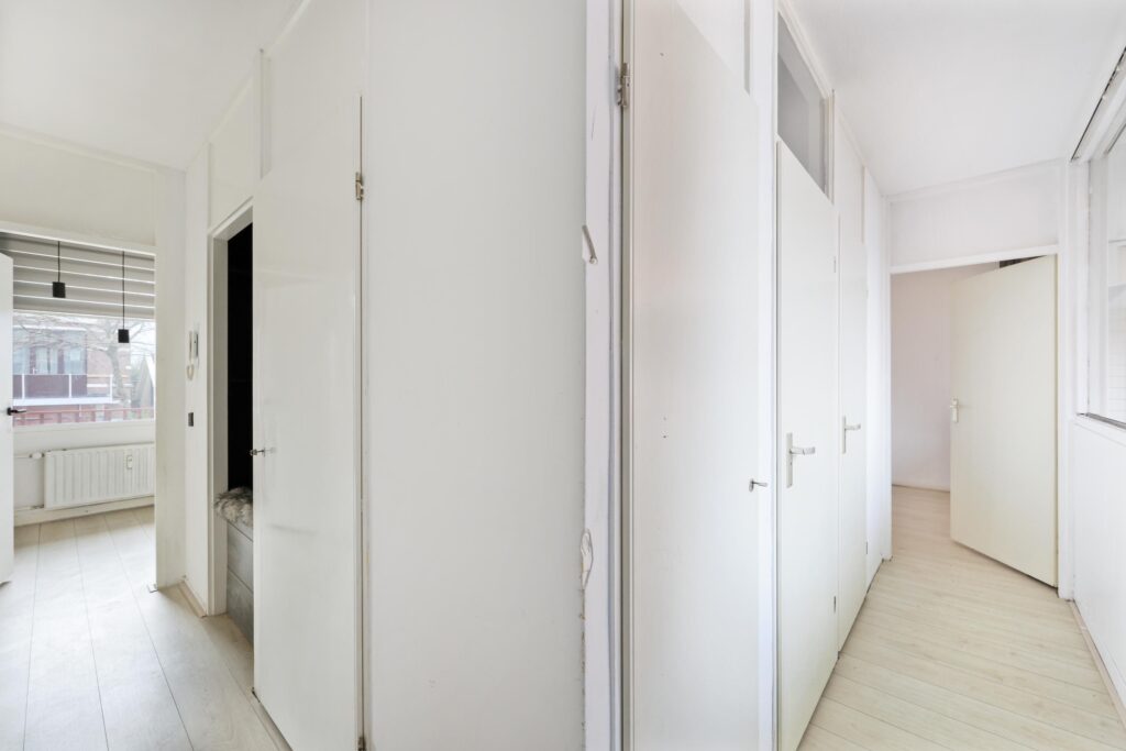 De keuken is praktisch en modern ingedeeld en biedt voldoende kastruimte en werkblad. De ruimte is functioneel opgezet en geeft de mogelijkheid om deze geheel naar eigen wens verder in te richten. Het appartement beschikt over twee slaapkamers, ideaal als hoofdslaapkamer en bijvoorbeeld een werk-, logeer- of hobbykamer.