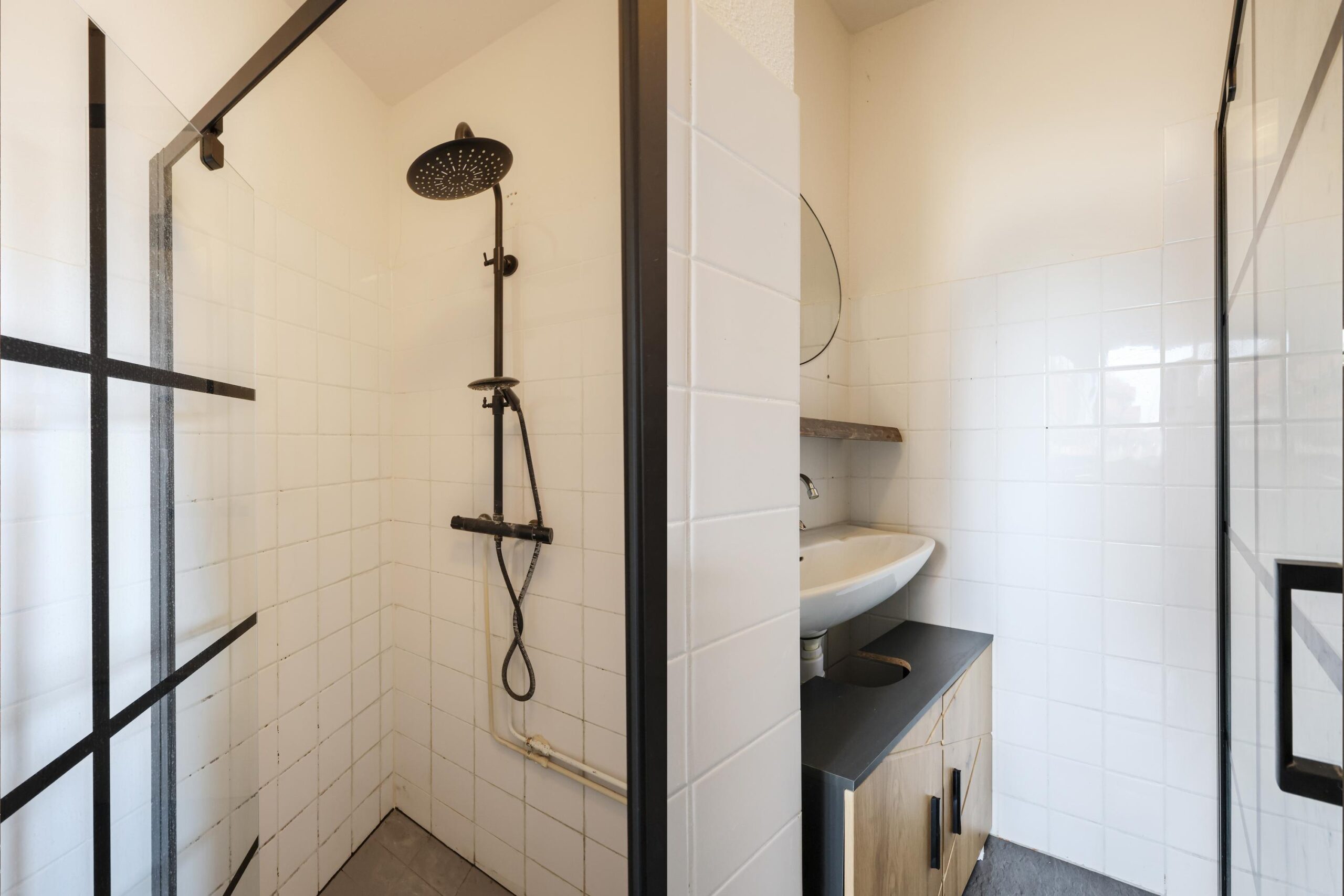 De badkamer is praktisch ingericht met een douche en wastafelmeubel. Tevens bevindt zich hier de elektrische boiler en is er een aansluiting en afvoer voor de wasmachine aanwezig. Ook de mechanische ventilatie is in de badkamer gesitueerd, wat bijdraagt aan een prettig en goed geventileerd binnenklimaat. Daarnaast is er een separaat toilet met fonteintje. Extra comfortabel is de eigen berging in de kelder, ideaal voor fietsen en extra opslag. Bovendien beschik je over een privéparkeerplaats in de afgesloten parkeerkelder. Via een elektrische toegangsdeur rijd je eenvoudig naar binnen en parkeer je veilig je auto op je eigen plek.