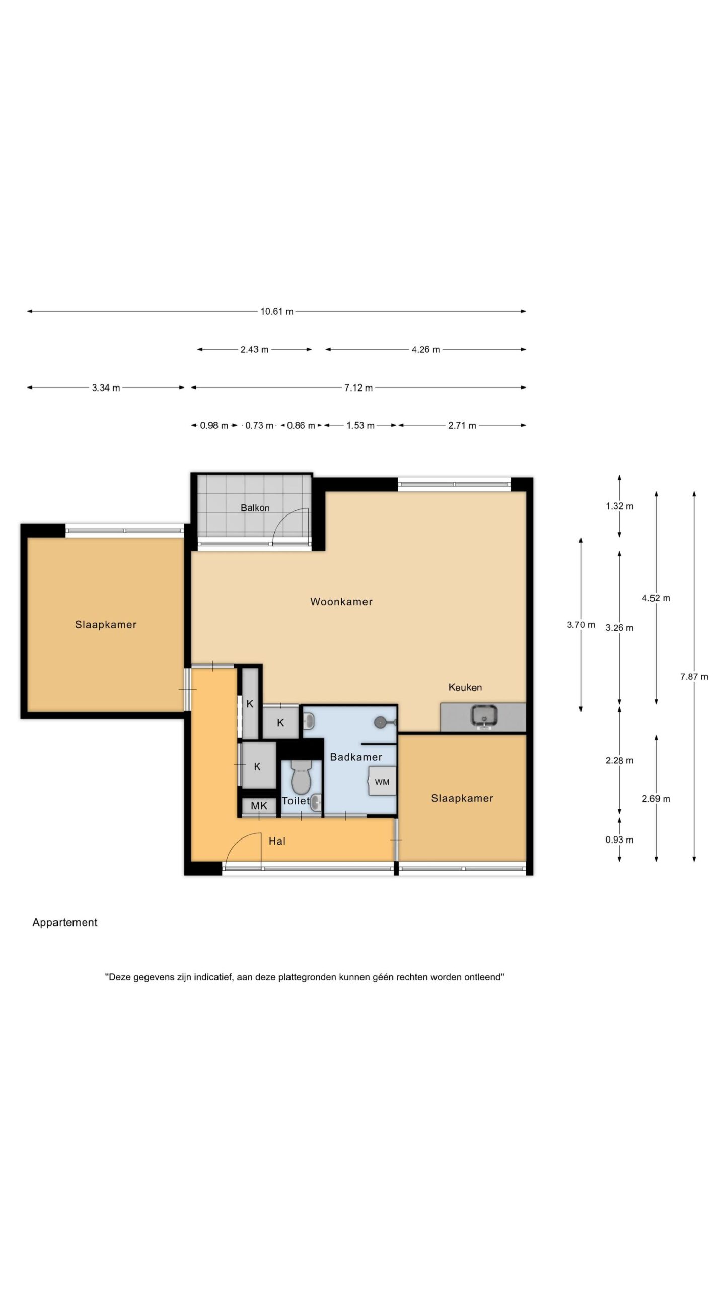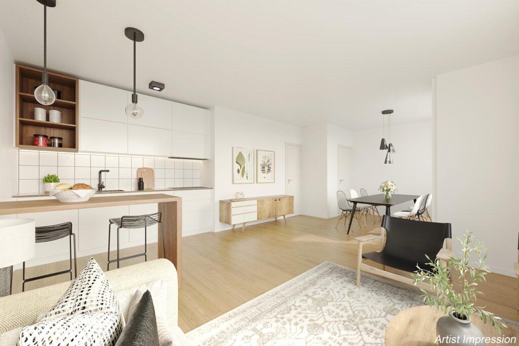 – 3-kamer appartement met 2 slaapkamers;