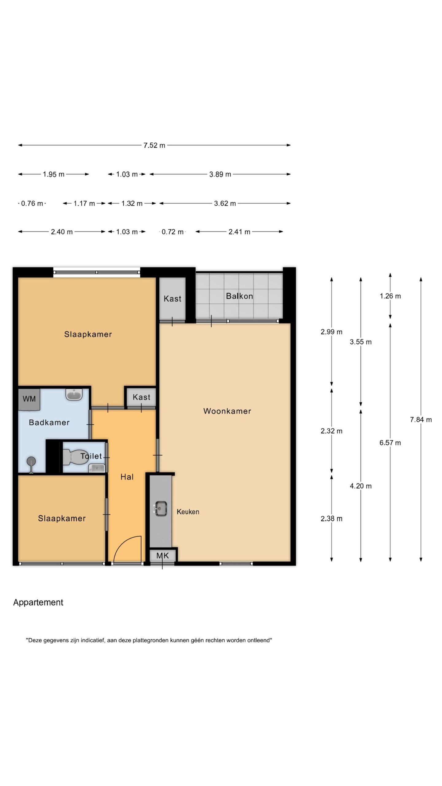 – 3-kamer appartement met 2 slaapkamers;