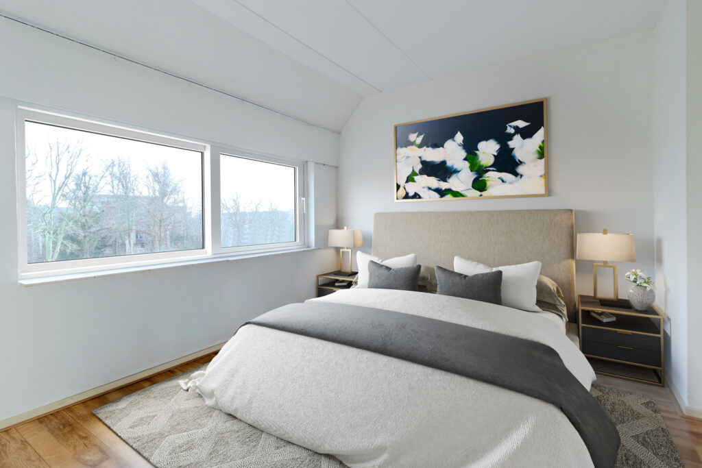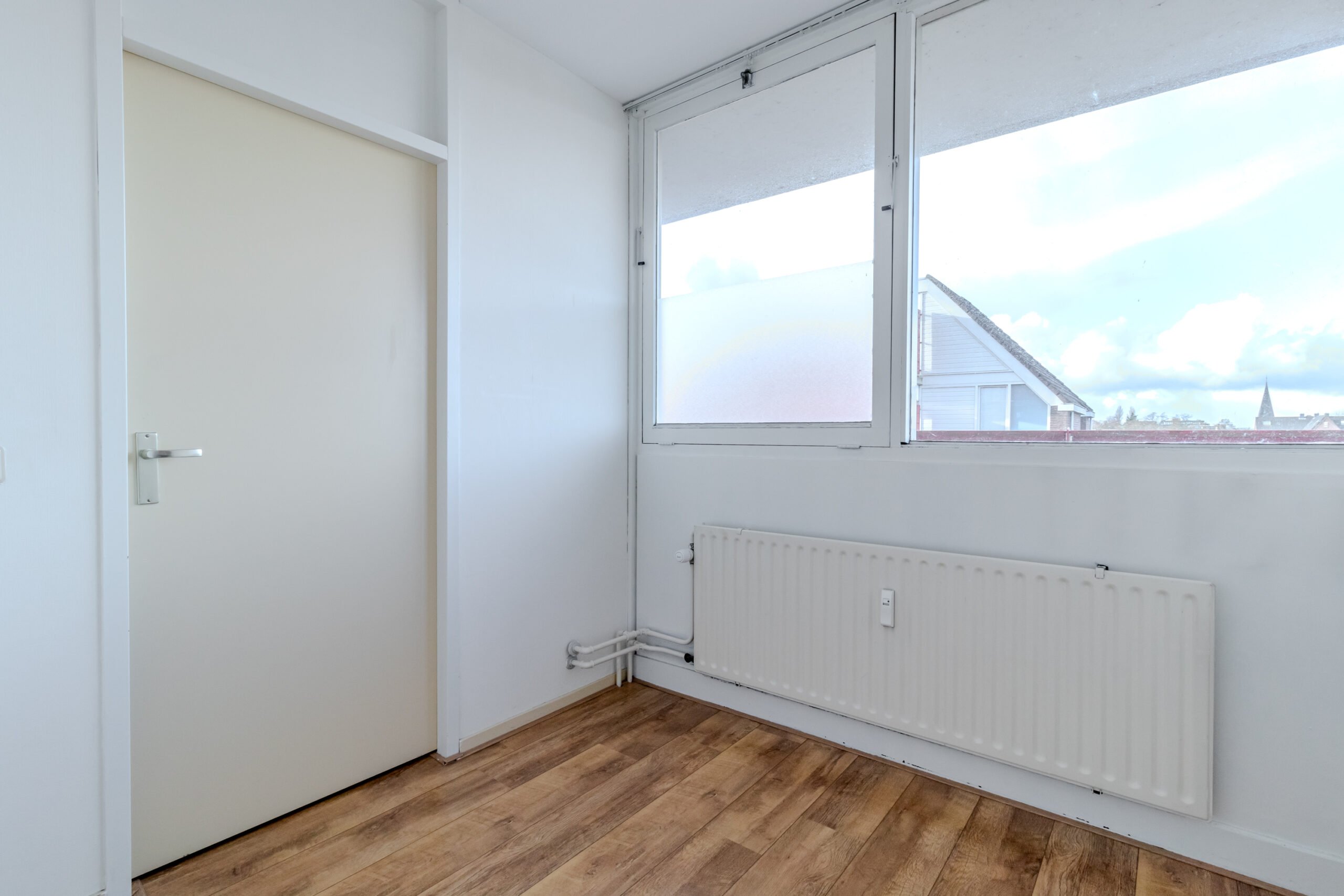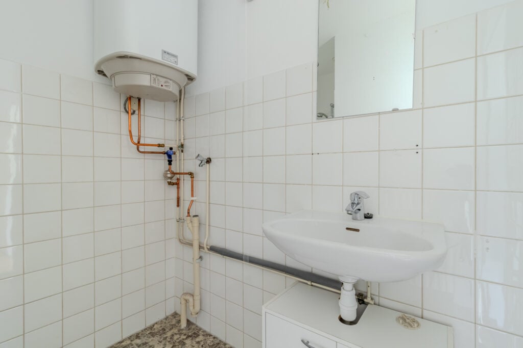 Je hebt de beschikking over twee slaapkamers: de hoofdslaapkamer aan de achterzijde en een tweede slaapkamer aan de voorzijde. Beide kamers zijn ruim, en één kan prima als thuiswerkkamer dienen. De badkamer is keurig onderhouden en beschikt over een inloopdouche en wastafel, en is ruim genoeg om een wasmachine te plaatsen. Daarnaast is er een separaat toilet.