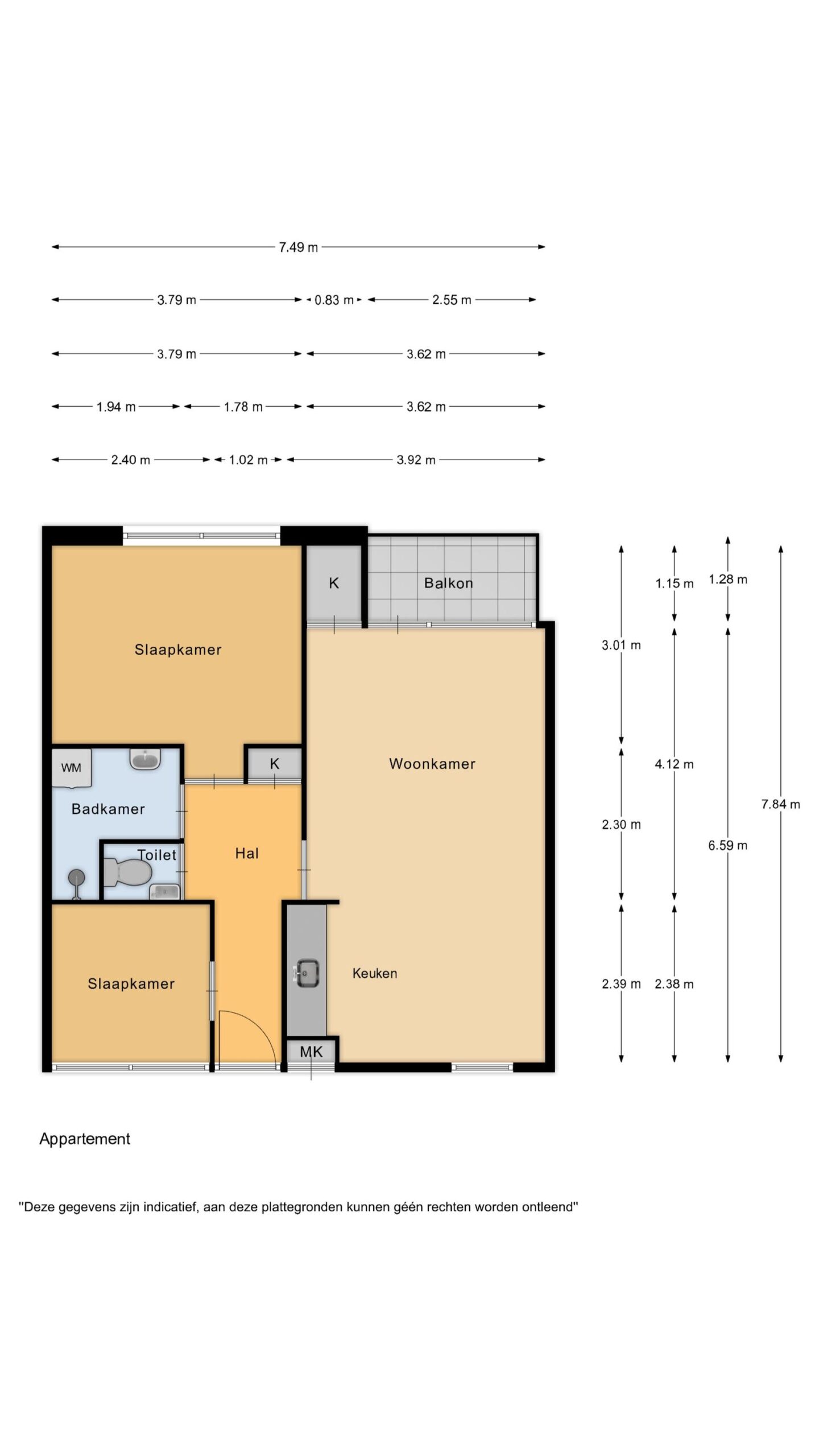 – Appartement met twee slaapkamers;