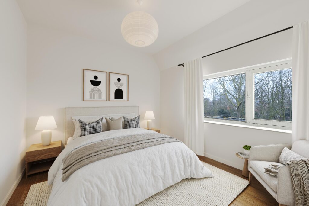 Een licht appartement met twee slaapkamers, vrij uitzicht en een rustige ligging aan het park.