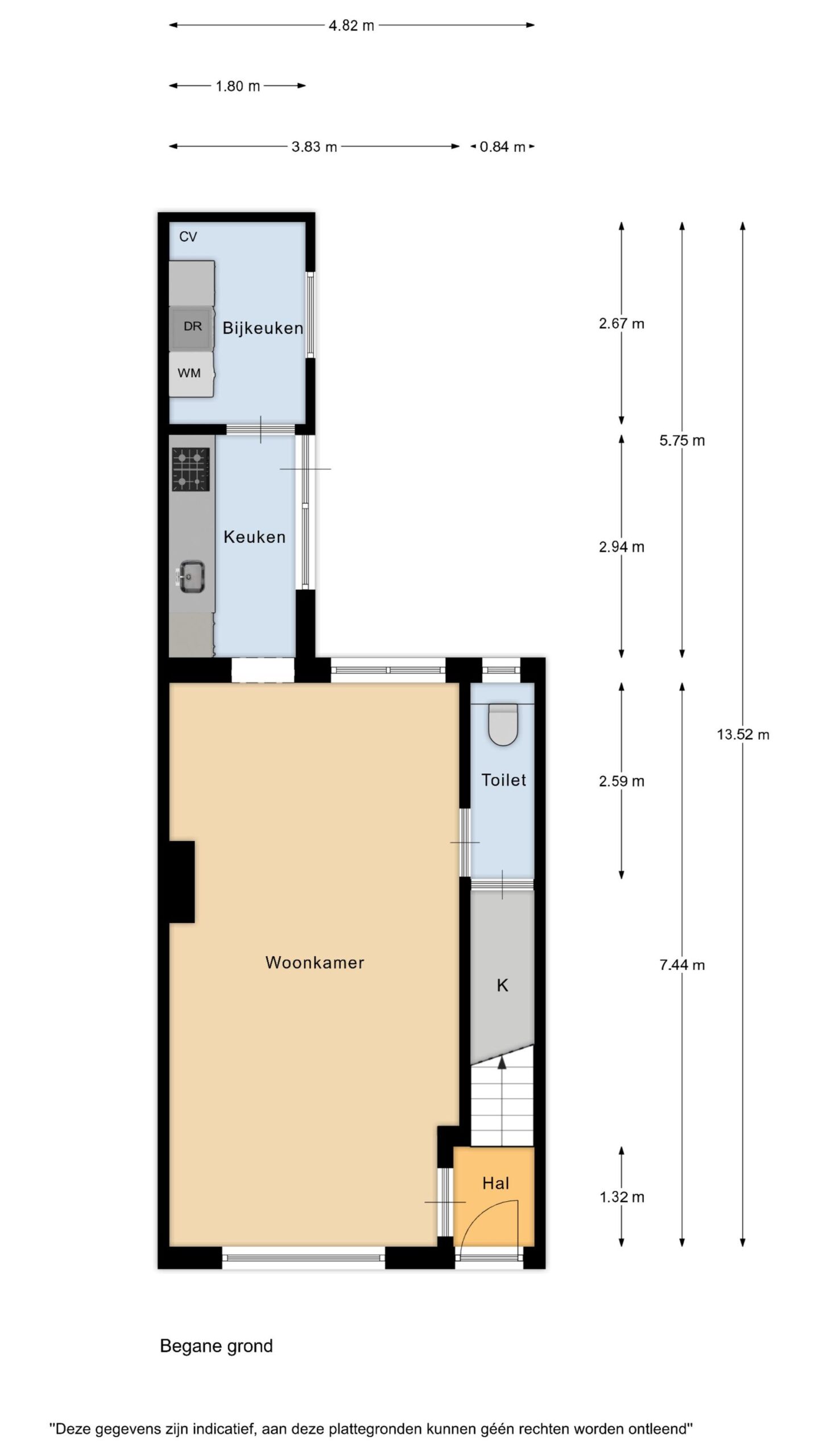 De begane grond is ruim en licht en voorzien van een doorzonwoonkamer en een fraaie half open keuken voorzien van diverse inbouwapparatuur. Vanuit de keuken bereik je de ruime berging met plek voor wasmachine en droger aansluiting.