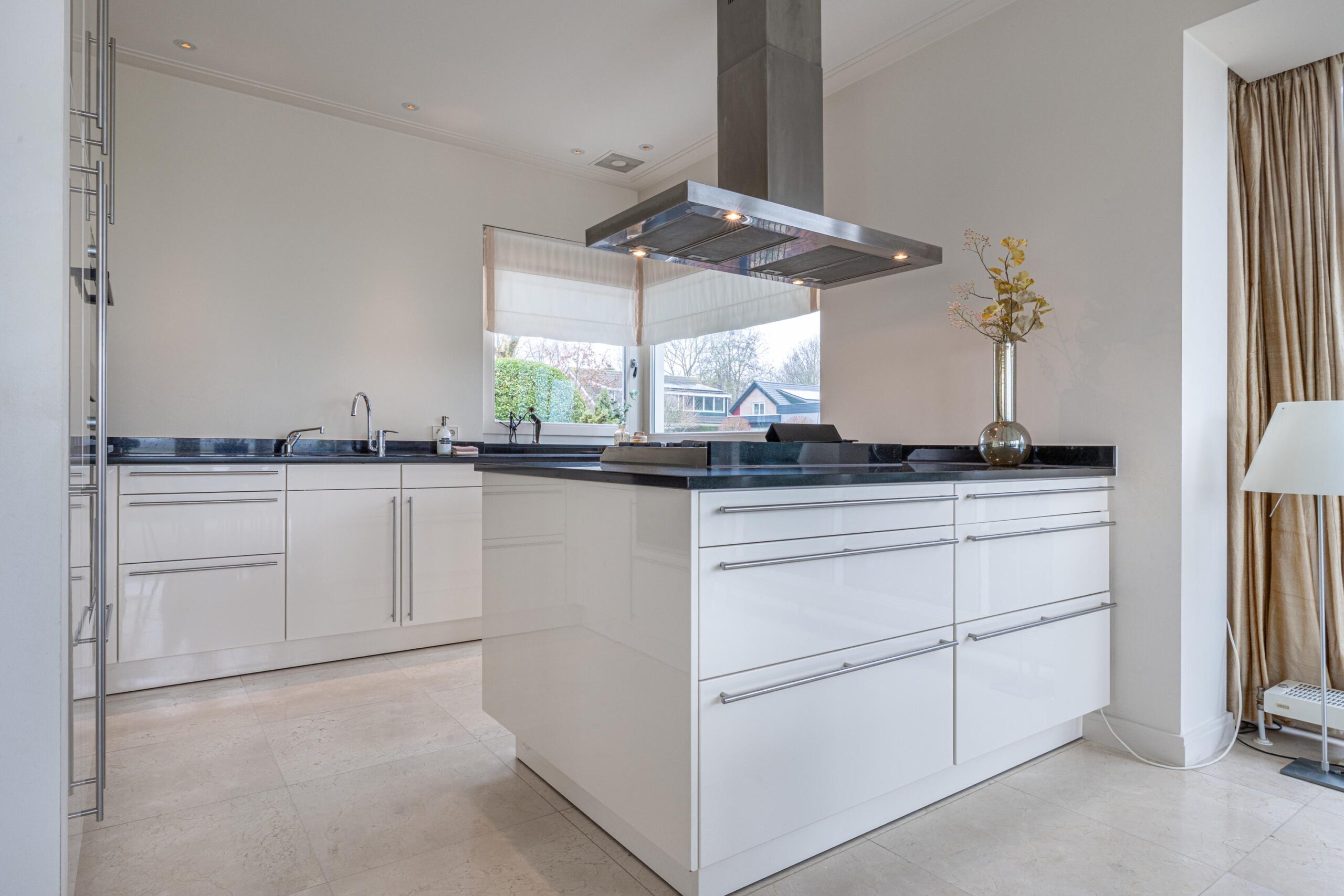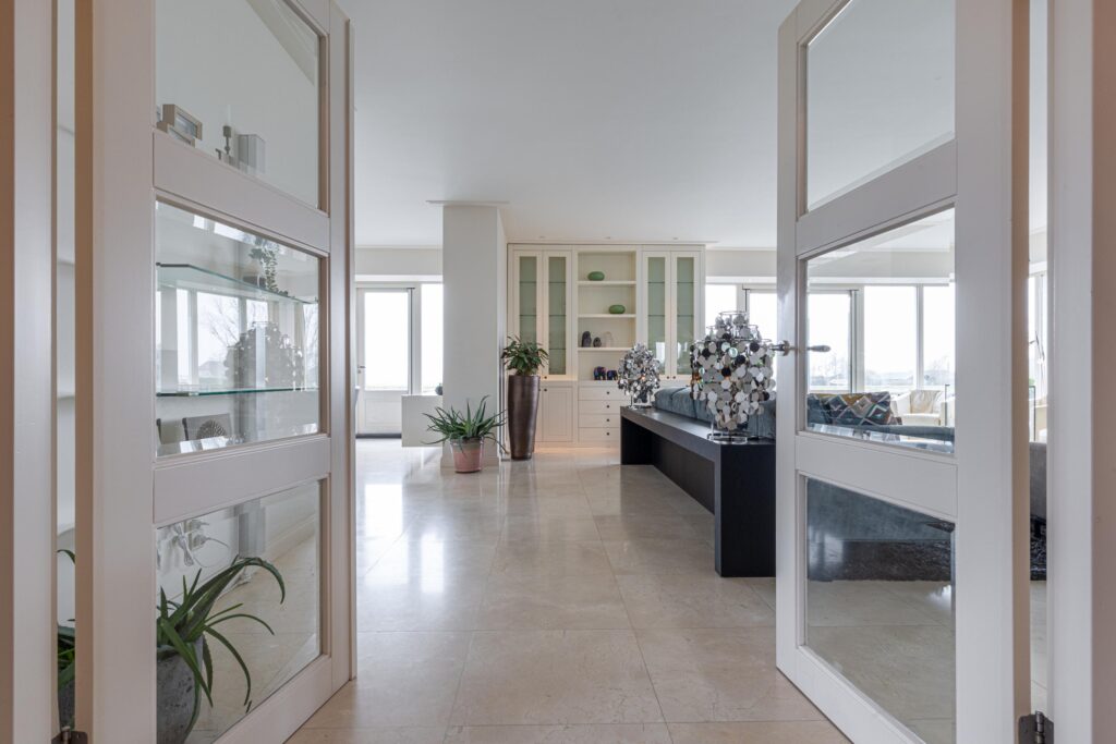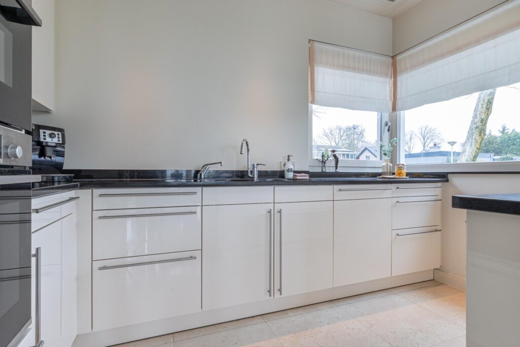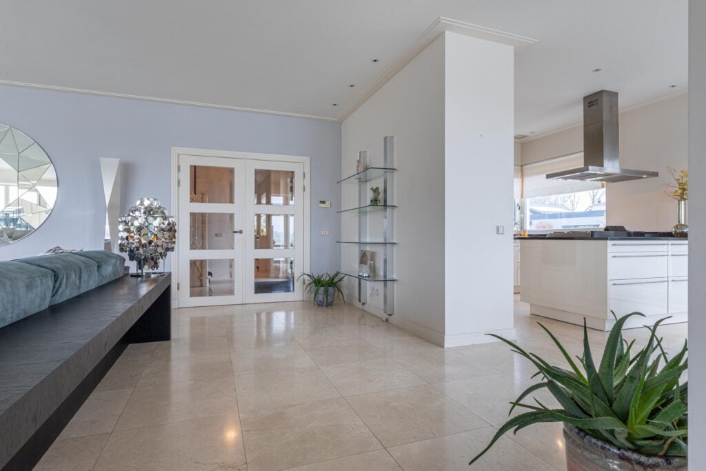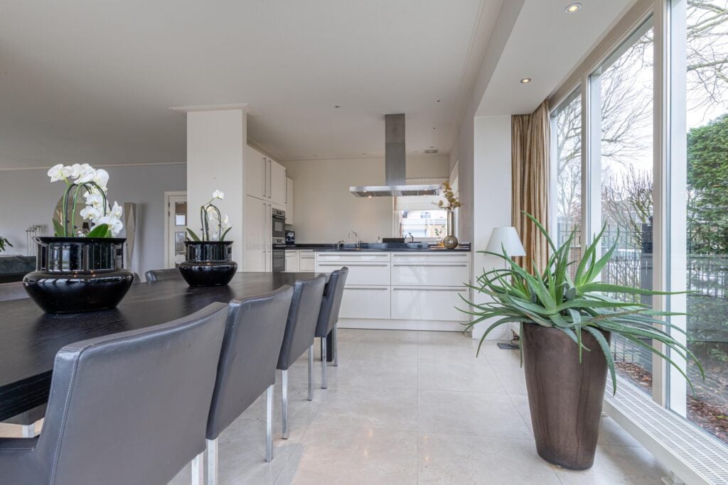 Bij binnenkomst via de dubbele voordeur ervaar je direct de grandeur van de woning dankzij de indrukwekkende vide. Vanuit de entree ontvouwt zich de royale woonkamer, een lichte, open leefruimte met grote raampartijen die het buitenleven volledig naar binnen halen. De indelingsmogelijkheden zijn veelzijdig en bieden alle ruimte voor een sfeervolle living. De open haard met karakteristieke schouw vormt hierbij het warme middelpunt. De woonkeuken sluit naadloos aan op de woonkamer en biedt een panoramisch uitzicht over De Delft en het omliggende Assendelftse landschap, hier krijgt “diner with a view” een geheel nieuwe betekenis. De keuken is compleet uitgevoerd en voorzien van alle benodigde inbouwapparatuur voor comfortabel en praktisch gebruik.