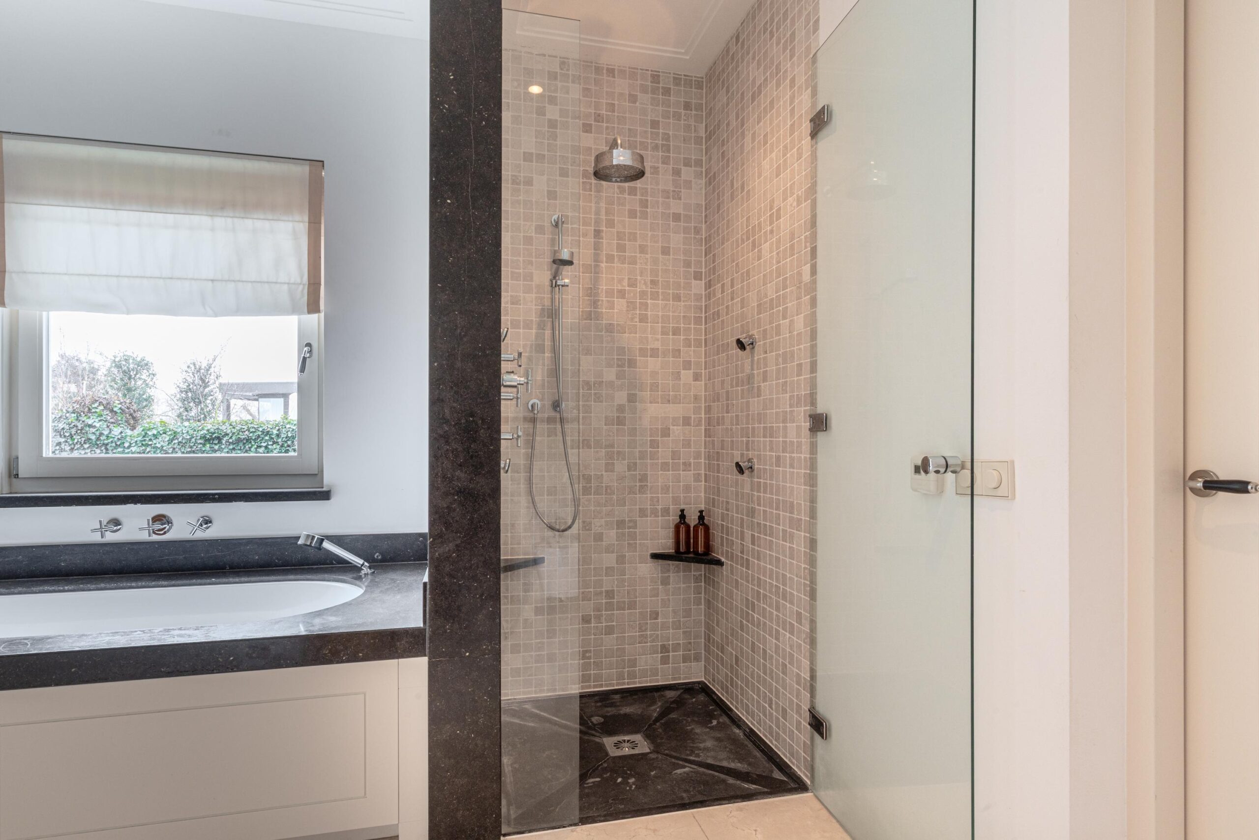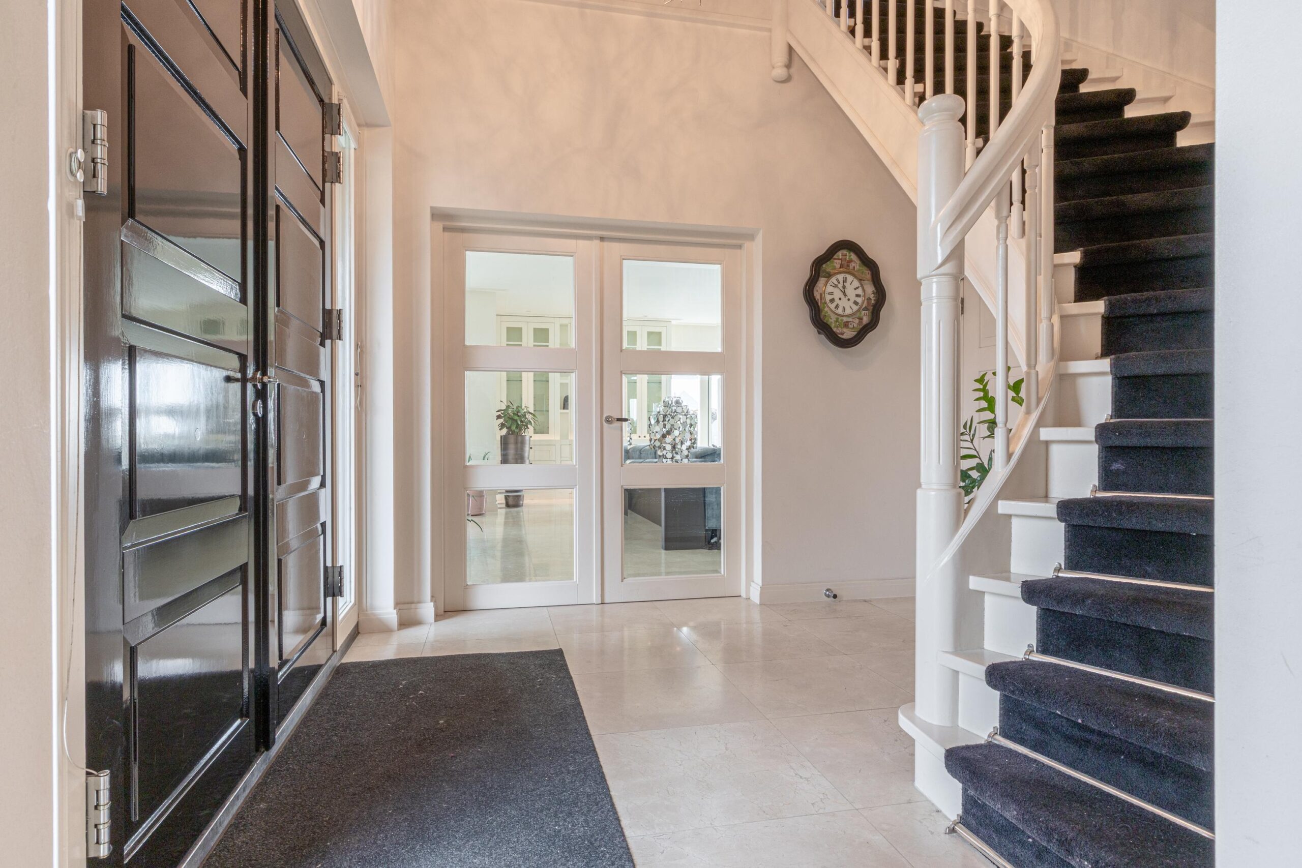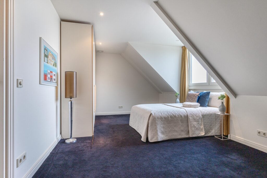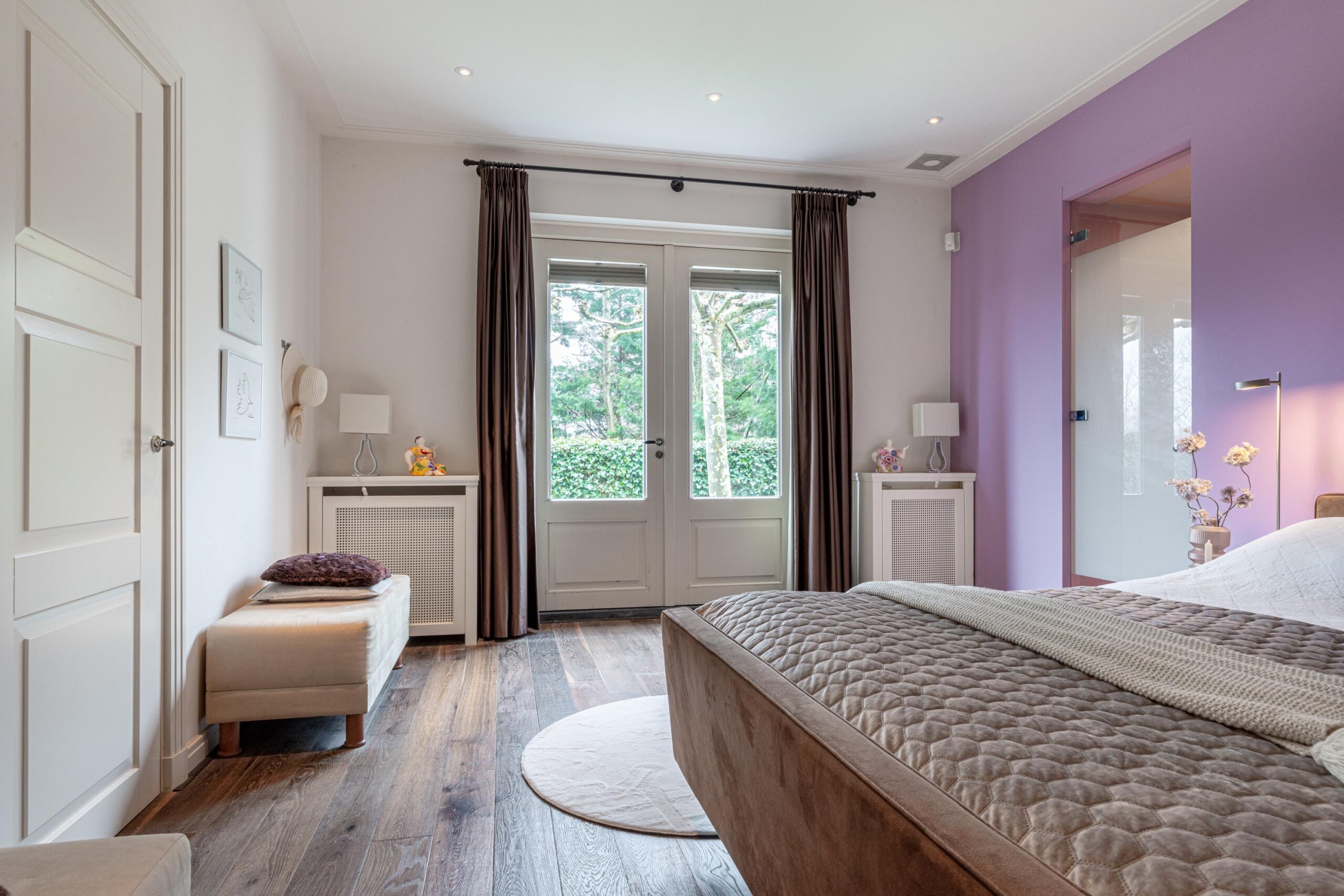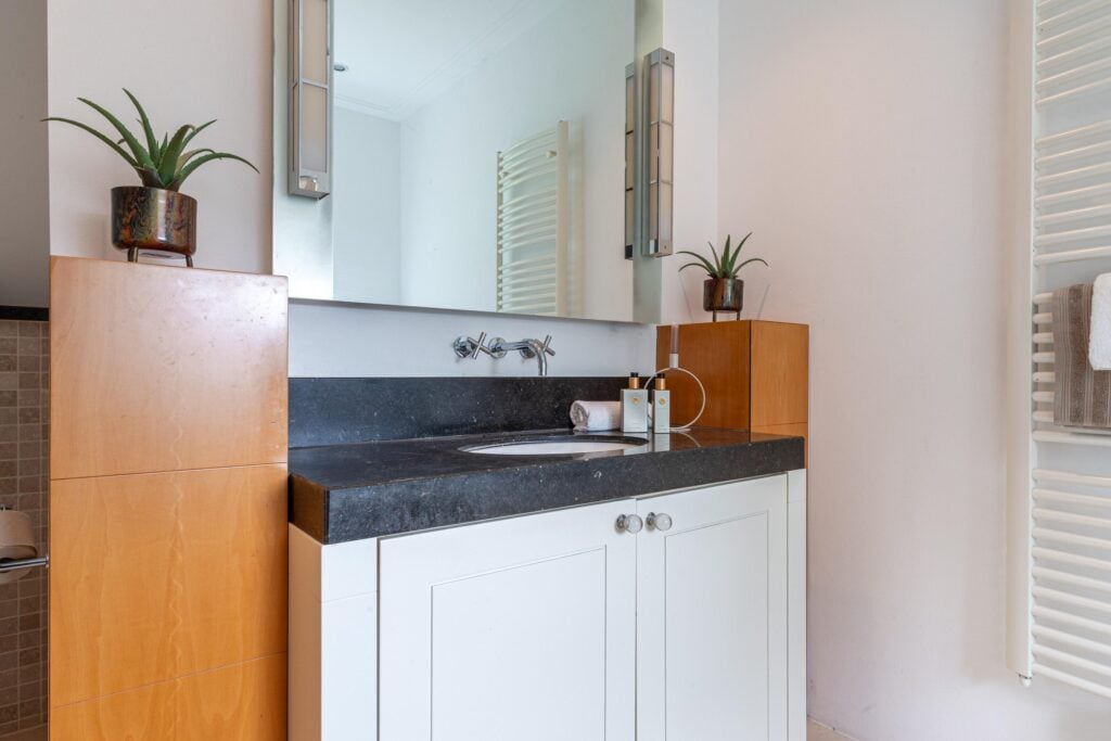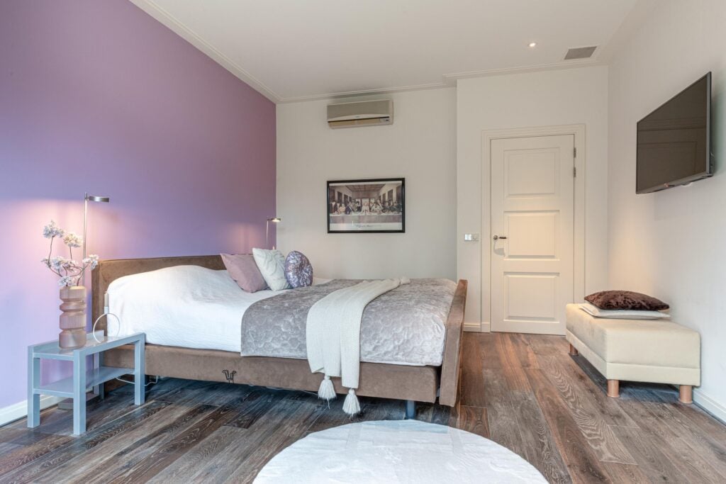 Gelijkvloers wonen behoort hier tot de mogelijkheden. Op de begane grond bevindt zich een royale slaapkamer met inloopkast en airconditioning en een en-suite badkamer, uitgerust met ligbad, douche, toilet en bidet. De inpandige garage met elektra- en watervoorziening zorgt voor extra comfort. Met dit formaat garage kun je rustig naar binnen rijden en je vier portieren tegelijk openen. Voor tuin- of hobbybenodigdheden is er tevens een vrijstaande houten berging achter de woning. Via de statige trap bereik je de verdieping, waar zich drie zeer ruime slaapkamers bevinden. Hier zijn tevens een tweede badkamer, een aparte wasruimte en diverse bergruimten gesitueerd.