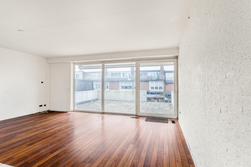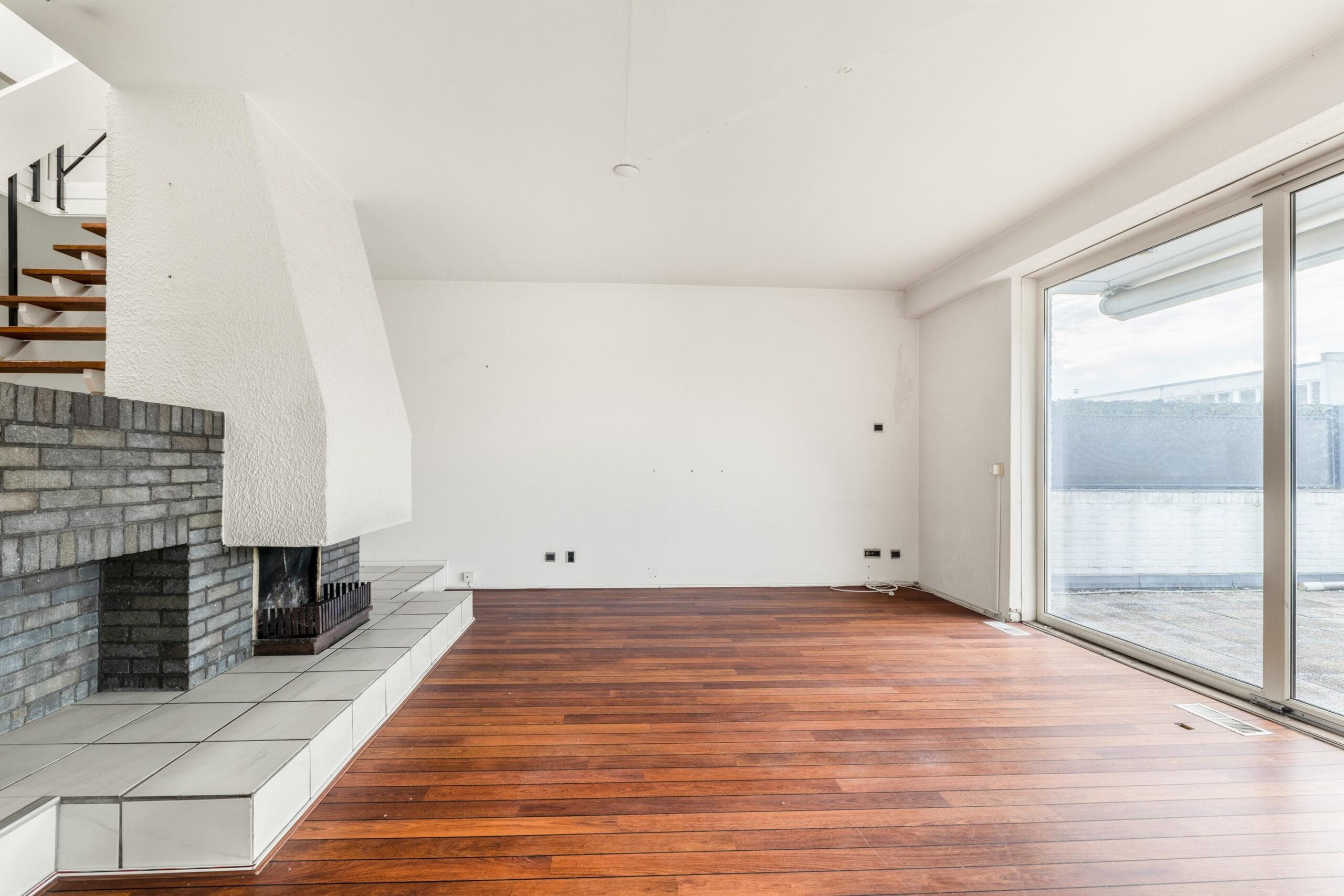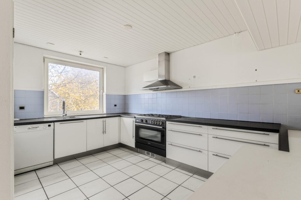 De woning is verrassend ruim van opzet, met veel lichtinval, niveauverschillen en grote raampartijen. De sfeervolle woonkamer beschikt over een open haard, houten vloer en brede schuifpui richting het zonnige dakterras van circa 28 m². De halfopen keuken aan de achterzijde is ruim opgezet en profiteert ook van veel natuurlijk licht.